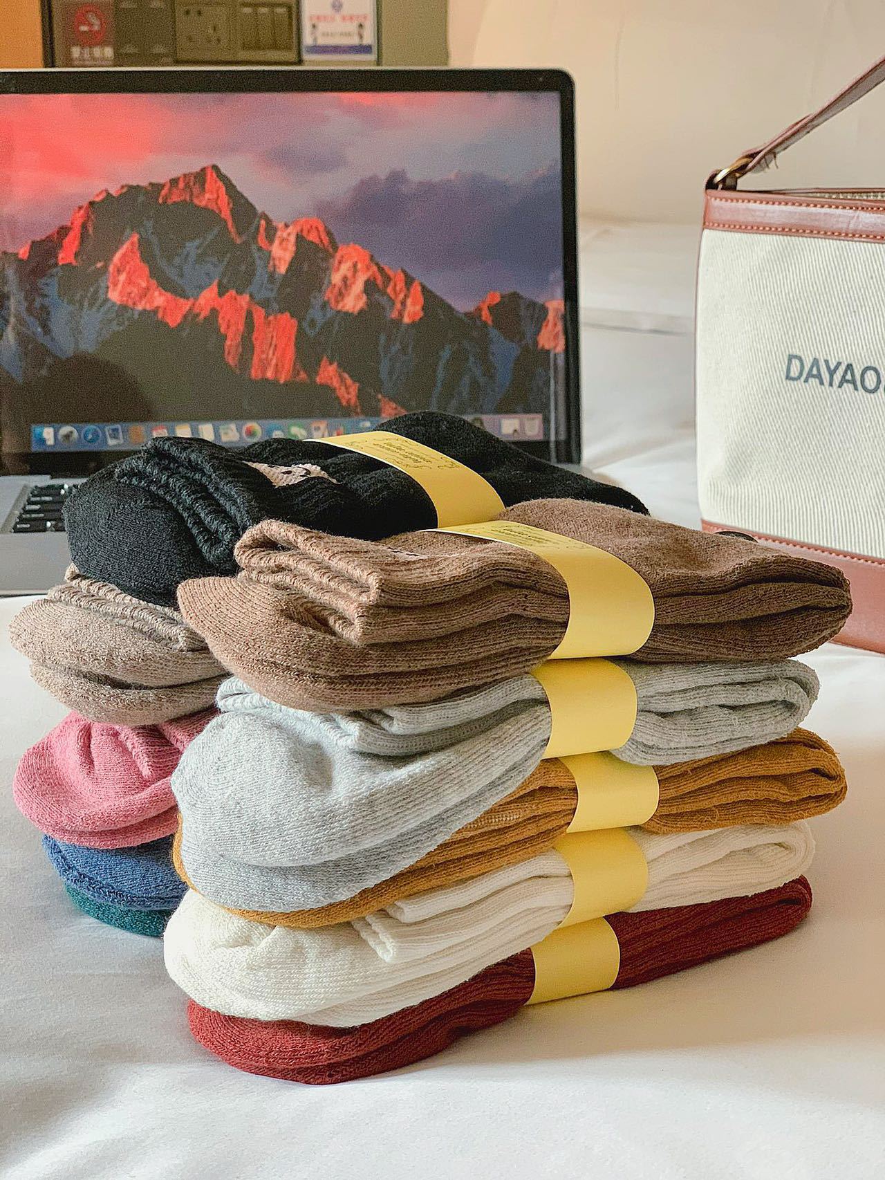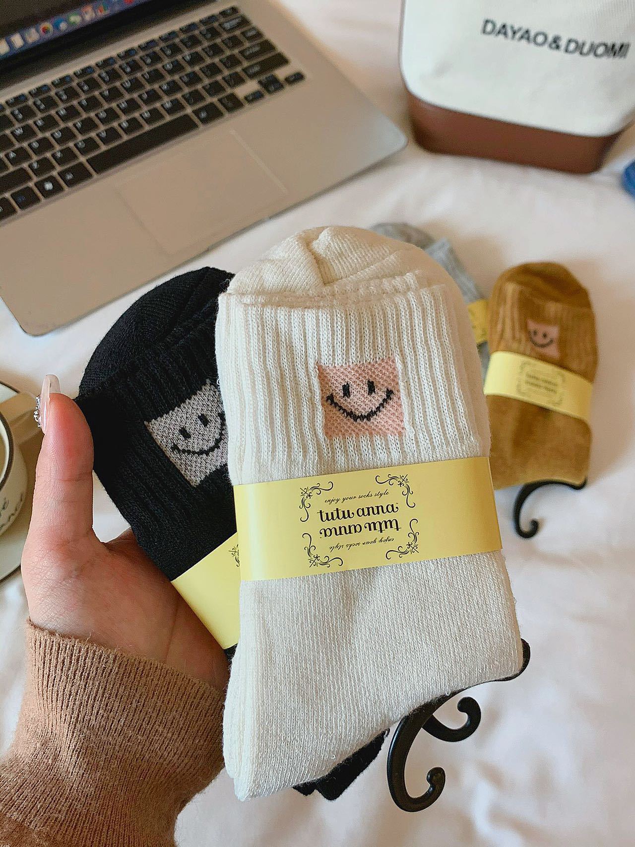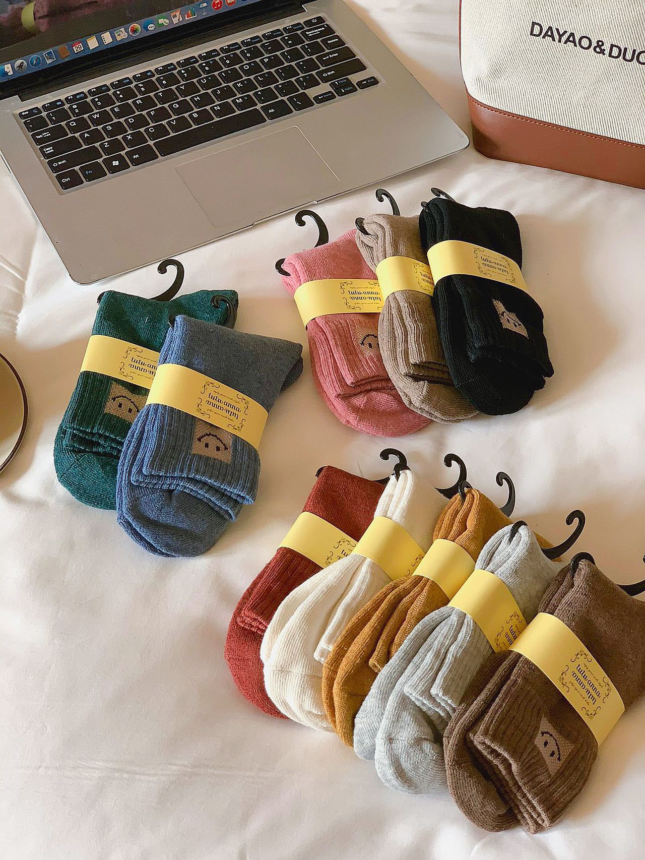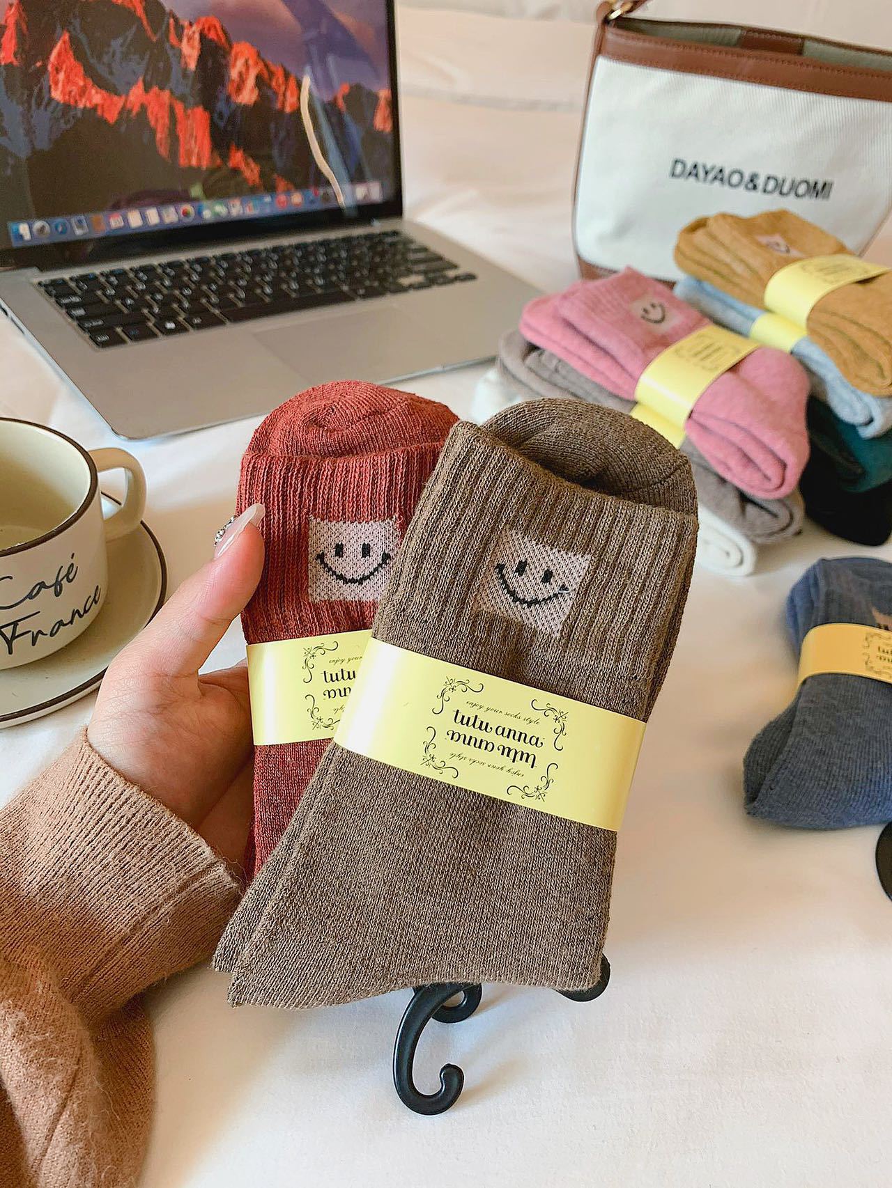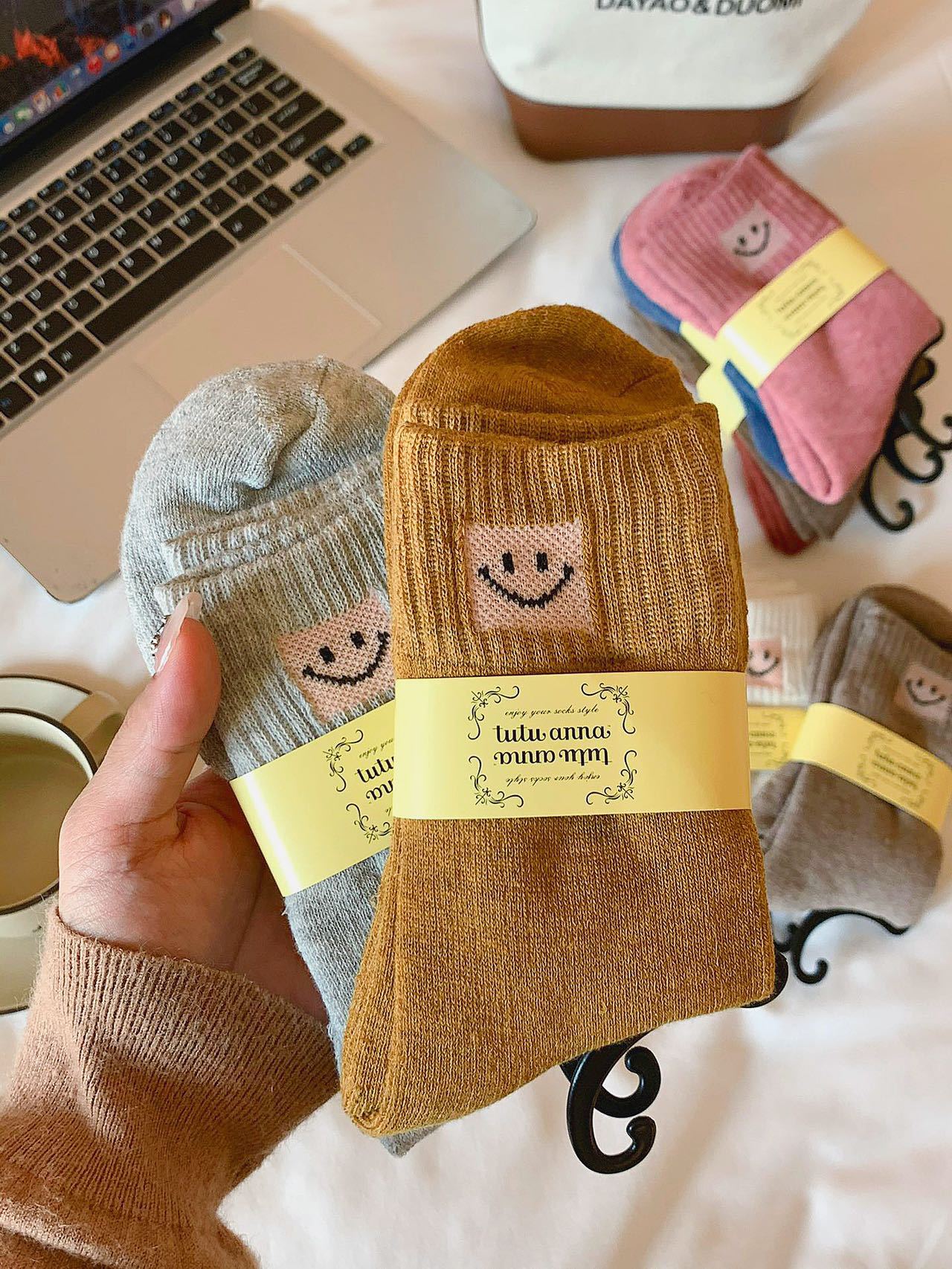 tutu anna笑脸加厚毛圈袜中筒仿羊毛毛巾地板袜保暖女冬季袜子10双装