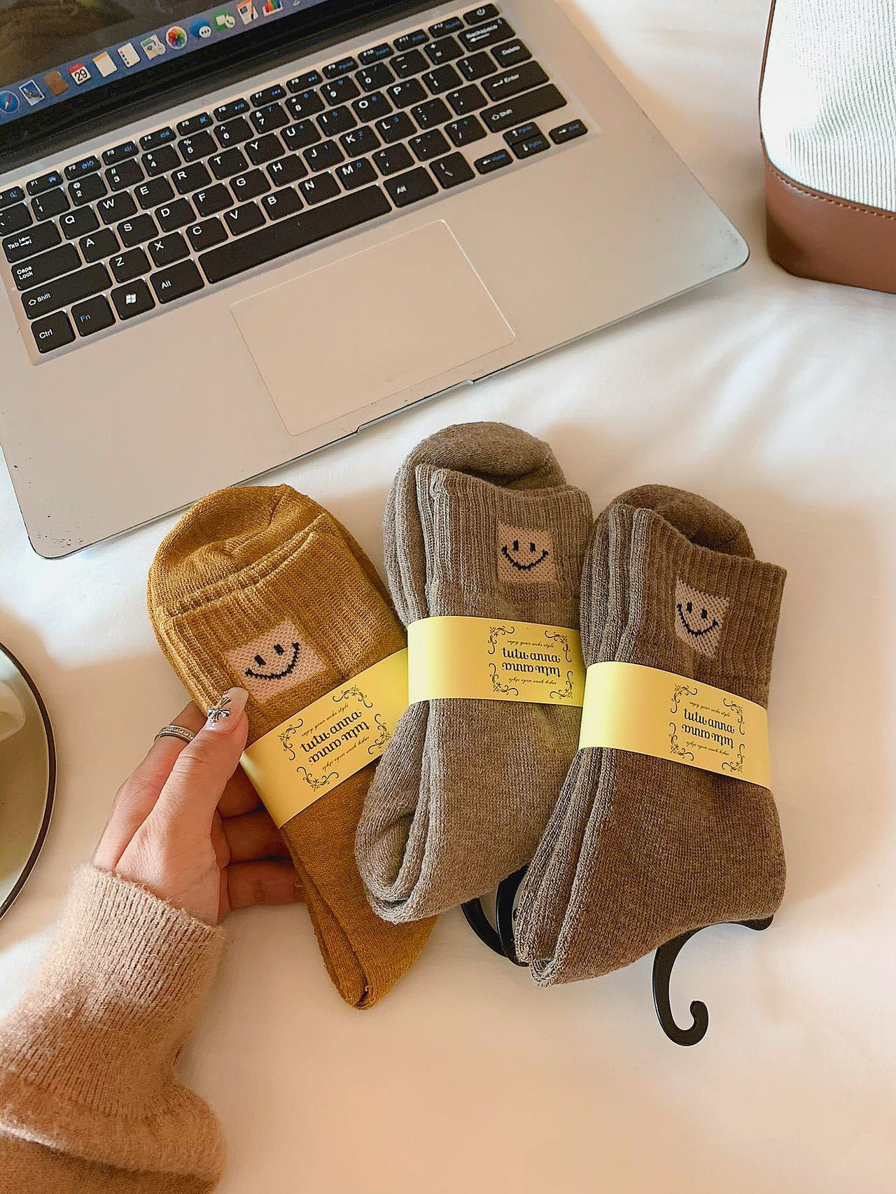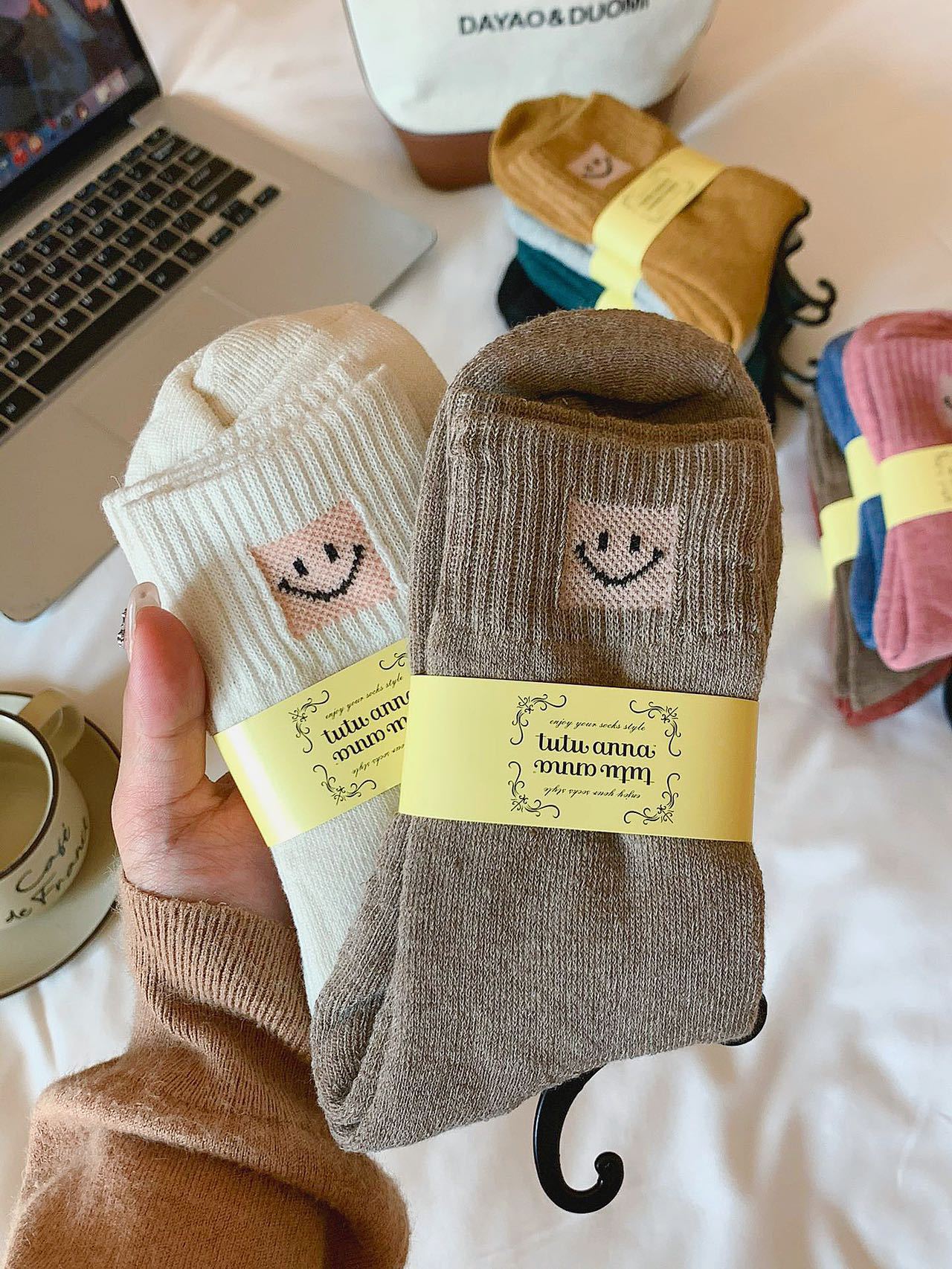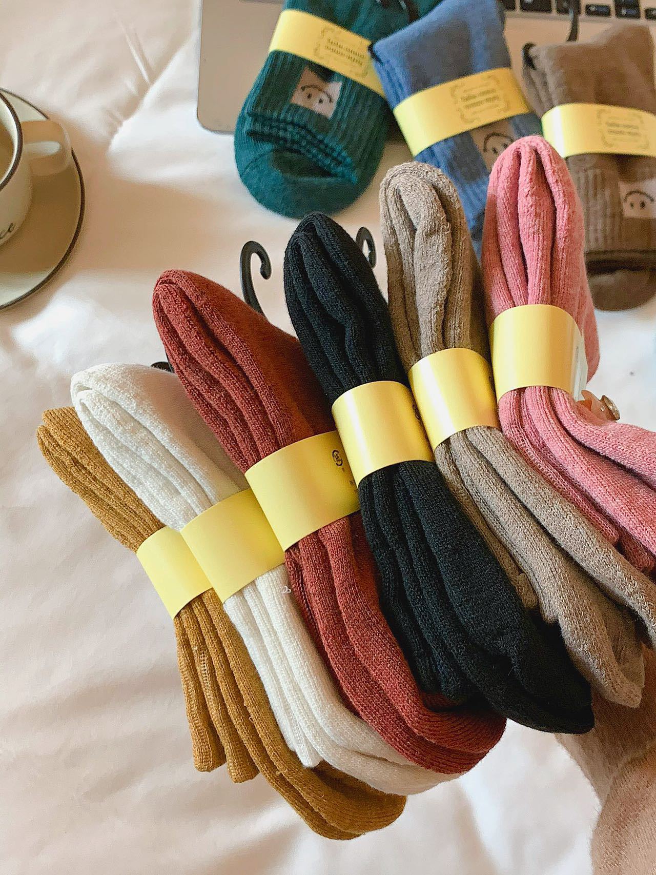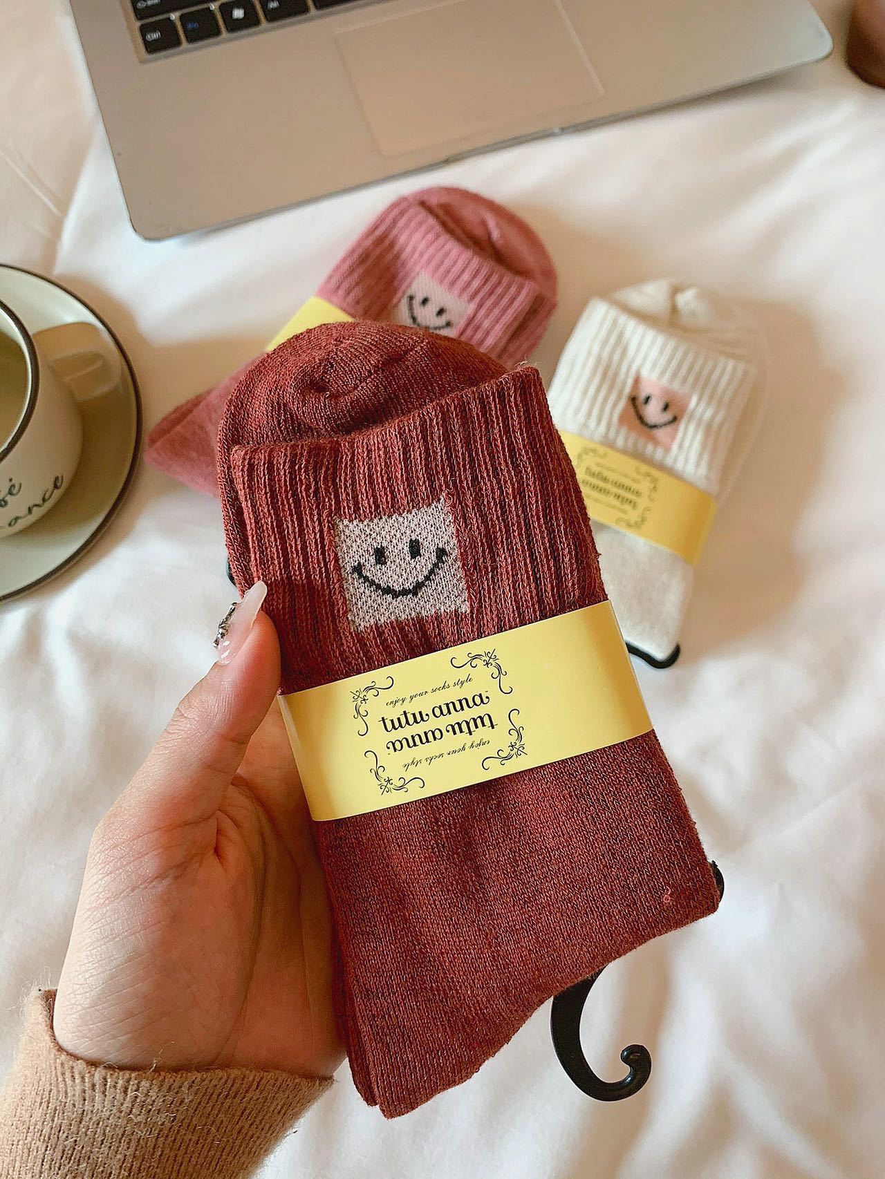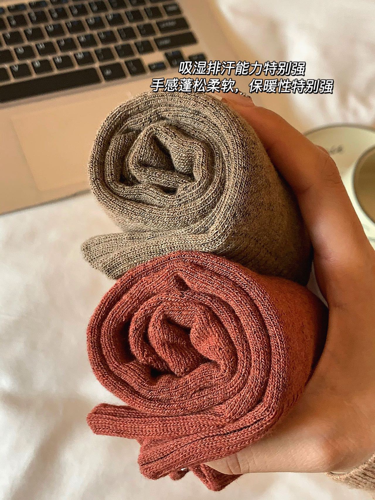 tutu anna笑脸加厚毛圈袜中筒仿羊毛毛巾地板袜保暖女冬季袜子10双装