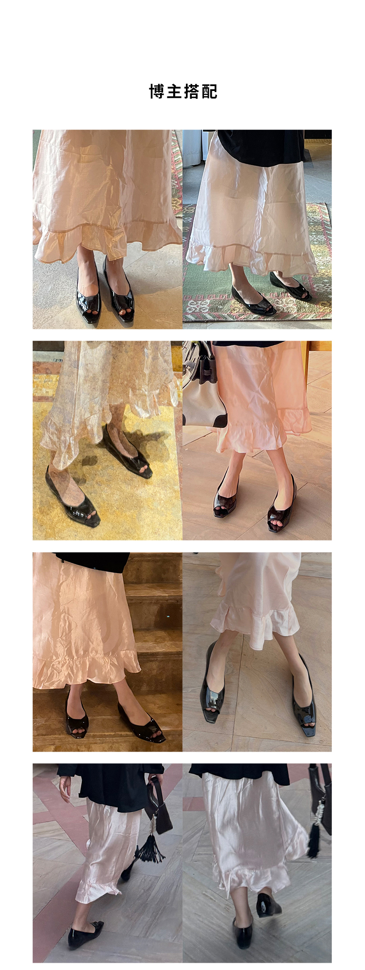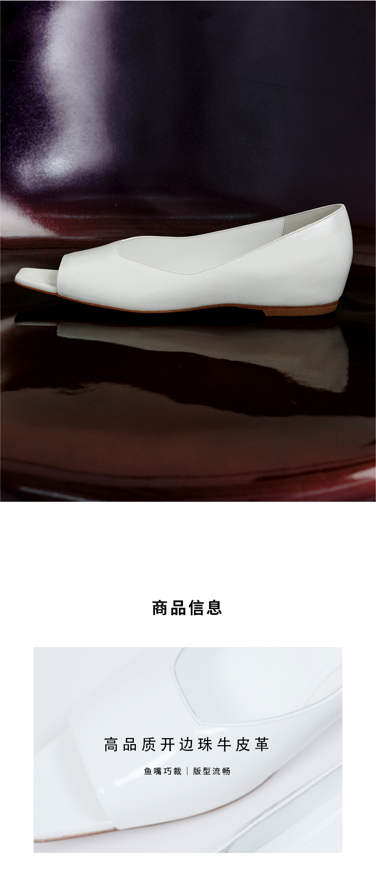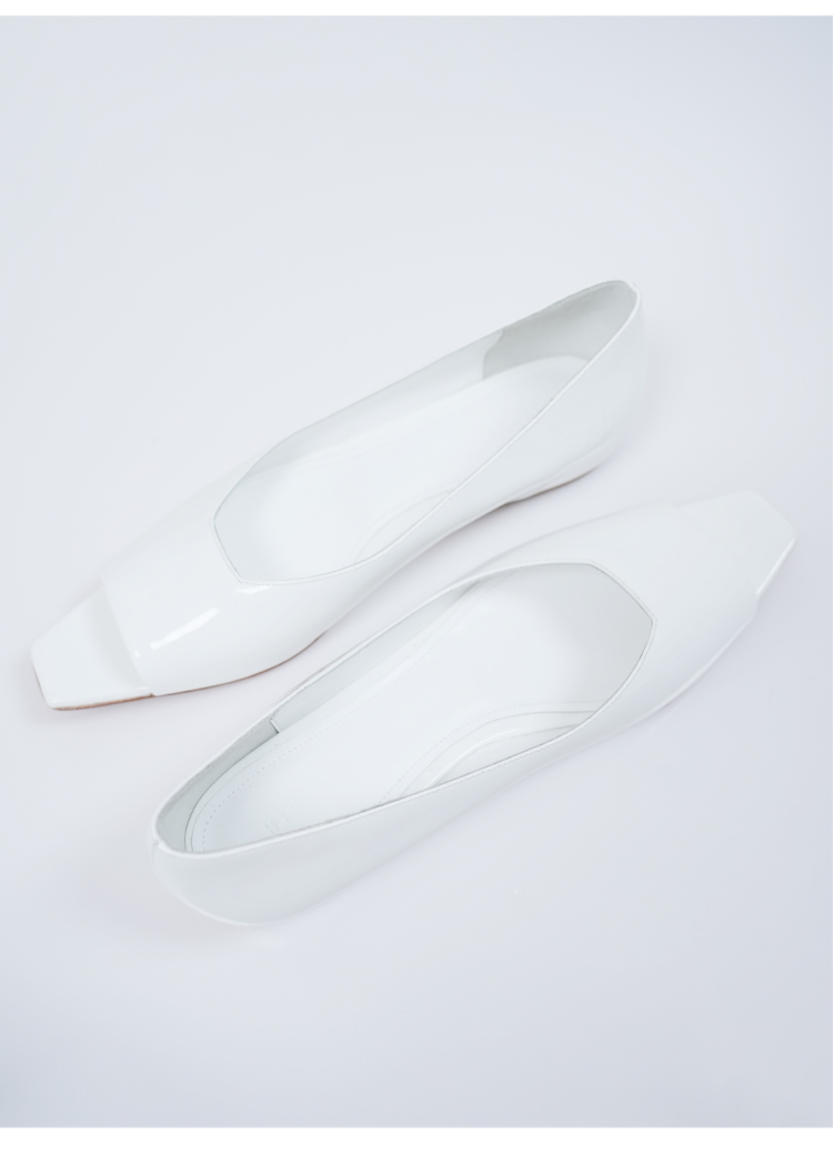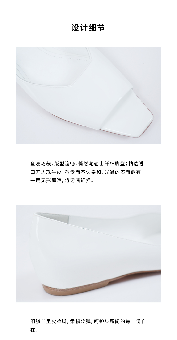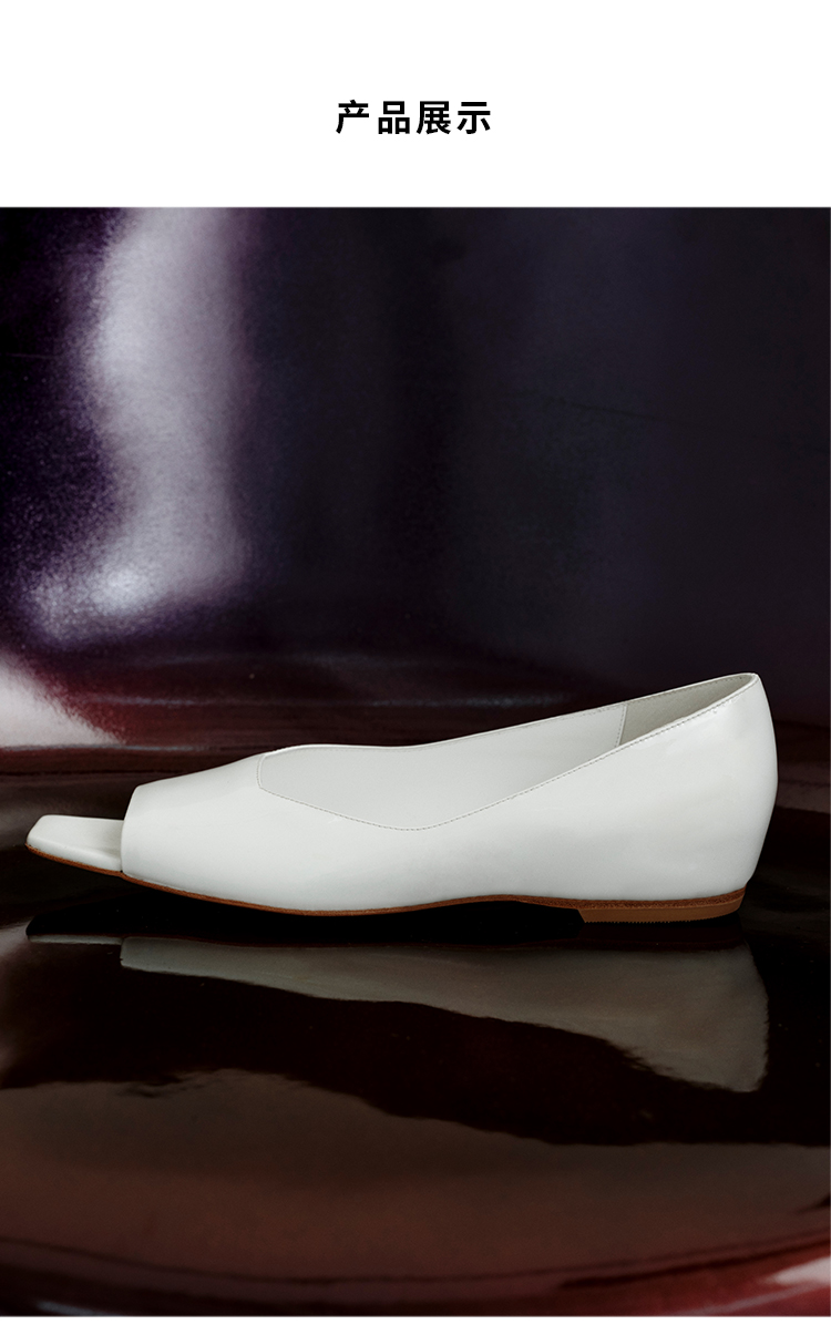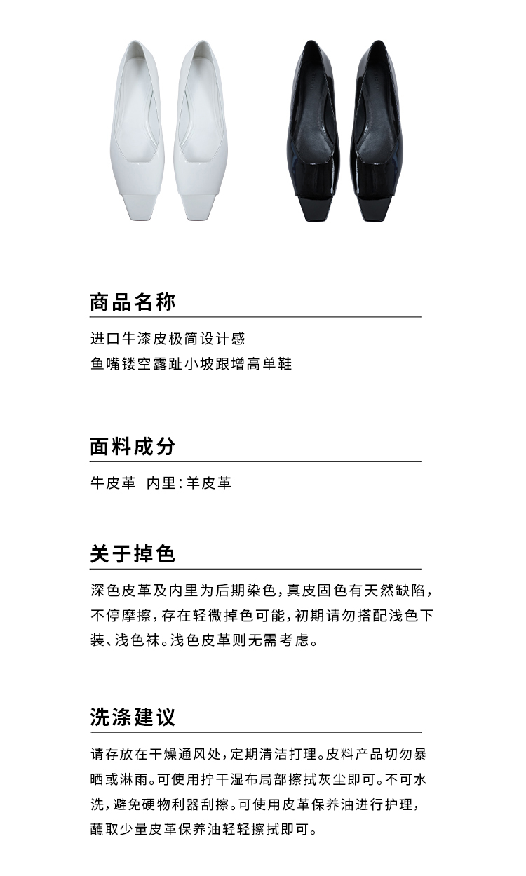HIDEMI 进口牛漆皮极简设计感鱼嘴镂空露趾小坡跟增高单鞋 白色/黑色