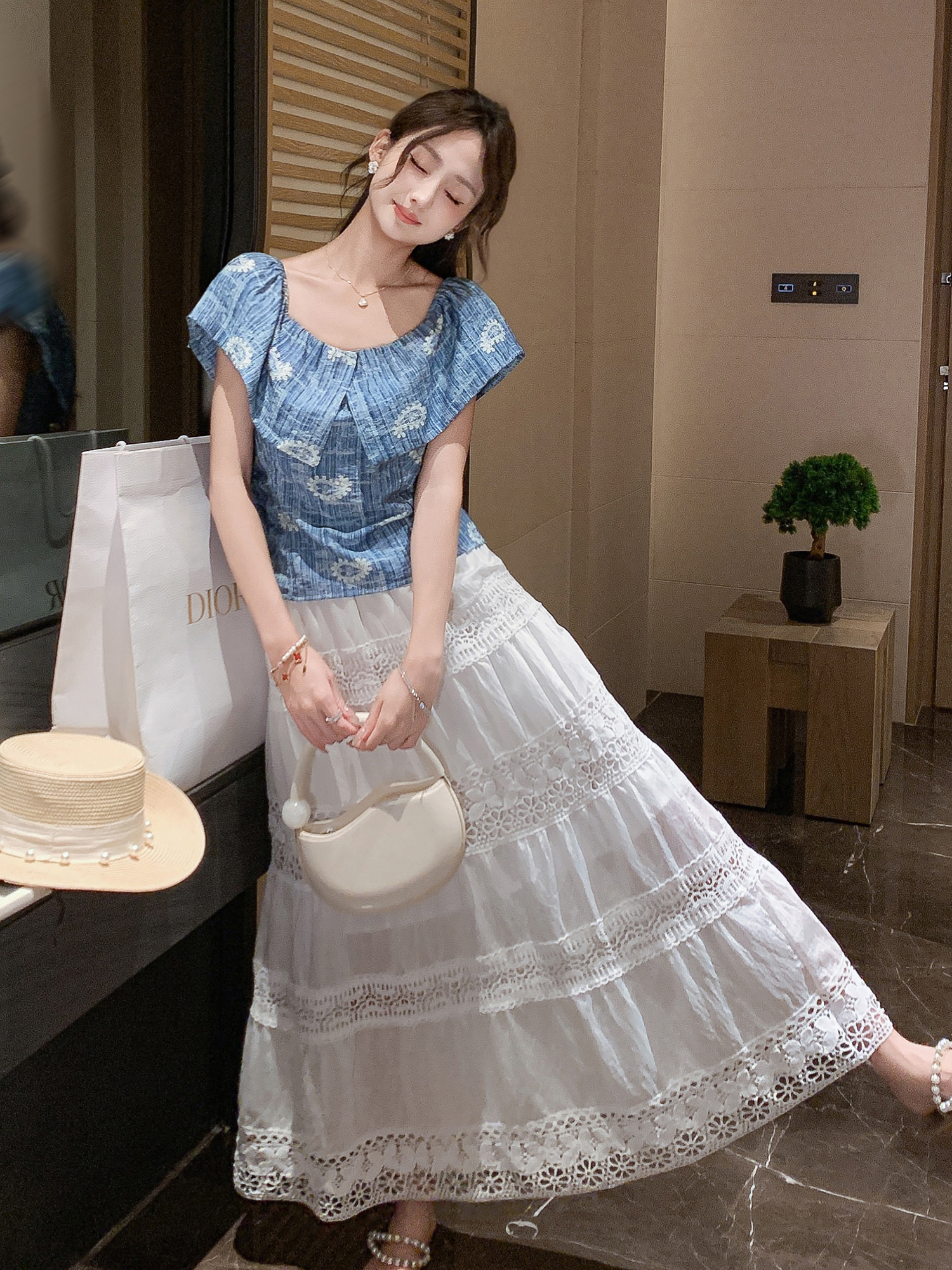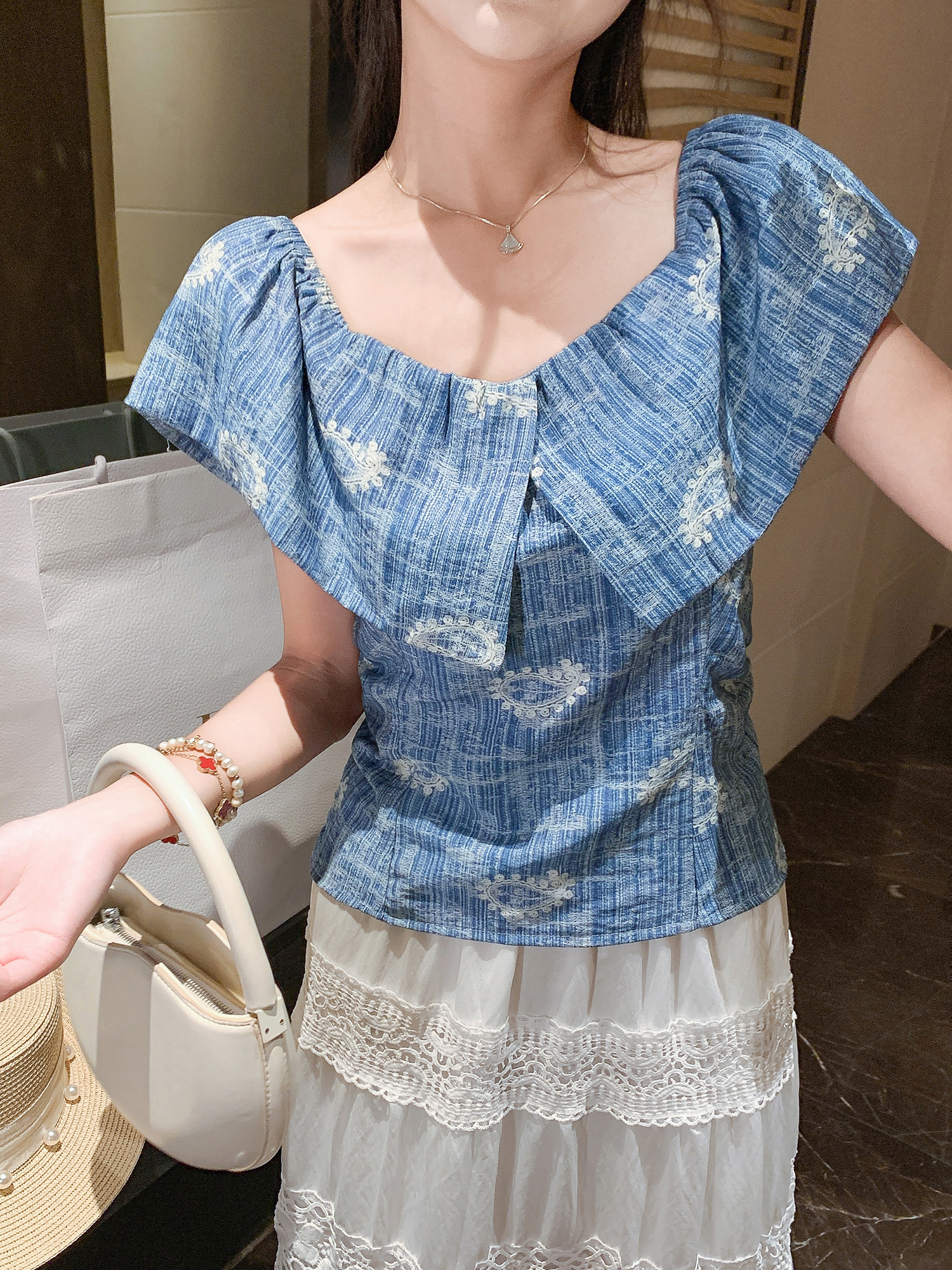 张心子【假日腰果花】方领气质刺绣遮肉上衣 U2505088