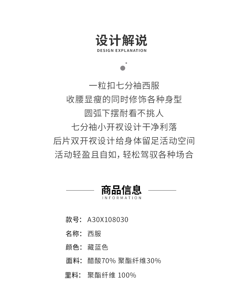 【商场同款】阿菁娜2025夏季新款一粒扣七分袖西装A30X108030