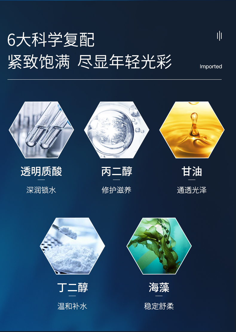 2.采用美国进口鱼子酱成分,质地柔和清爽滋润,补充肌肤水分及养分,令肌肤弹嫩润泽、光泽透亮