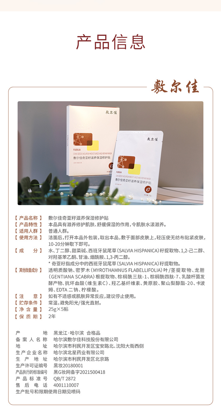 敷尔佳面膜保湿滋润