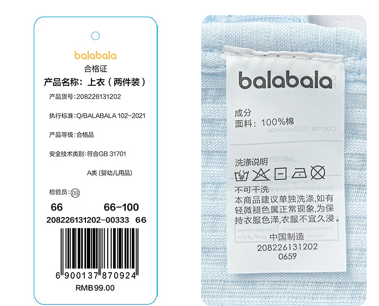 【balaOne】巴拉巴拉宝宝背心婴儿上衣夏季外穿2026款全棉两件装