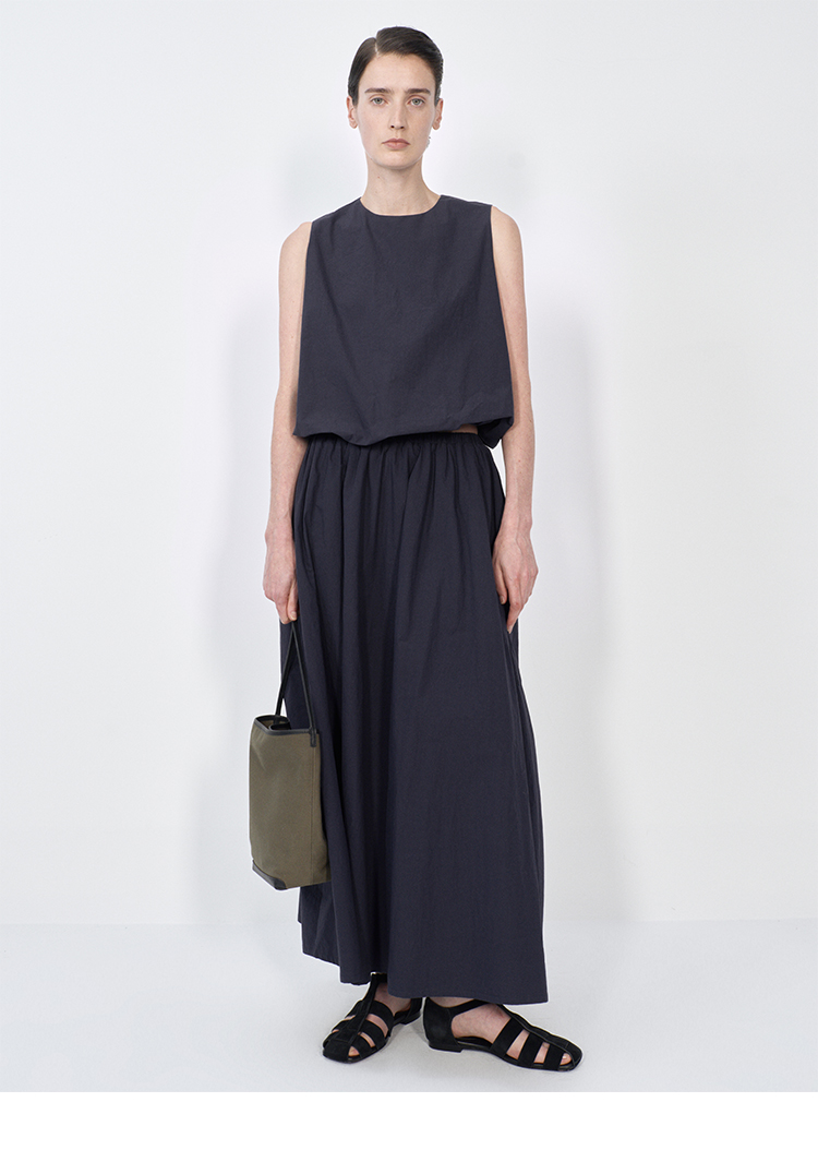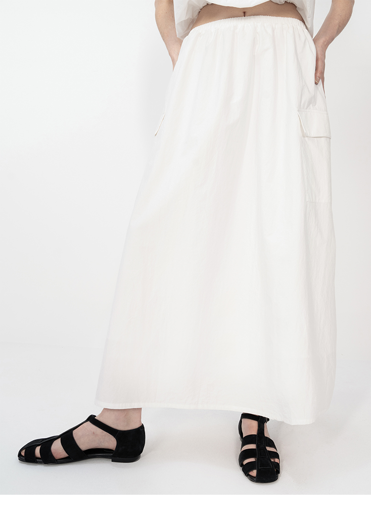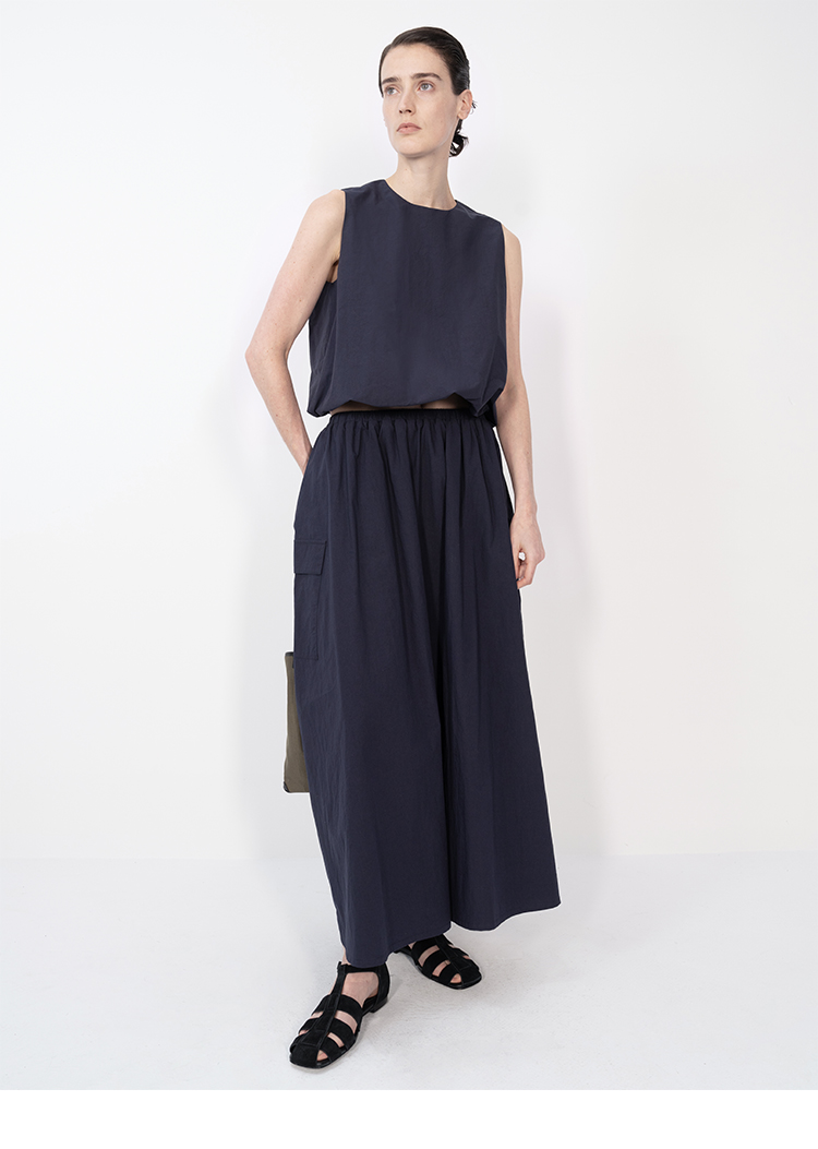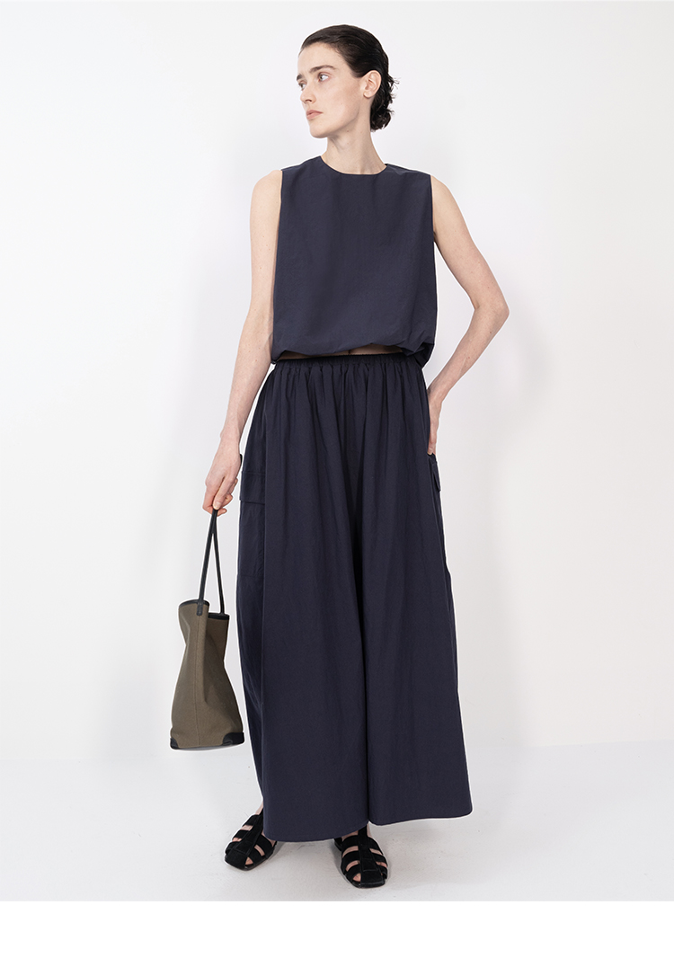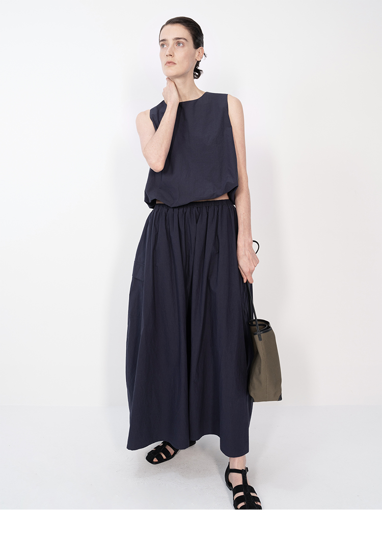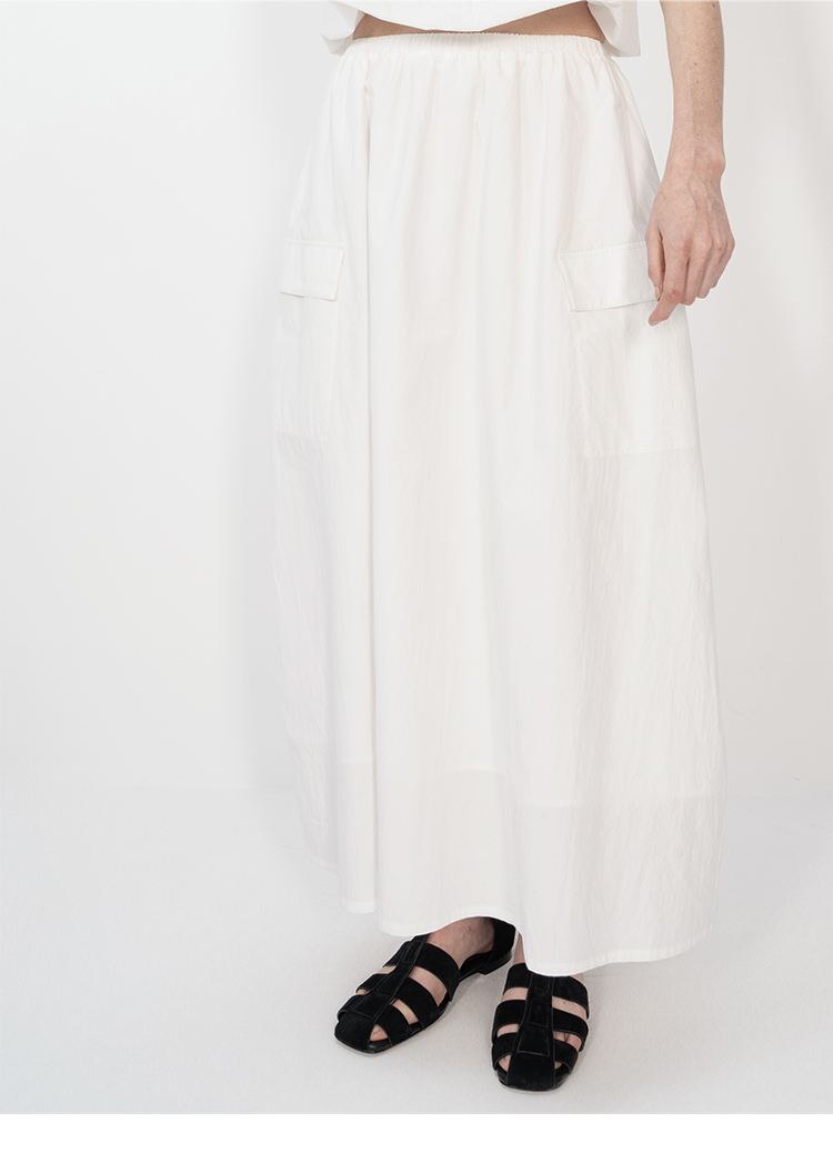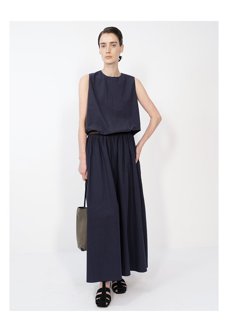 HIDEMI 微褶皱水洗棉简约设计大口袋休闲伞状上衣半身裙套装