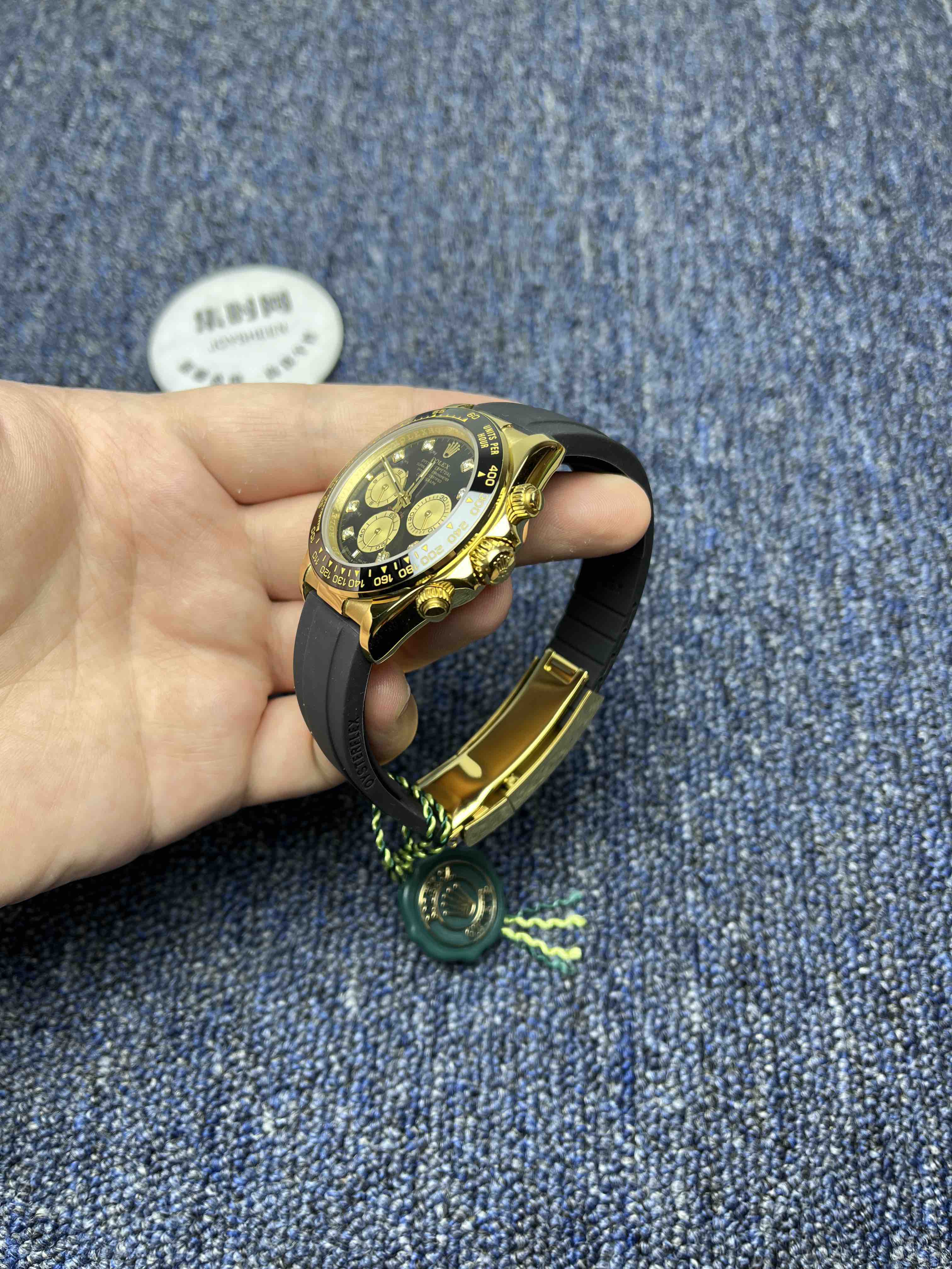 亲民版 劳力士宇宙计型 包边陶瓷圈 新款迪通拿系列 余文乐迪 黄金迪 迪通拿黑盘钻面 男士腕表 搭载全自动机械机芯!316L精钢表壳 蓝宝石玻璃镜面 橡胶表带搭配原装折叠扣 表径40mm