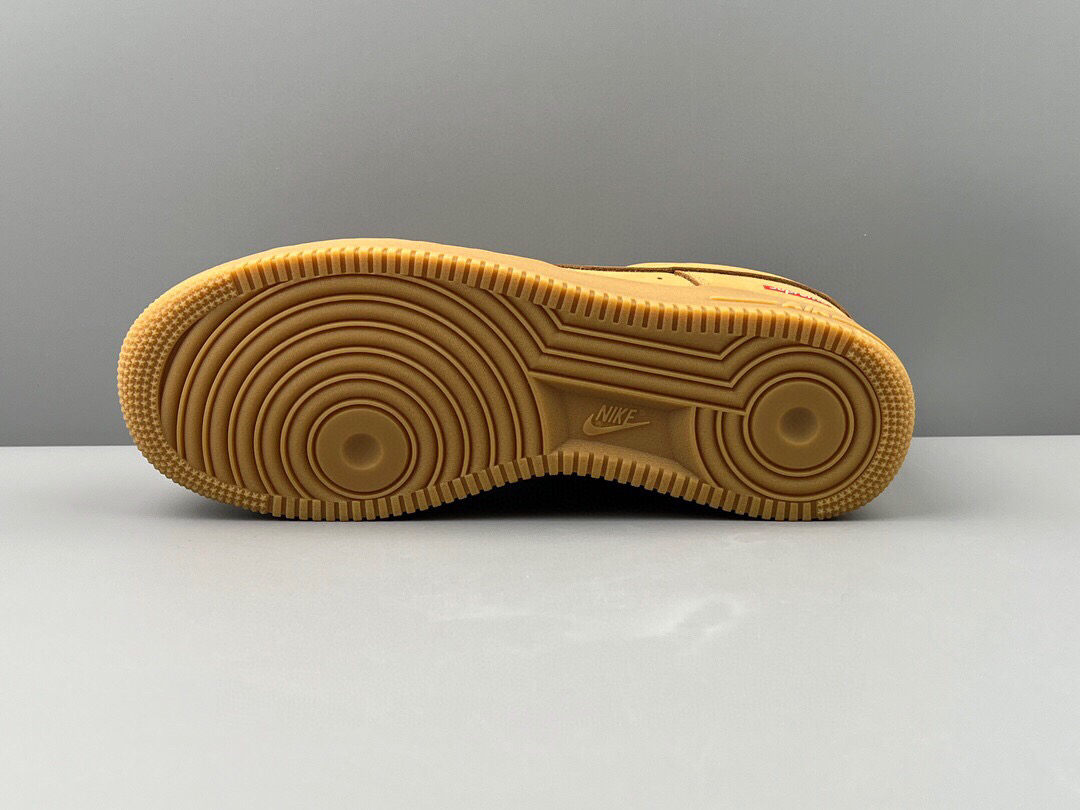 秋冬特惠💰420 Supreme X NK AIR Force 1 Low 空军一号联名 小麦色 同步官方全新版本 全新翻盖原盒配件 最新不规则波浪大底咬花 全鞋面电脑针车 工整有序 原厂拉帮手法 标准四线 密度针距针孔大小控制到位 原装反口里网布海绵 正确卡色网眼大小 新版鞋撑改用纸团代替 原厂港宝加持完美还原灵魂版型 原盒原配从里到外百分百还原 原厂全头层原厂皮料 原标原盒 内置Sole气垫 中底白色背胶 中底划线 已经无限的接近公司 原厂楦头 原厂刺绣 后跟弧度修正
