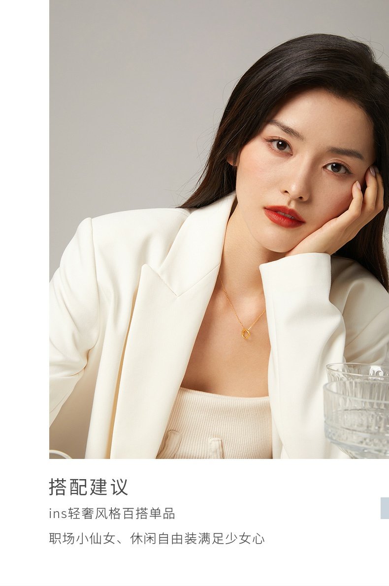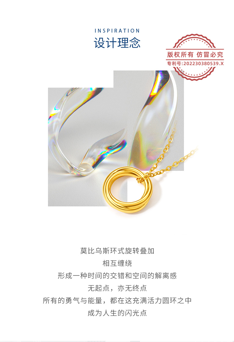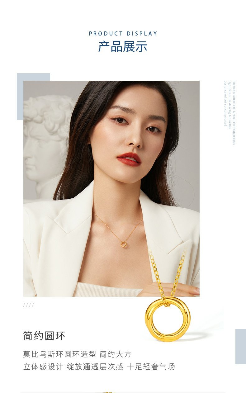 周大生足金任嘉伦项链女莫比乌斯环5D极光金足金套链节日礼物