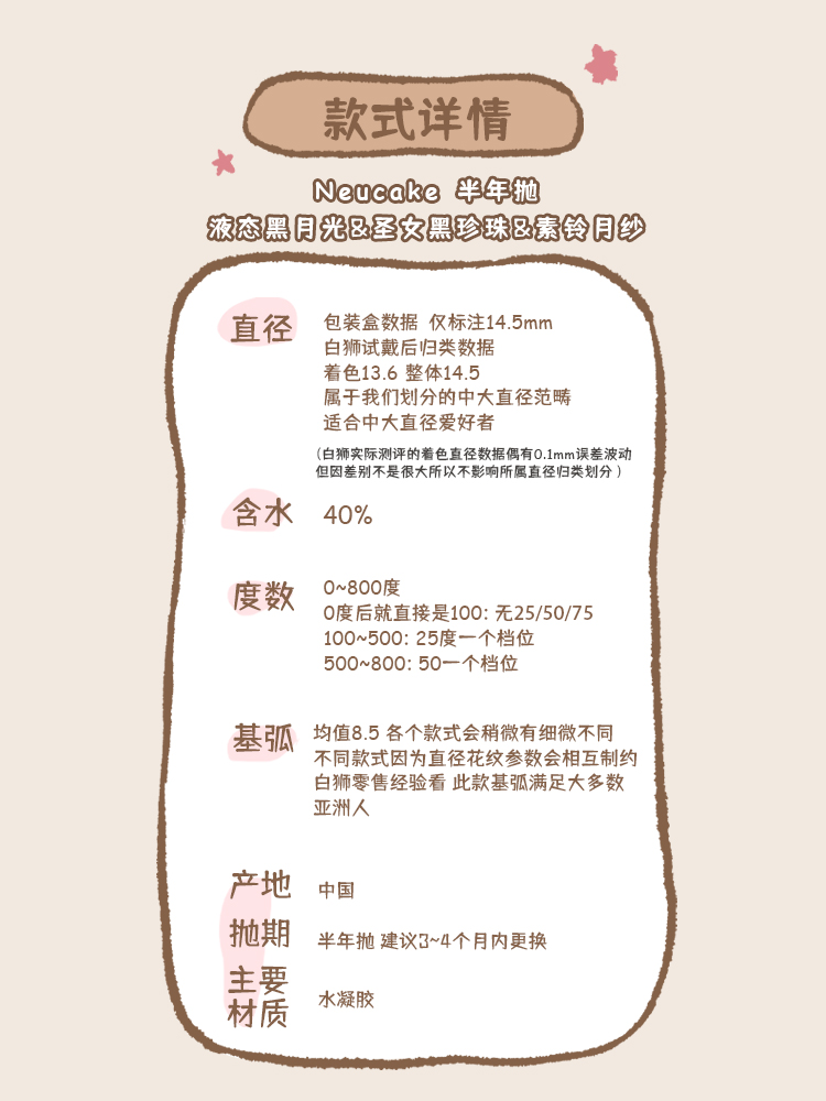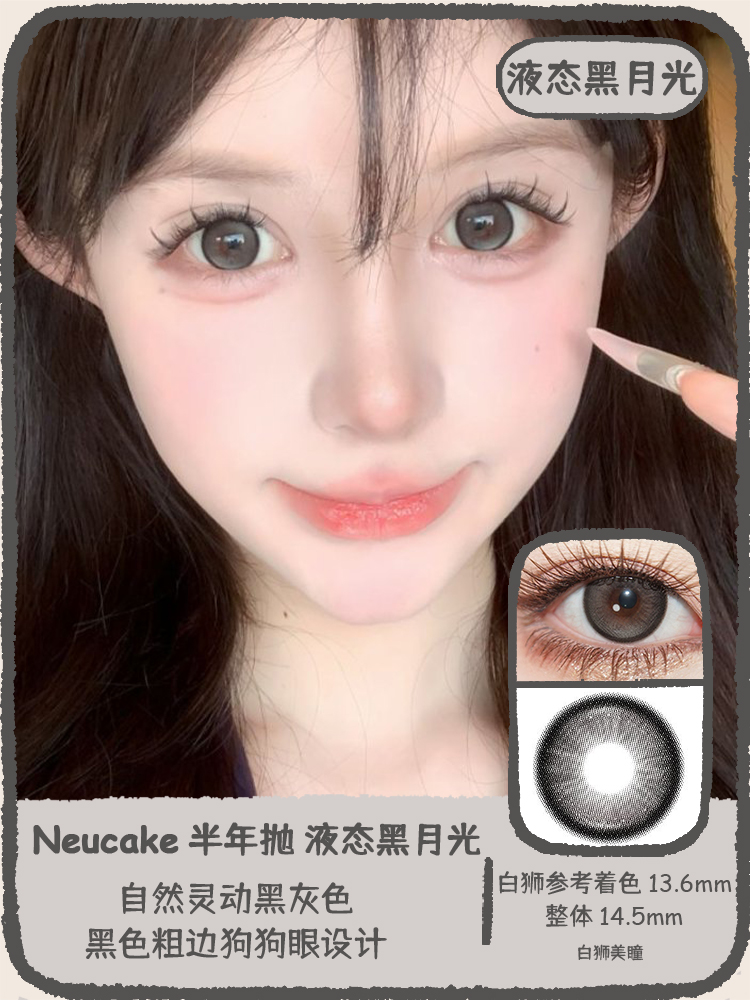 Neucake旗下 ·液态黑月光&圣女黑珍珠&素铃月纱· 14.5mm白狮参考着色中大直径 半年抛2片