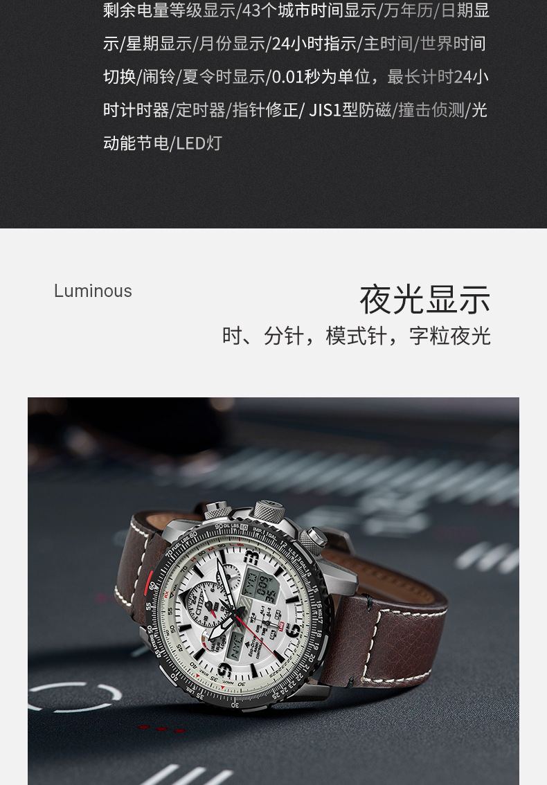 西铁城小牛皮不锈钢覆BIP表壳光动能男表CA0695-17E