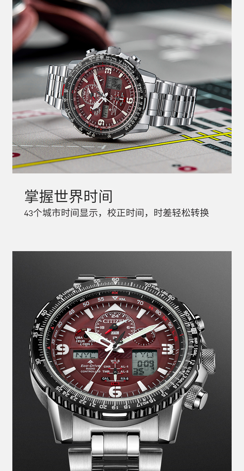 西铁城日本官方正品商务休闲光动能电波男士手表JY8084-17H