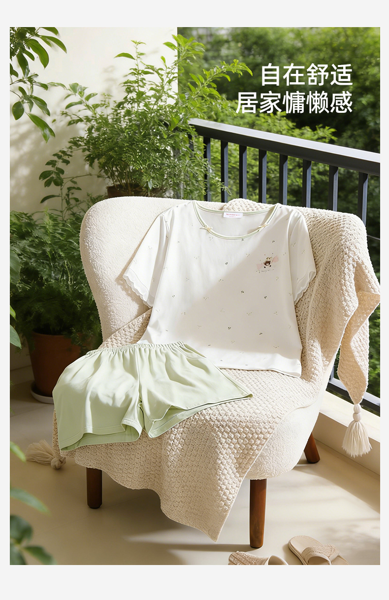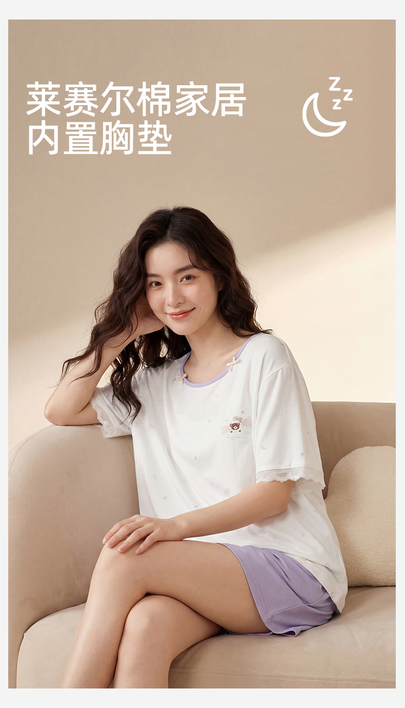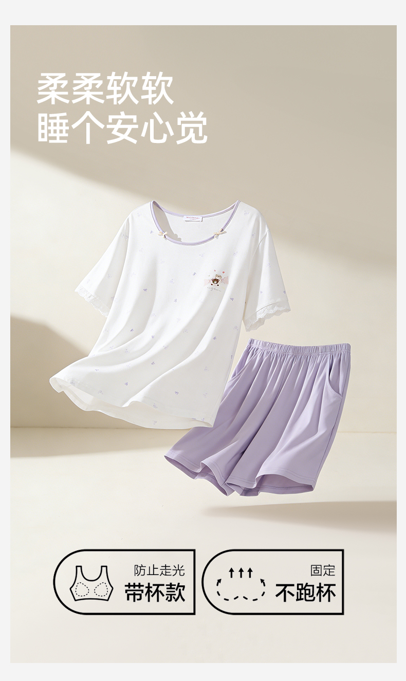 【带杯垫】熳洁儿 莱赛尔棉家居服短袖短裤套装撞色甜美26263205