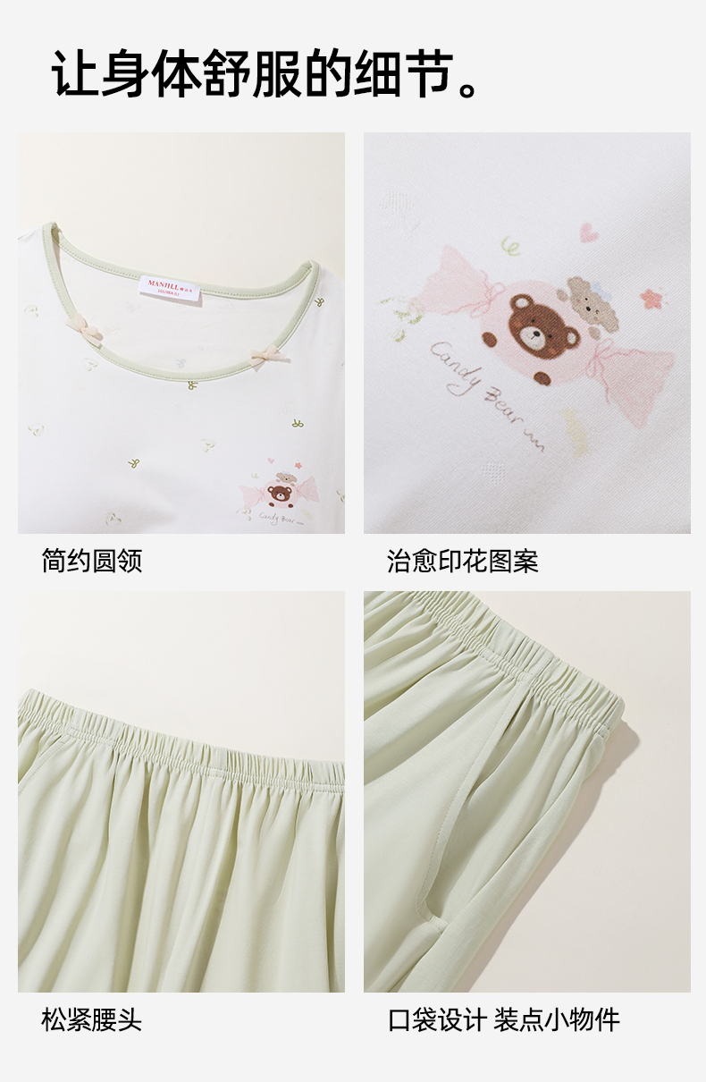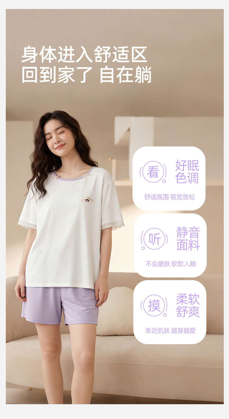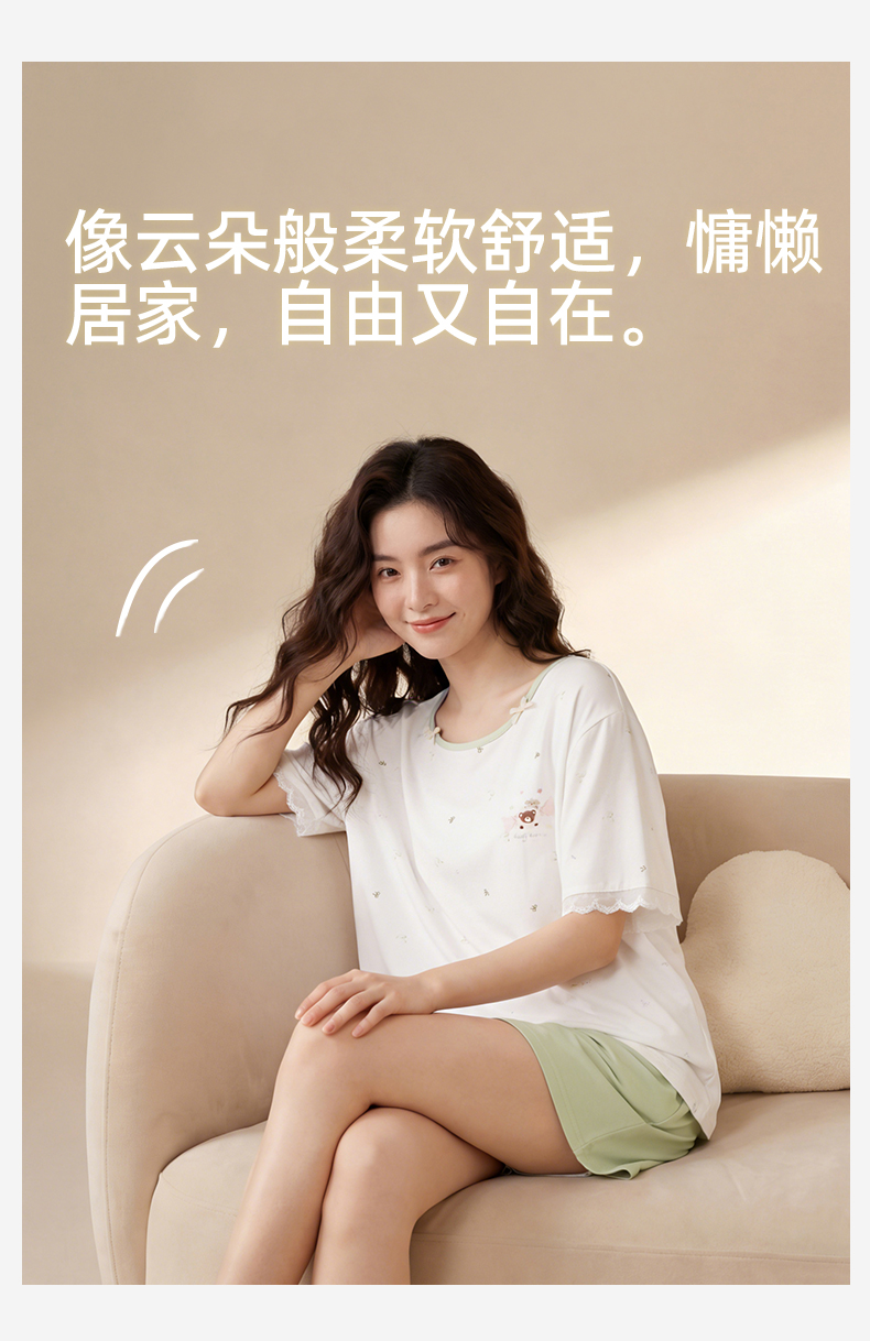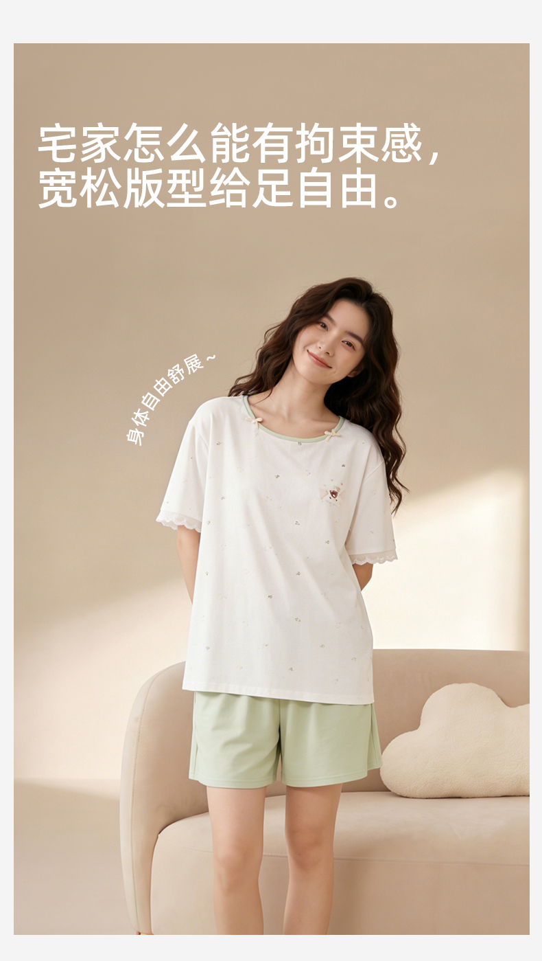 【带杯垫】熳洁儿 莱赛尔棉家居服短袖短裤套装撞色甜美26263205