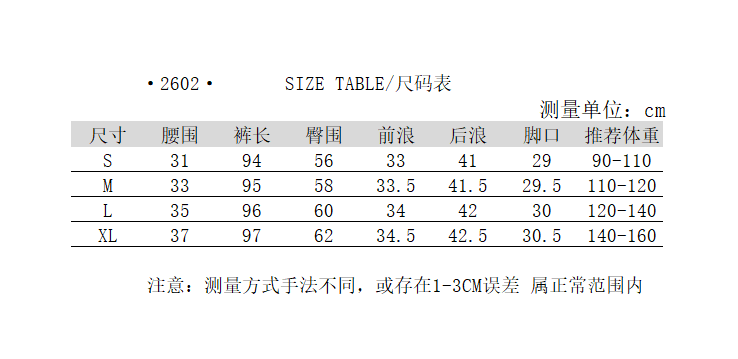尺码: S M L XL