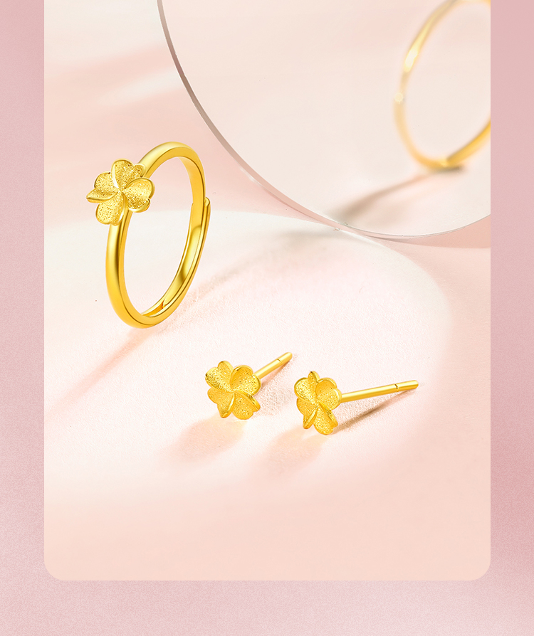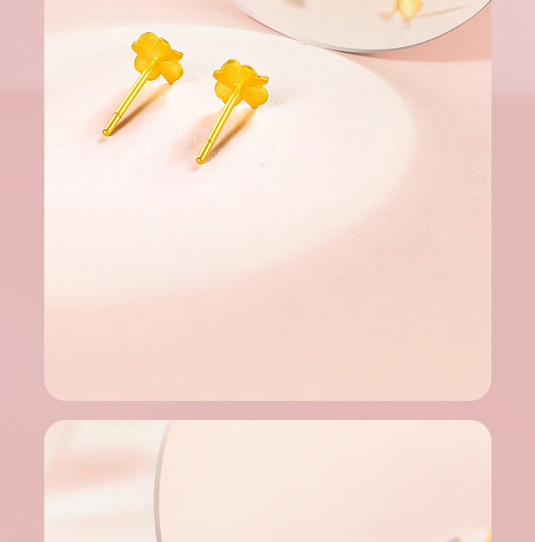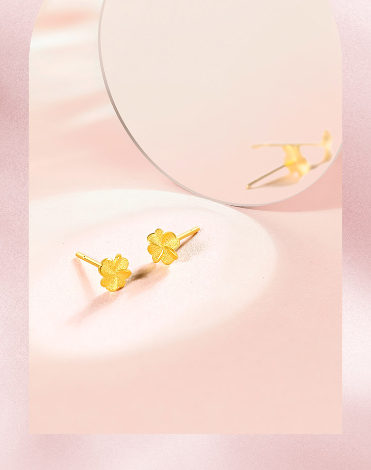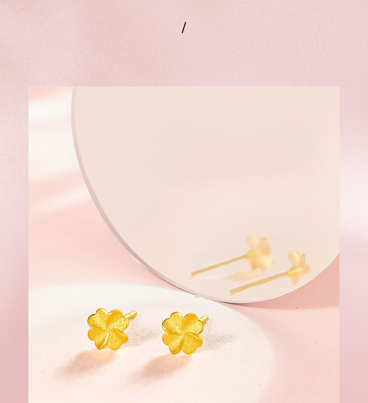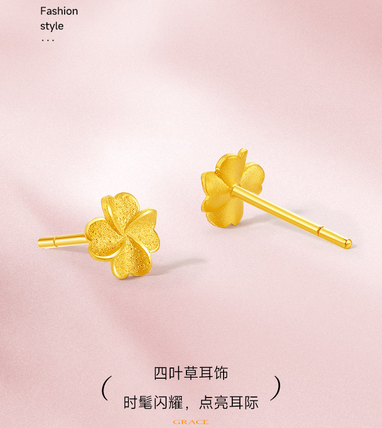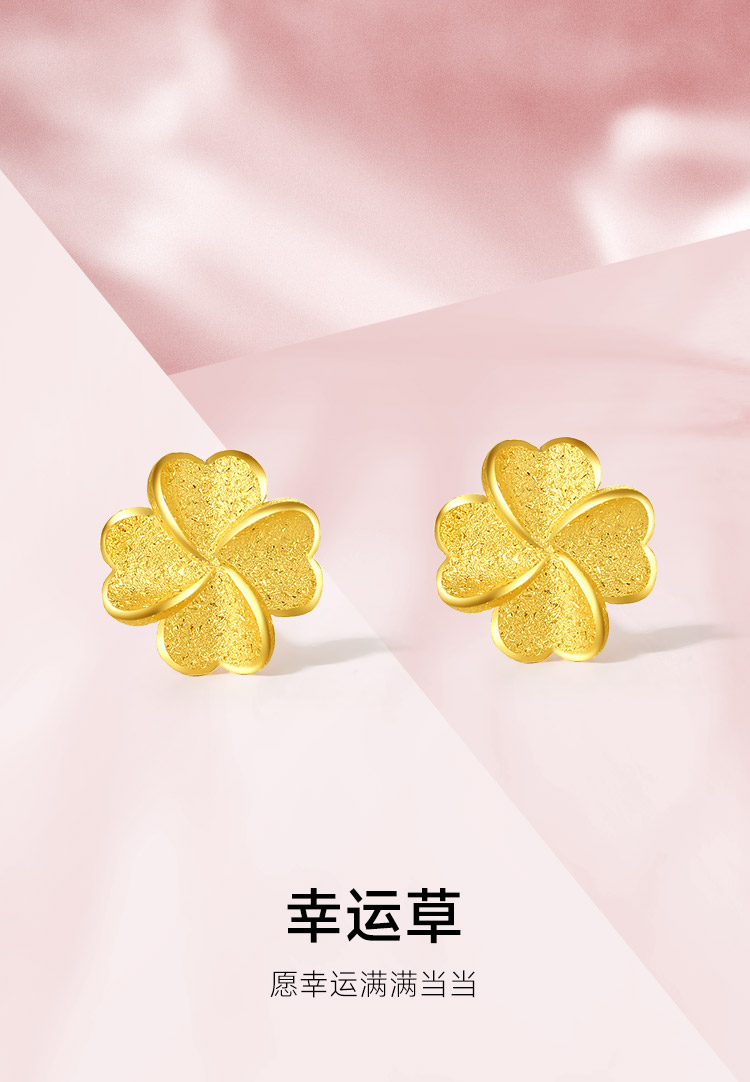 周六福四叶草黄金耳钉女计价足金幸运草耳饰首饰送女友礼物
