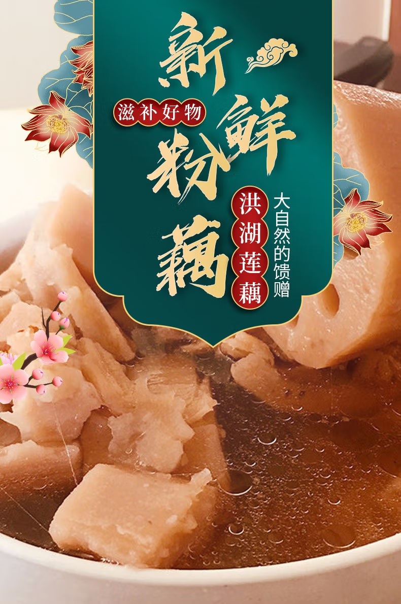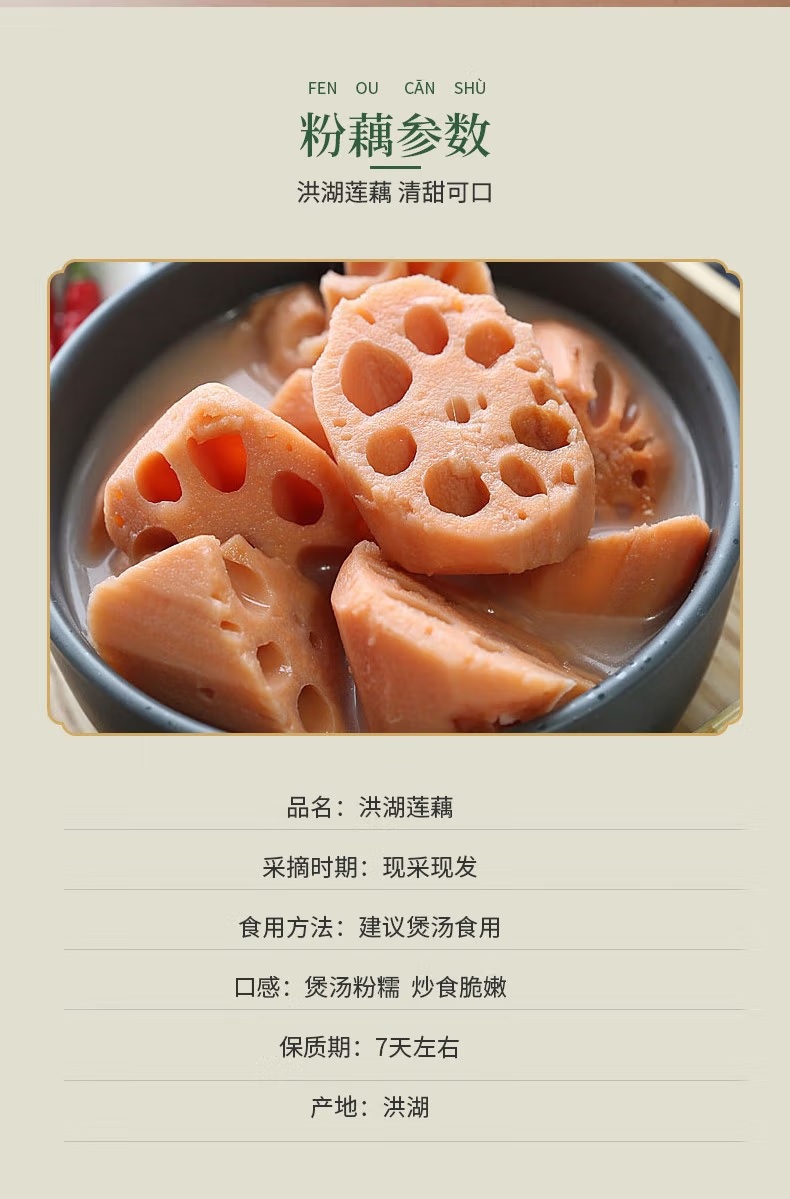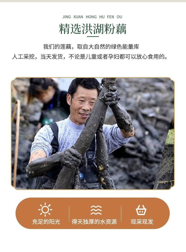 2025年洪湖农家 莲藕 粉藕5斤 现阶段需使用燃气高压锅上气大火炖25分钟以上,不粉包赔! 顺丰包邮
