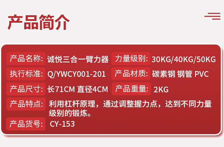 诚悦臂力器30/40/50公斤三合一运动器械扩胸器臂力棒肌肉锻炼臂肌胸肌腹肌CY153