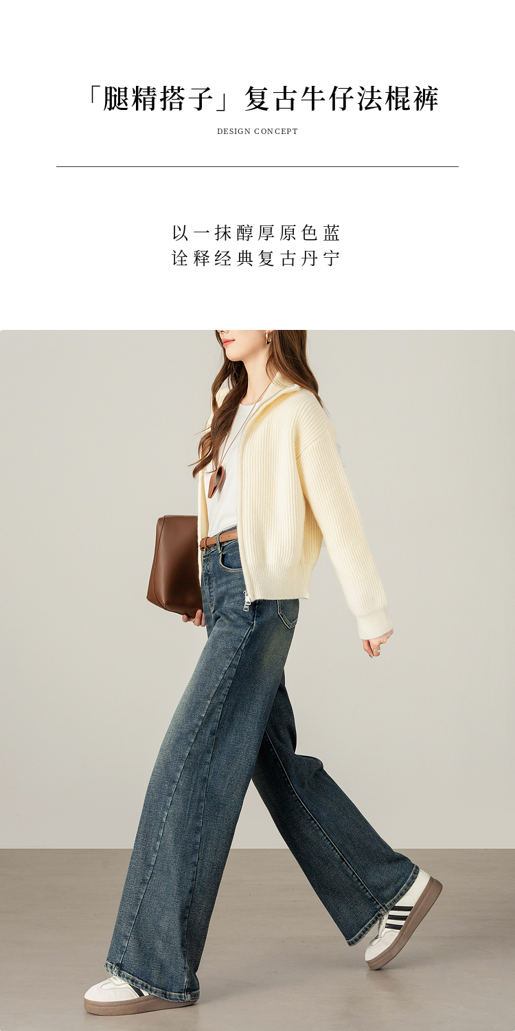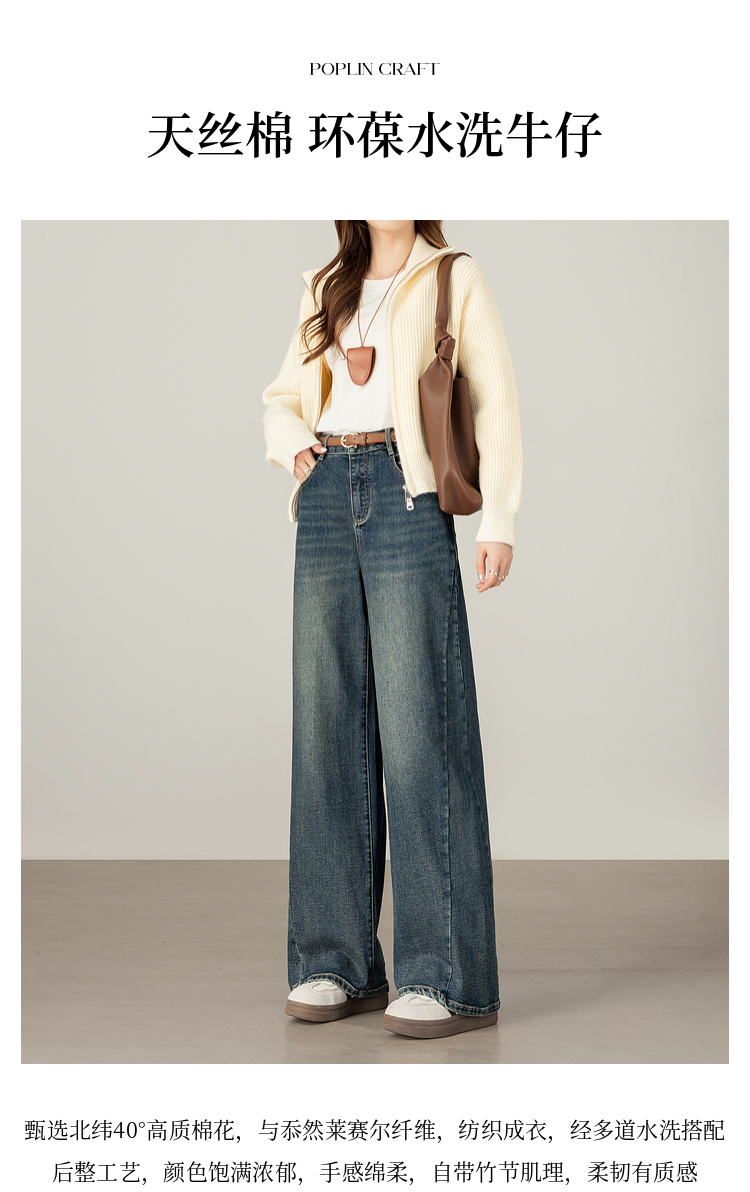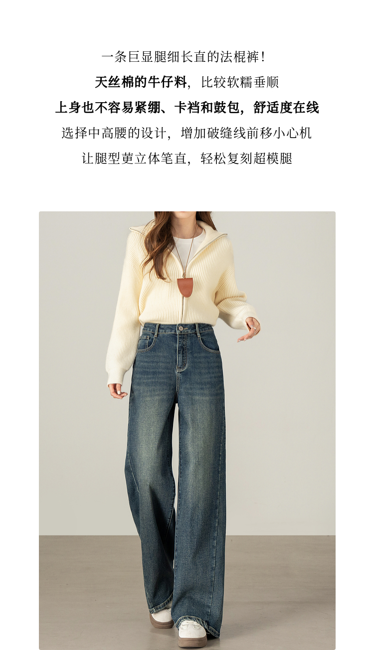 【09/17新品】熙世界【C位腿精裤】窄版阔腿牛仔裤女士秋季宽松天丝直筒法棍裤