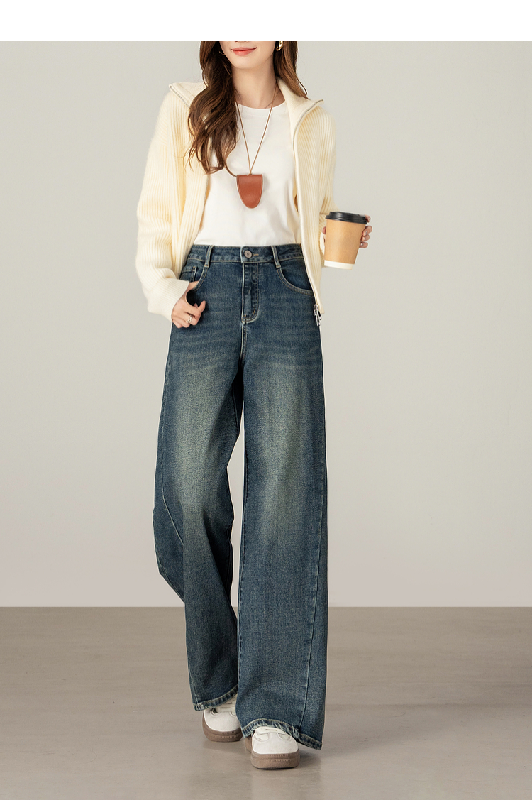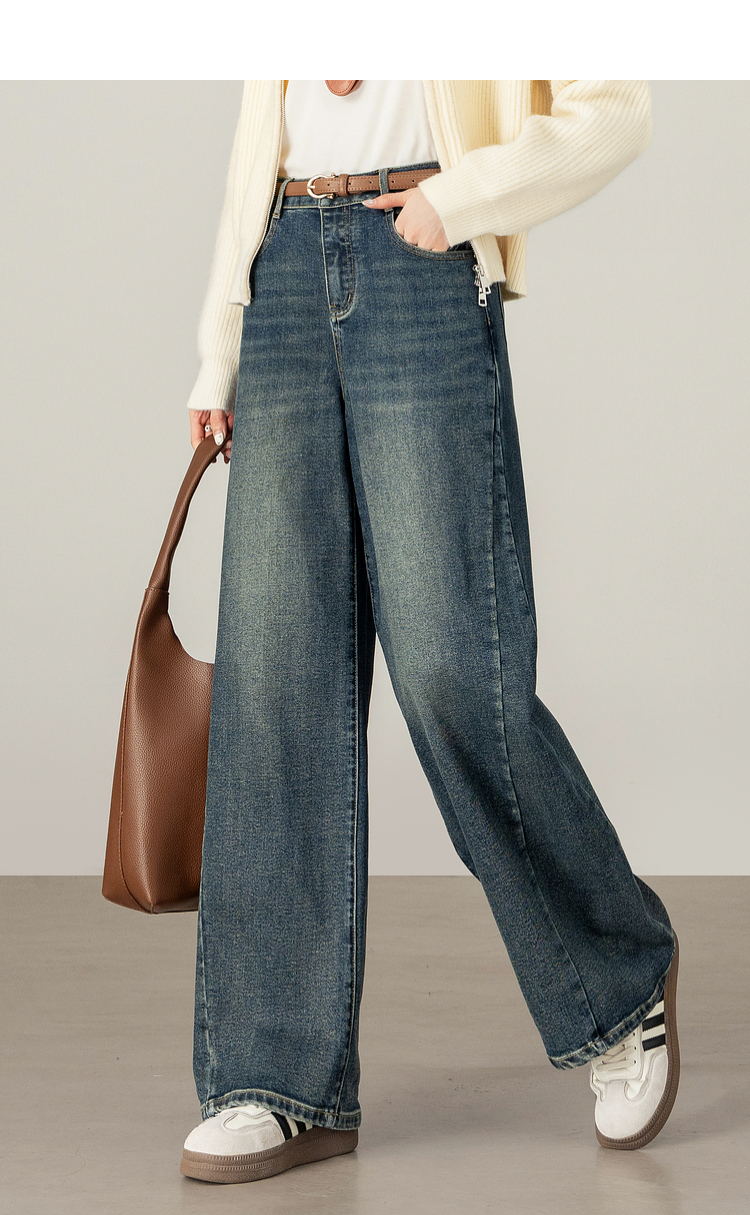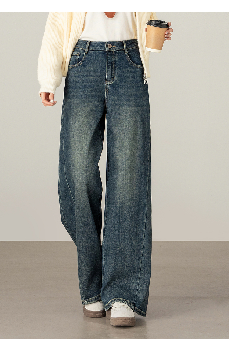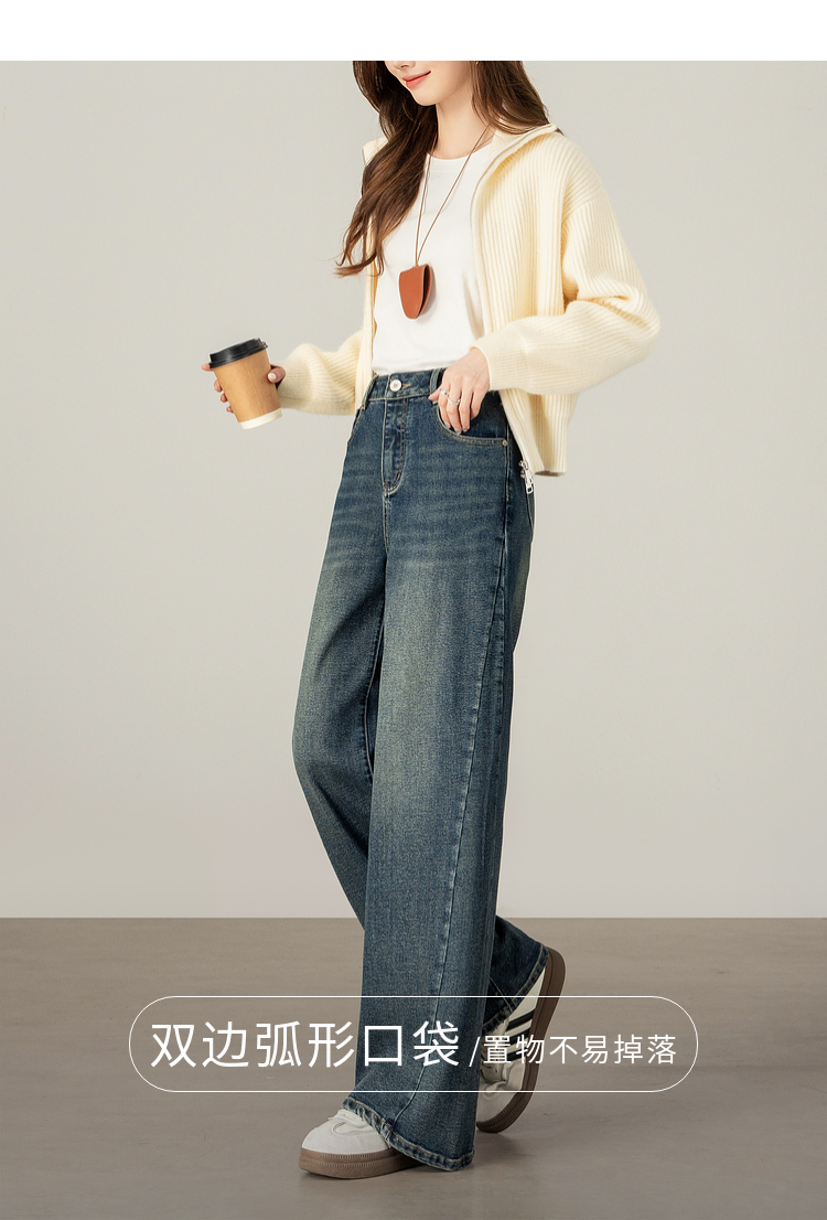 【09/17新品】熙世界【C位腿精裤】窄版阔腿牛仔裤女士秋季宽松天丝直筒法棍裤