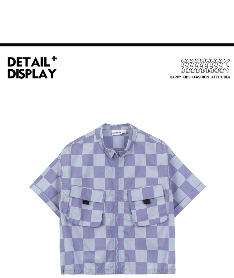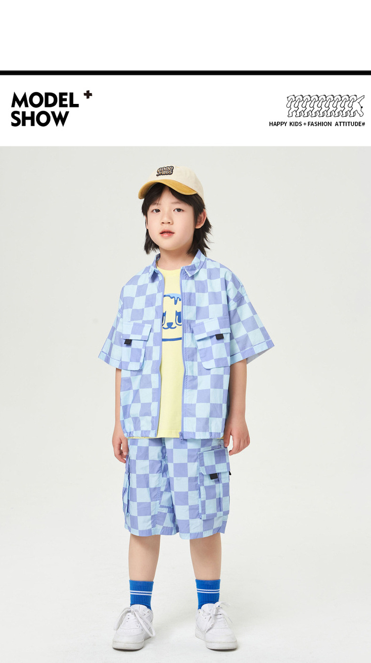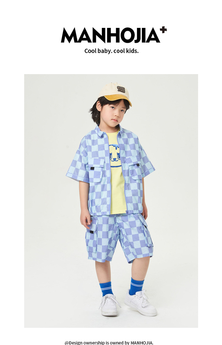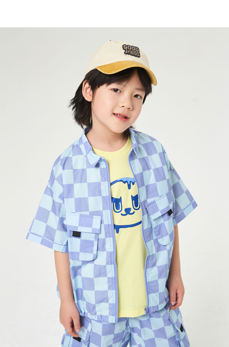 马拉丁潮牌漫画家童装男童衬衫夏新品儿童工装外套式短袖衬衫