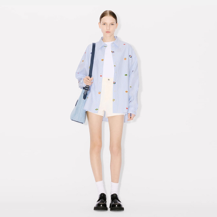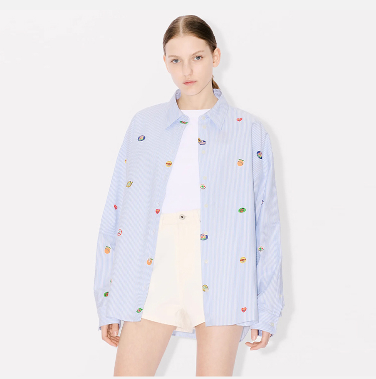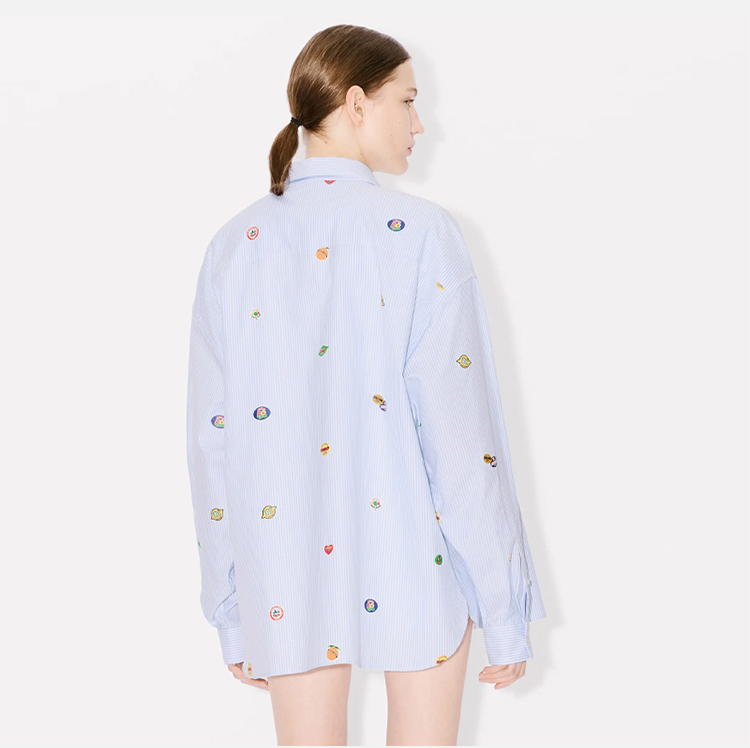 KENZO 高田贤三 女士水果贴纸印花棉质长袖衬衫 条纹 FE52 CH247 9A1 64
