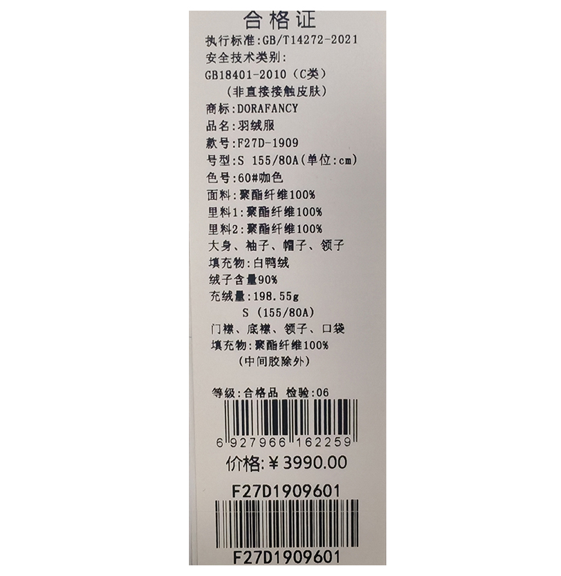 朵拉梵西羽绒服F27D1909
