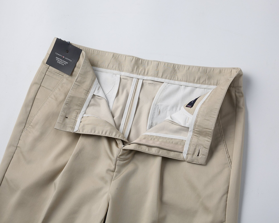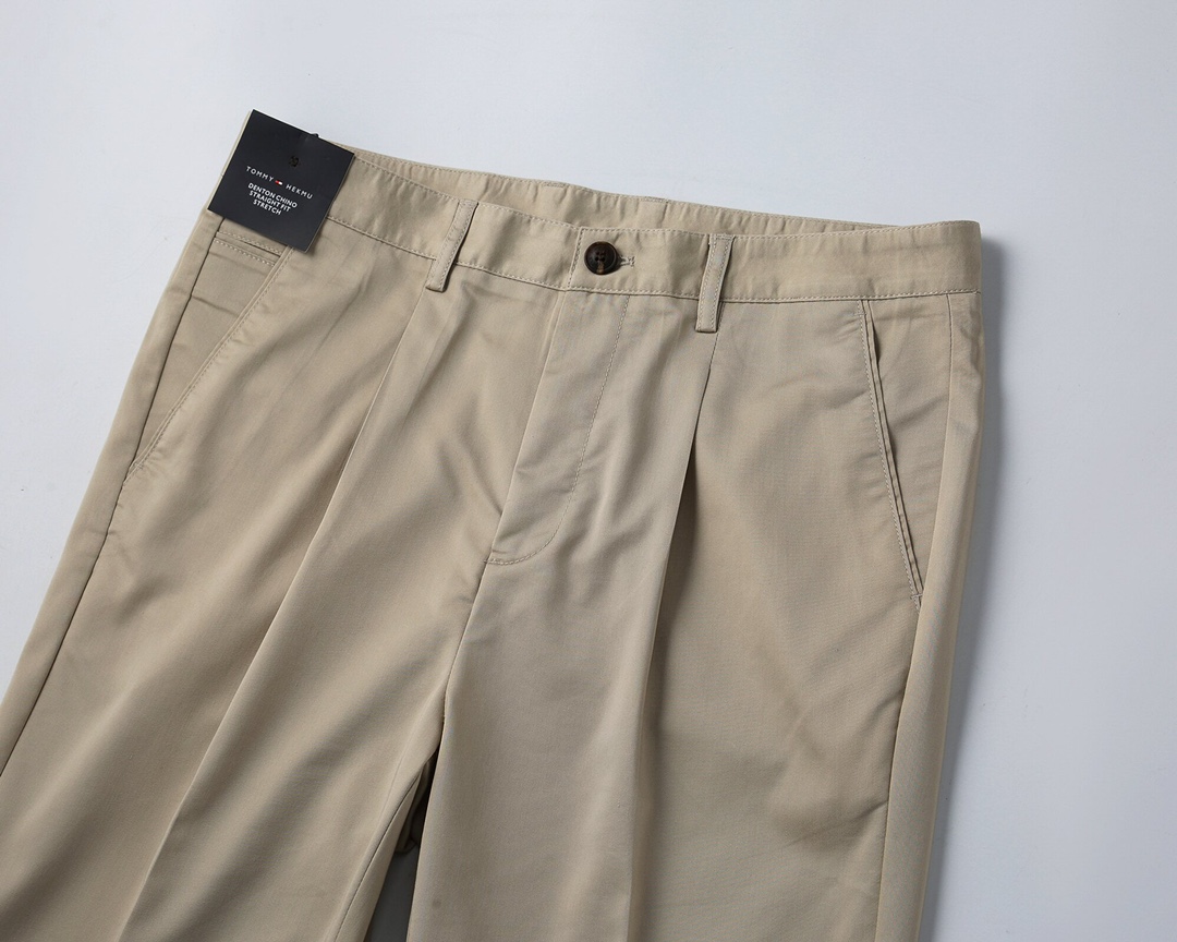 91018#-卡其 薄料汤米打褶休闲裤,采用天丝棉面料,手感柔软舒适,夏季穿着清凉透气抗皱! 码数29-46