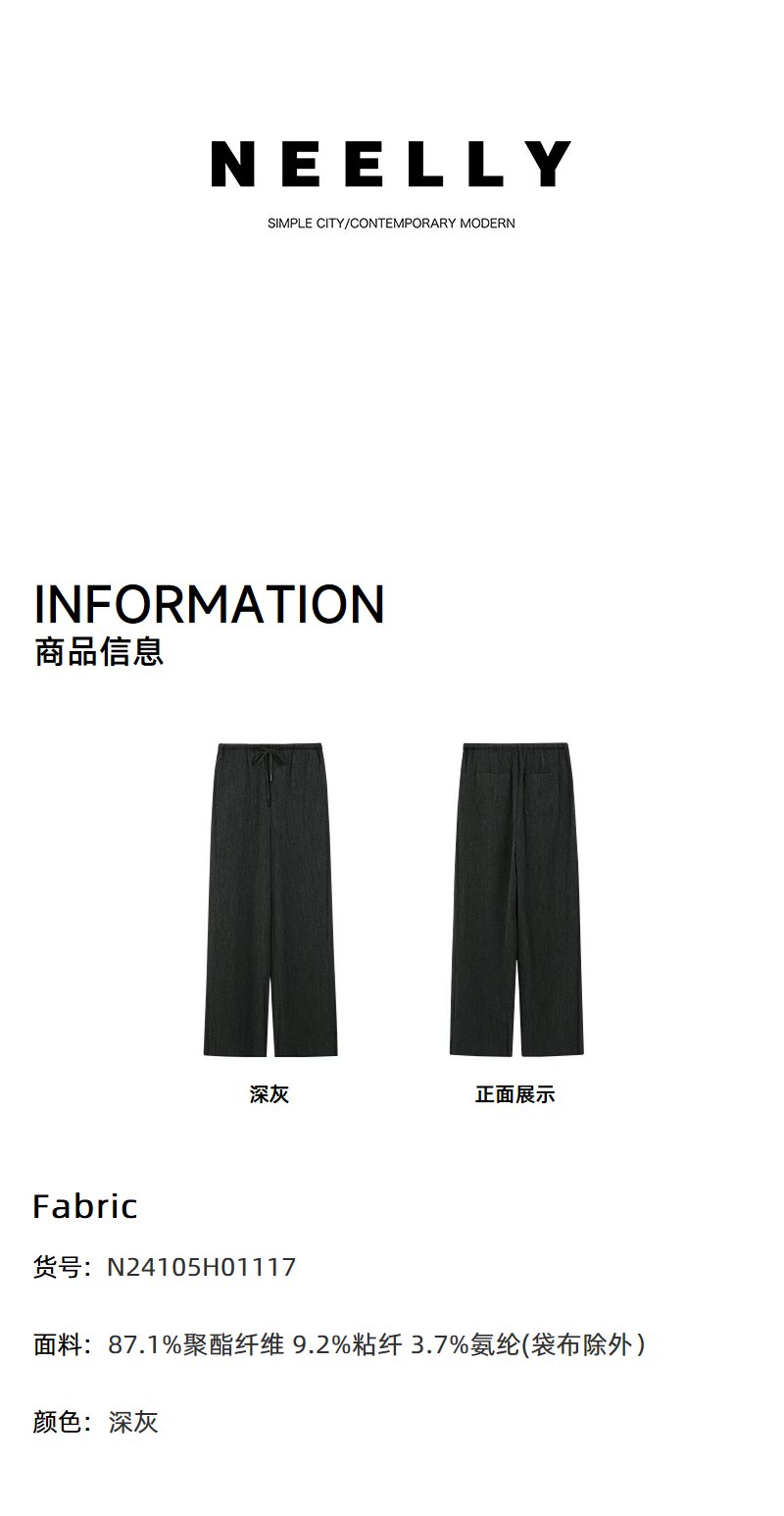 NEELLY纳俪商场同款冬季新款深色系带休闲裤女垂坠感百搭阔腿长裤N24105H01117