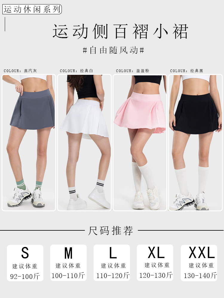 哈瓦塔运动安全侧百褶网球裙H34118