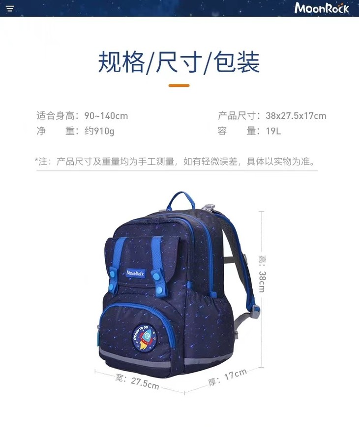 2021春季新款香港梦乐(MoonRock)护脊书包小学生护脊减负书包男女儿童双肩背包SP101P系列
