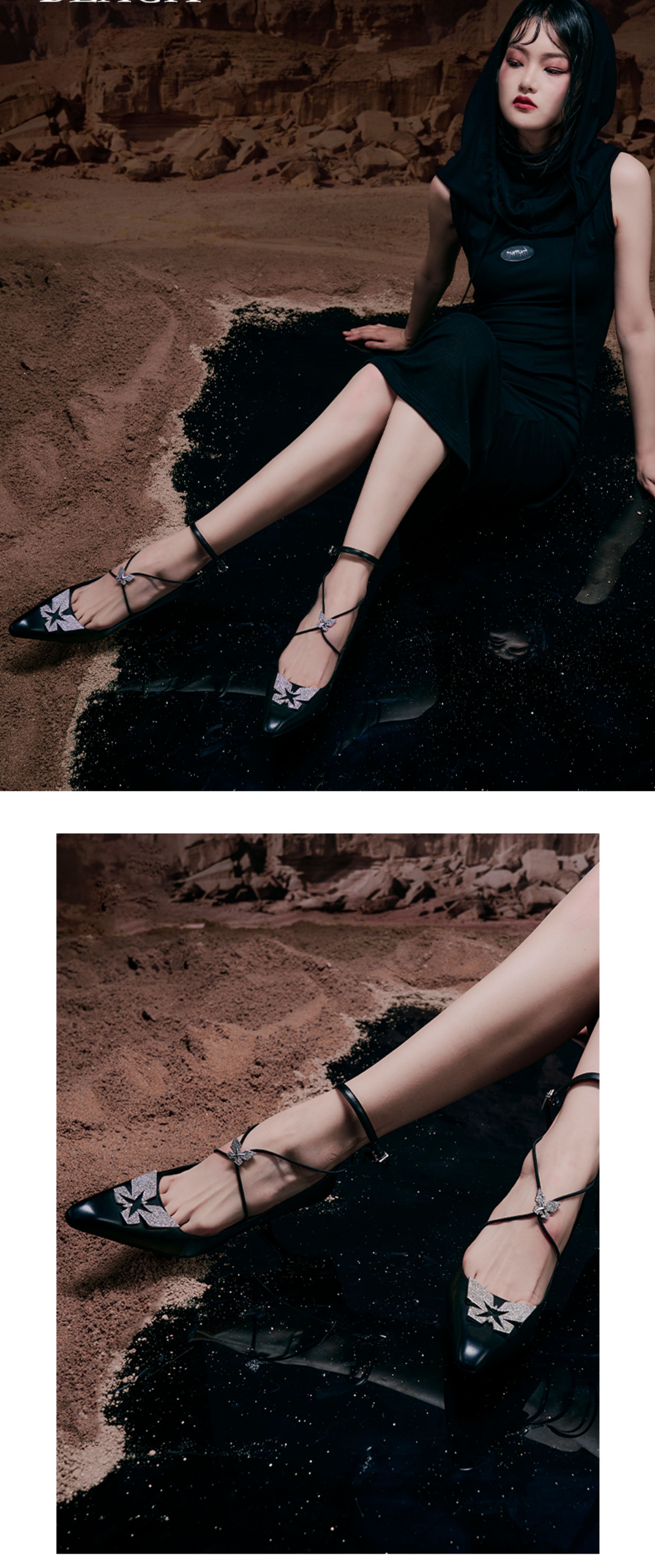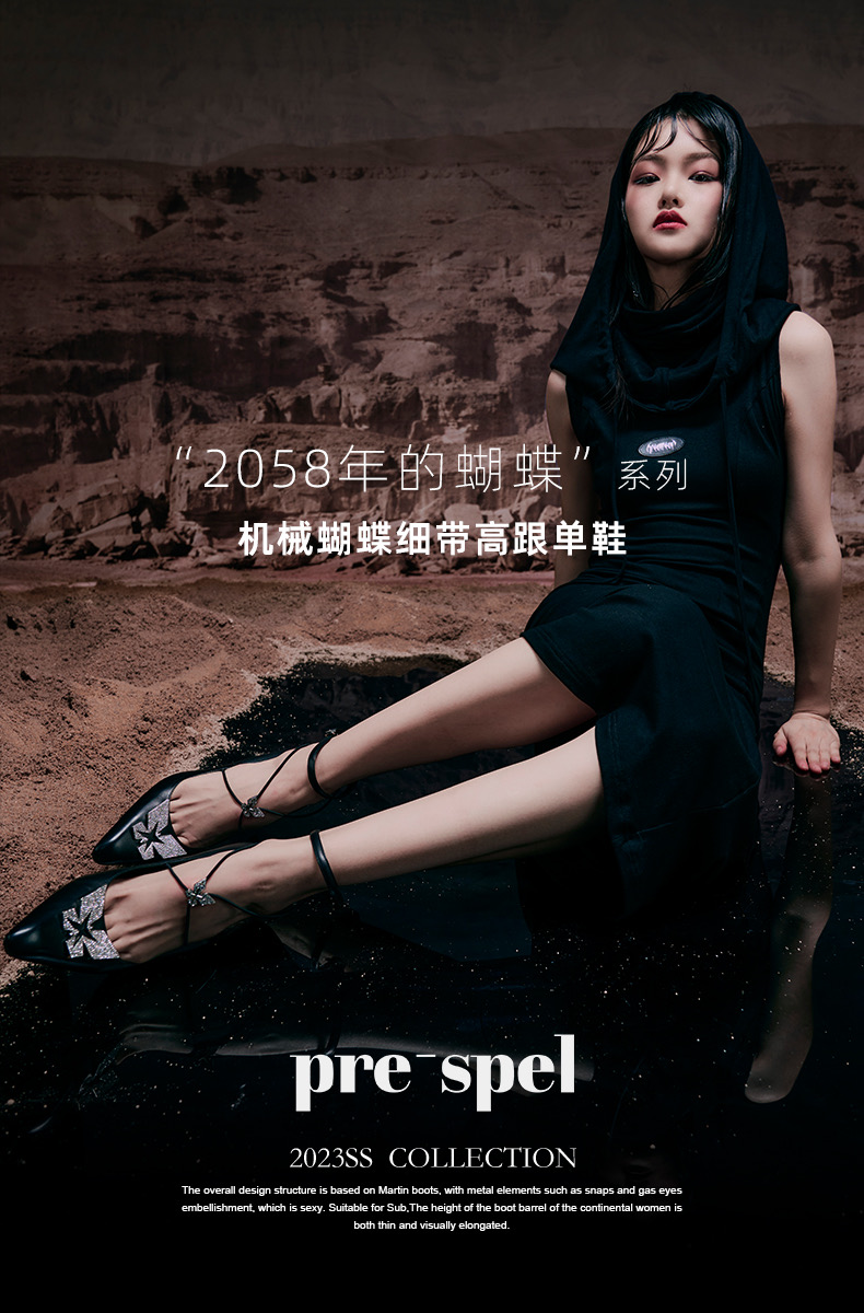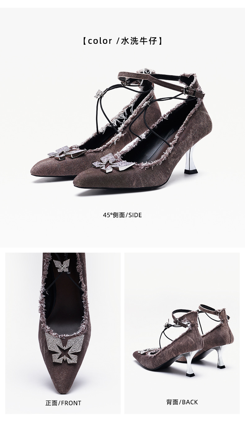 机械蝴蝶细带高跟单鞋