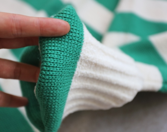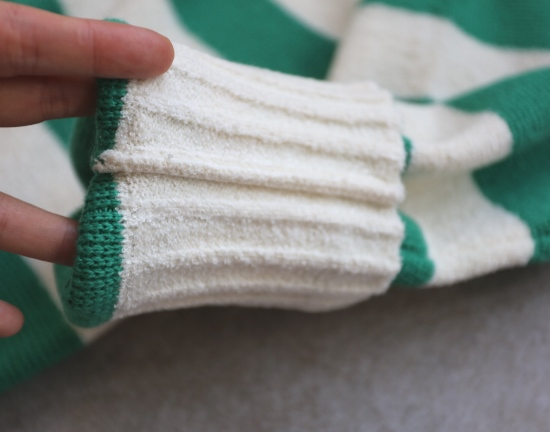 侧身条纹 基本对齐 采用锁链式的踩线 品控相当可以了