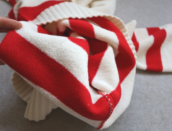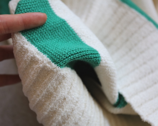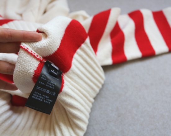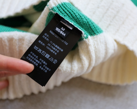 白色位置 28.1%绵羊毛+71.9%聚酯纤维 彩条位置 100%绵羊毛的