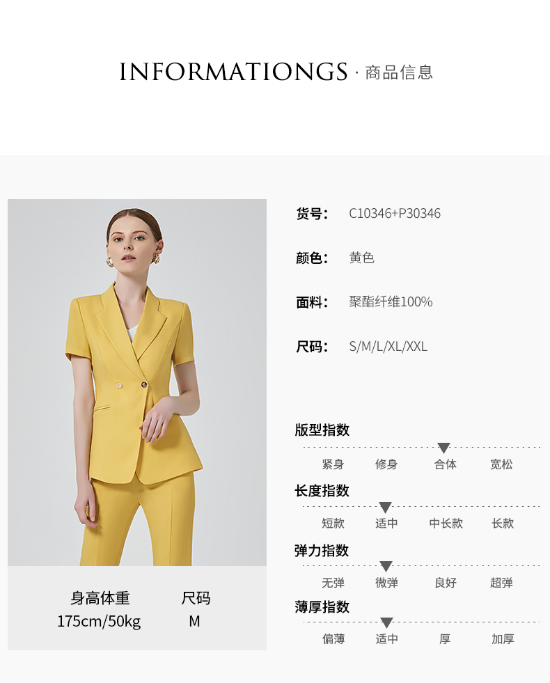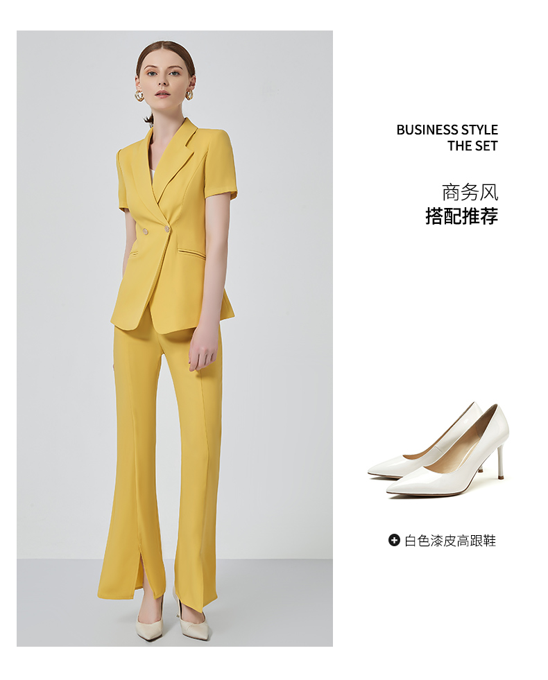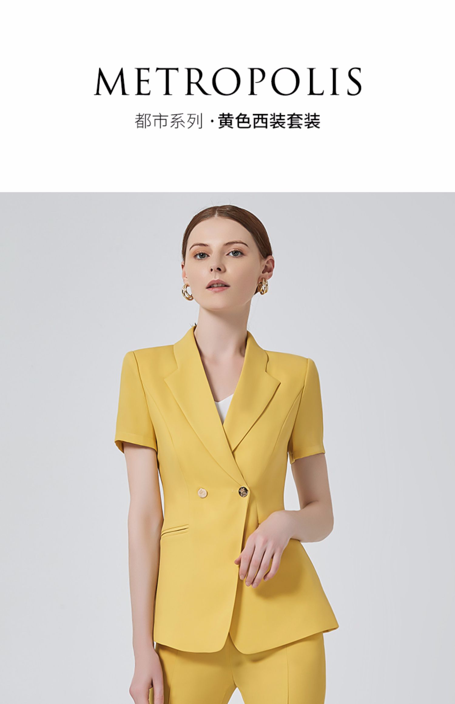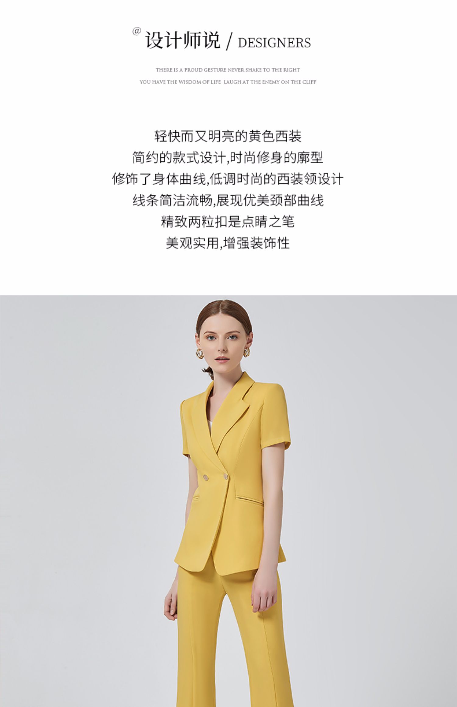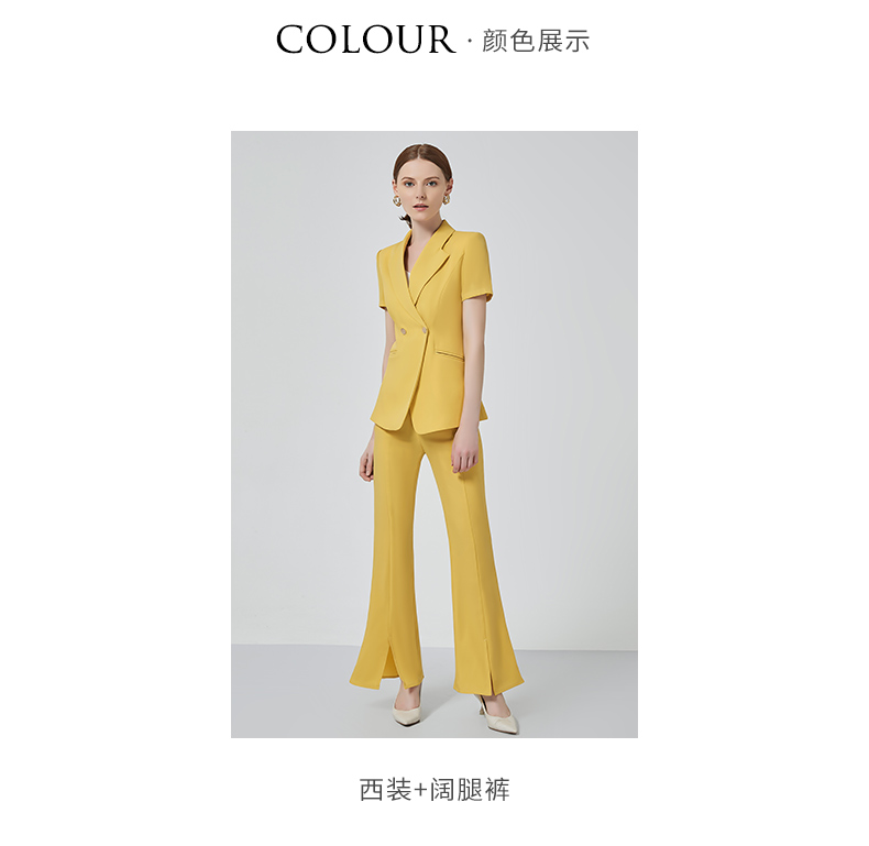 IWY/黄色播音正装洋气阔腿裤西服套装女时尚气质修身OL高端职业装C10346+P30346