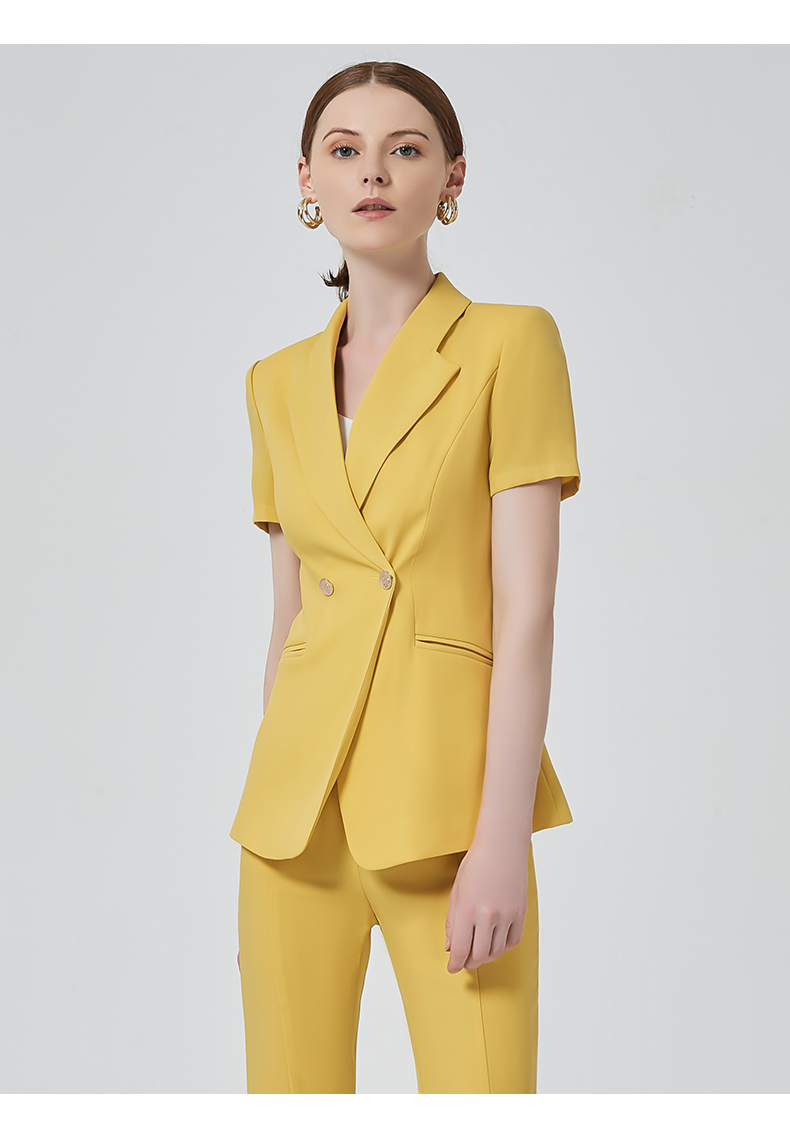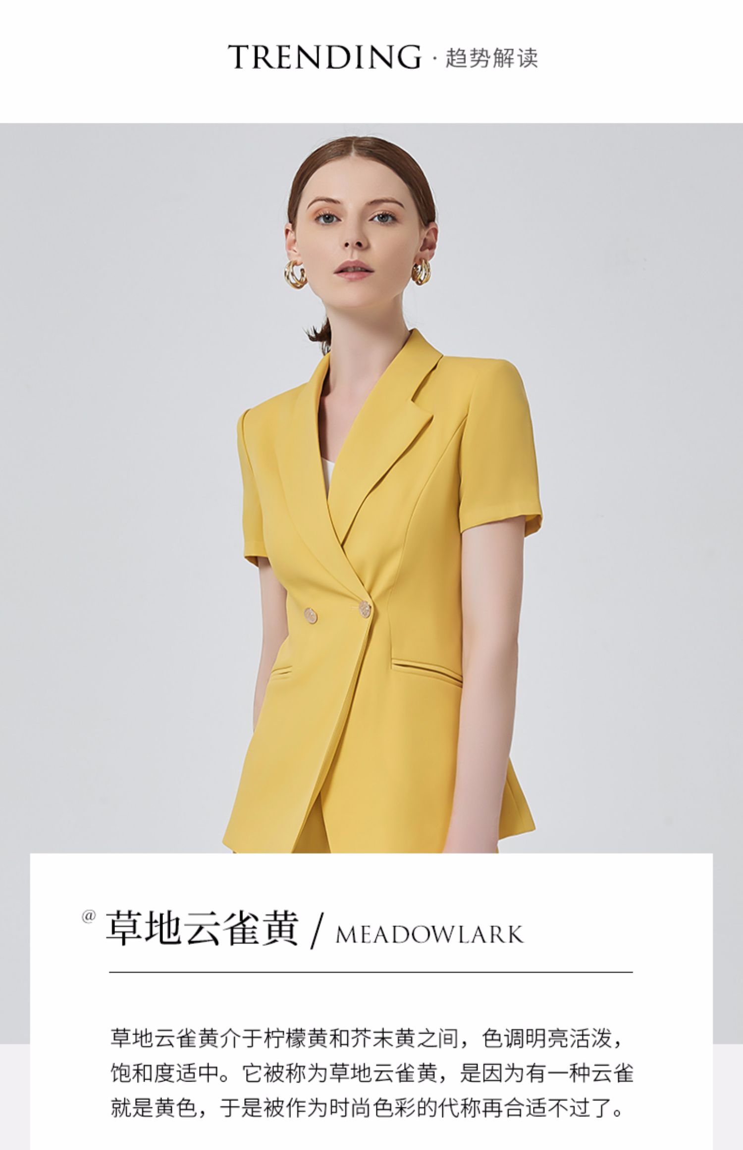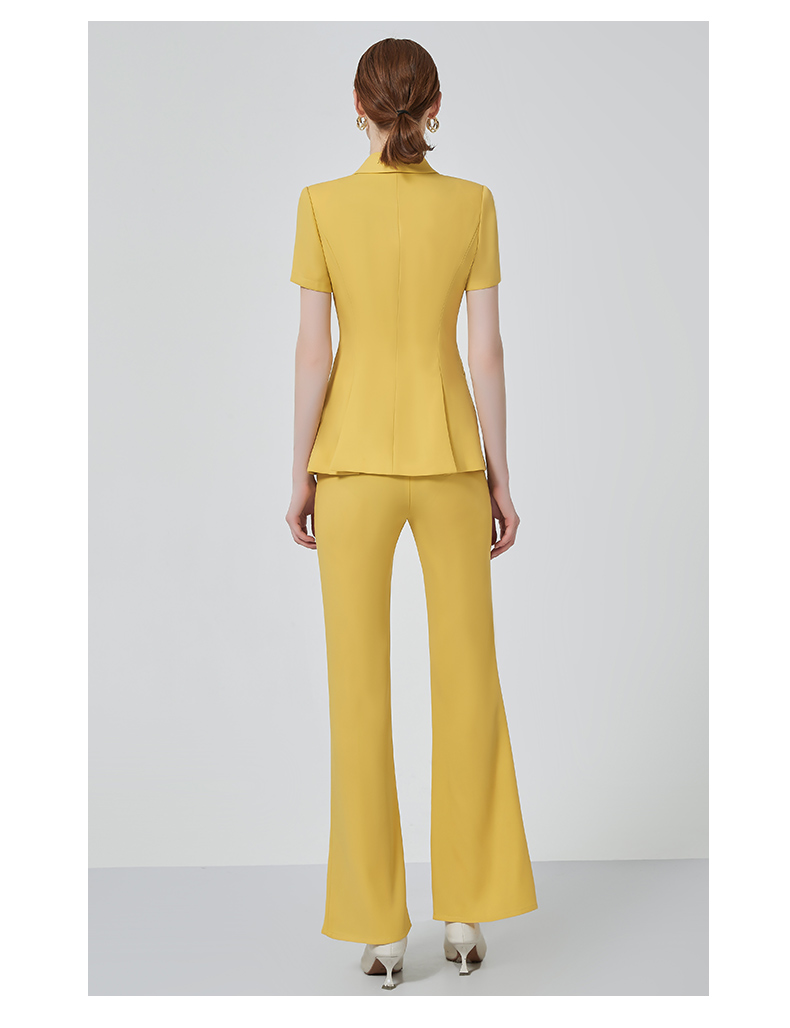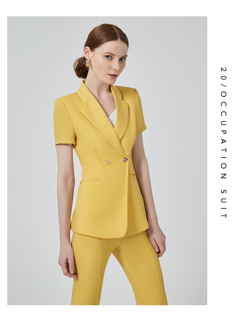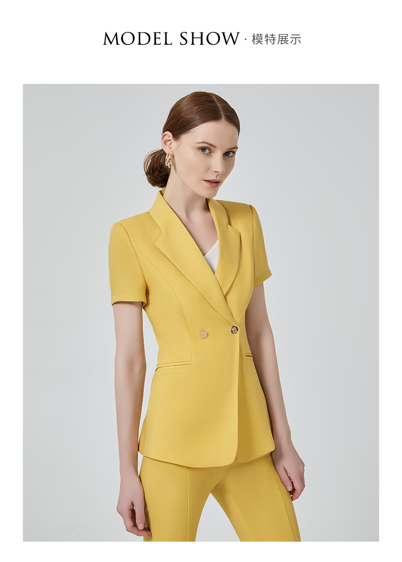 IWY/黄色播音正装洋气阔腿裤西服套装女时尚气质修身OL高端职业装C10346+P30346