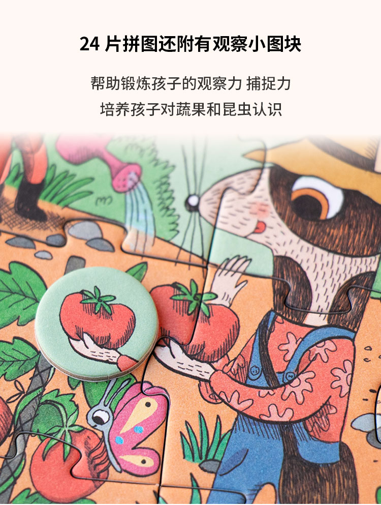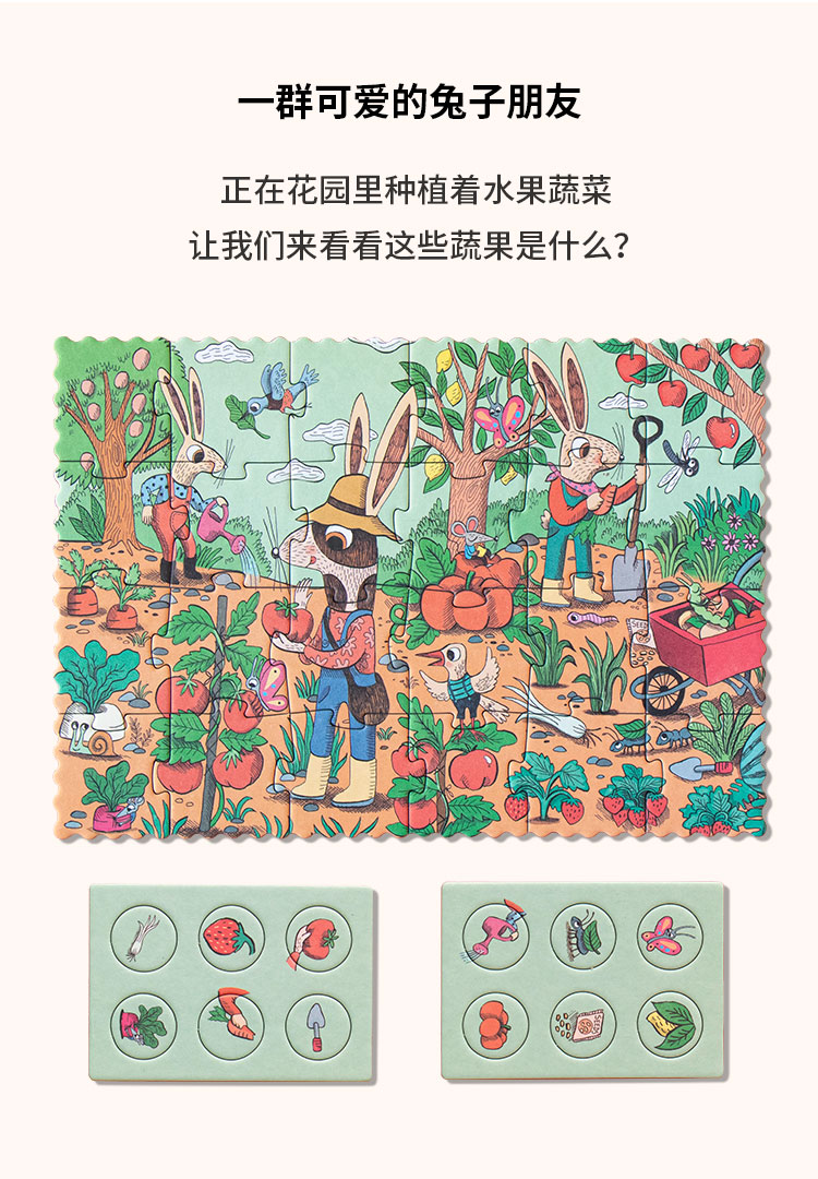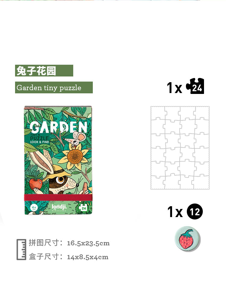 londji 小小拼图系列 兔子花园 24片 适合4岁+ 小巧可爱的尺寸 便携易收纳-PZ616U