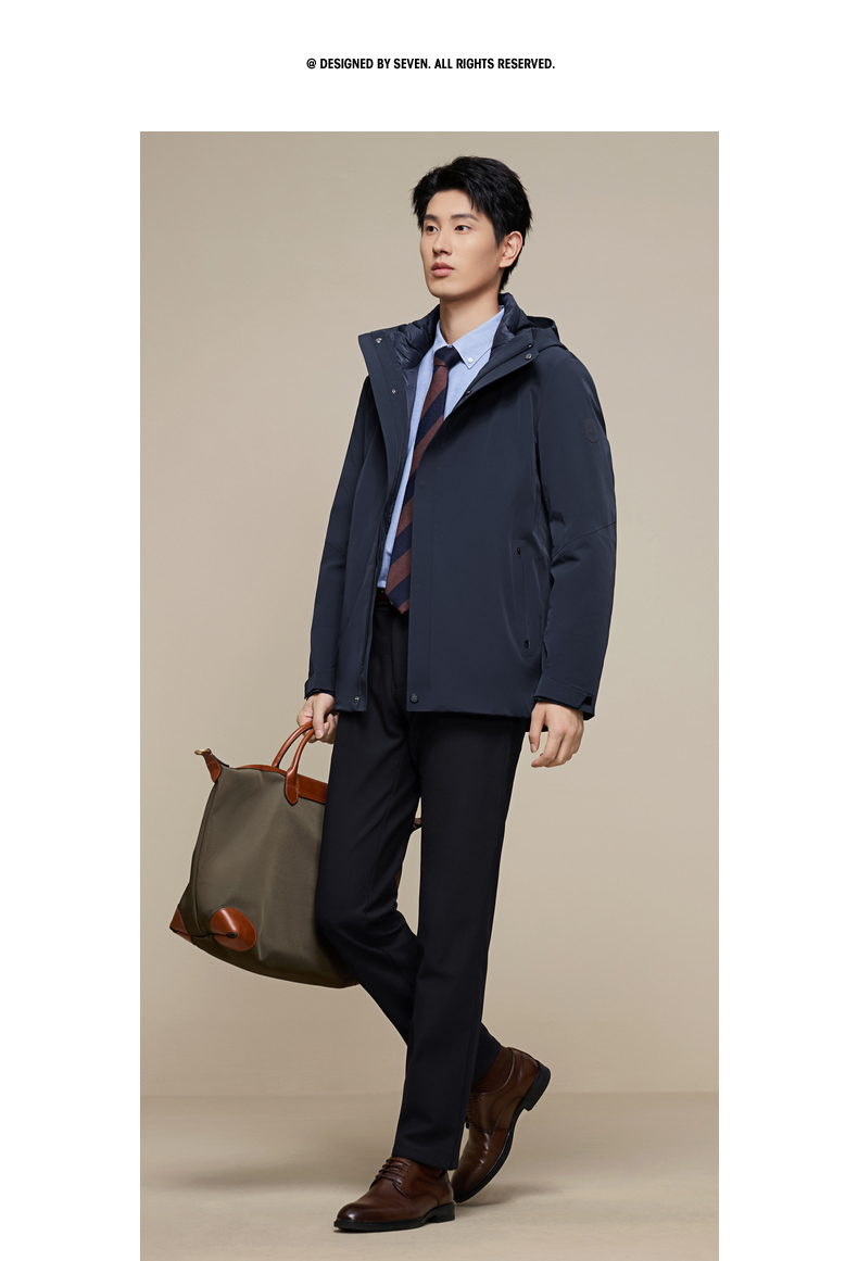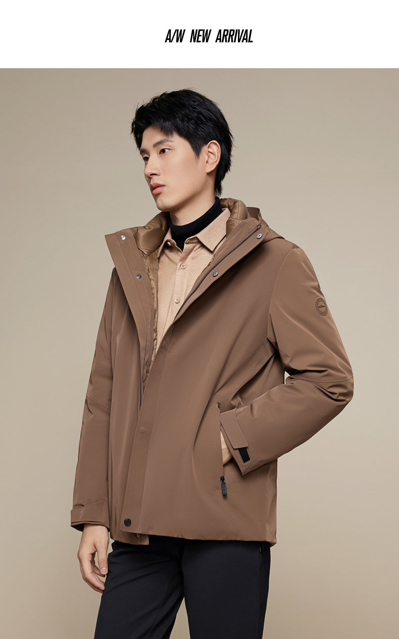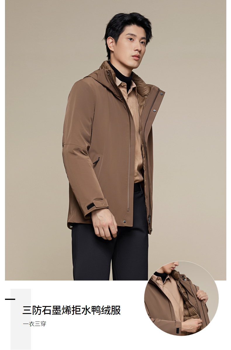 【拒水鸭绒】柒牌男士连帽羽绒服一衣三穿可脱卸内胆三防保暖外套