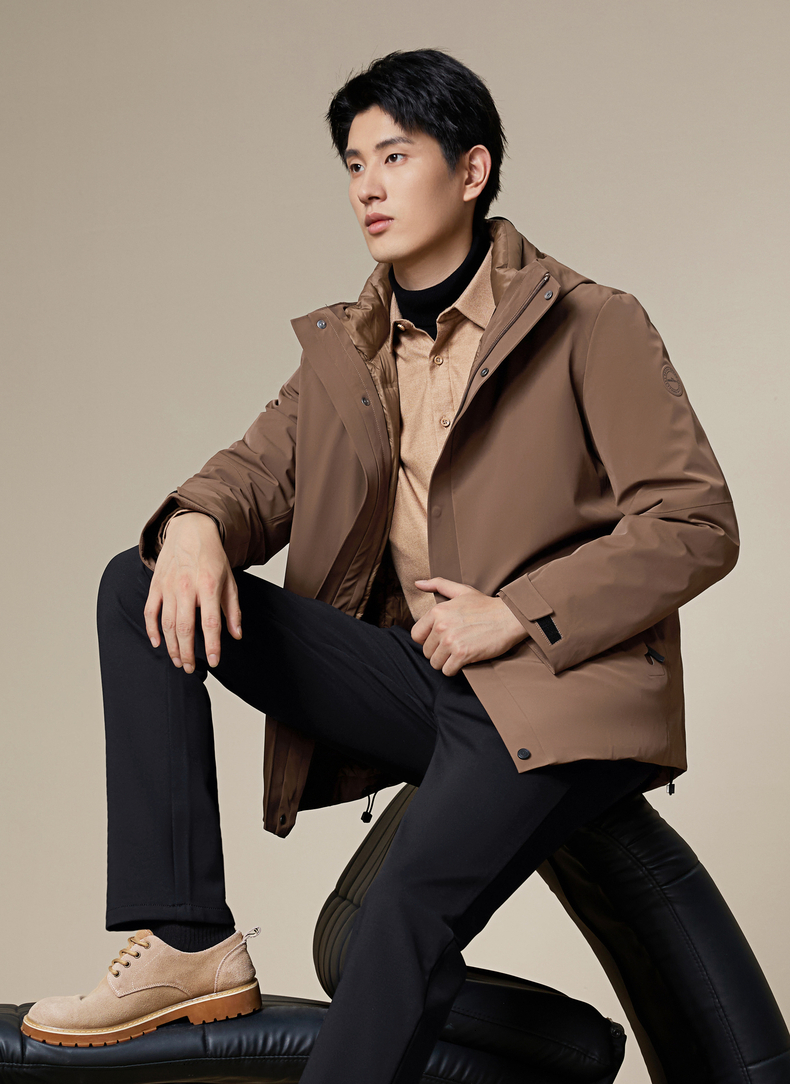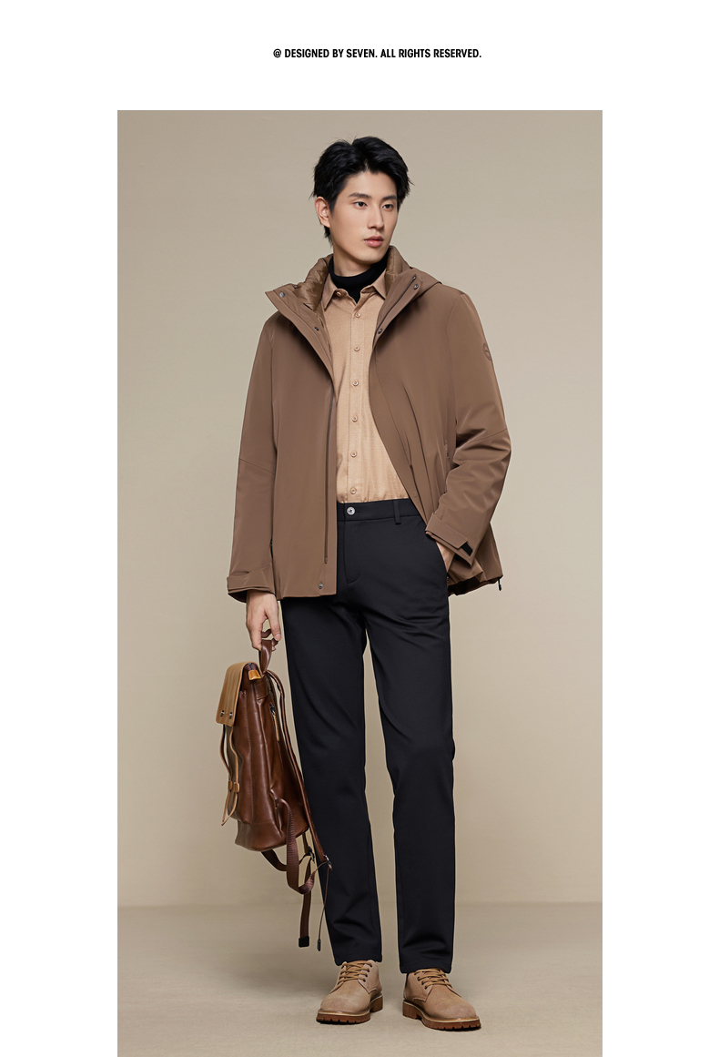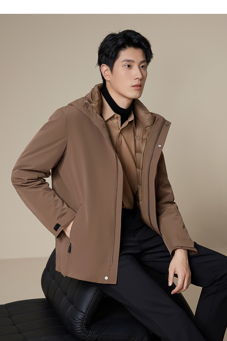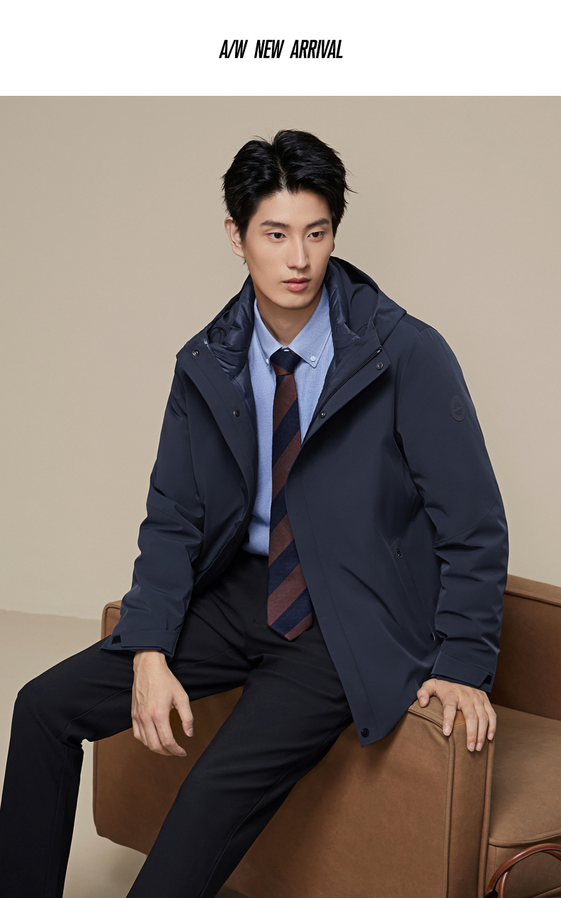 【拒水鸭绒】柒牌男士连帽羽绒服一衣三穿可脱卸内胆三防保暖外套
