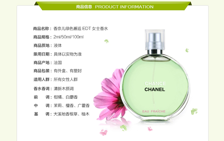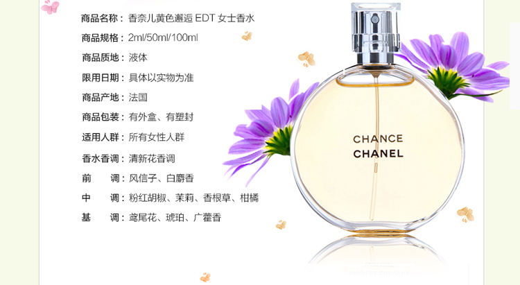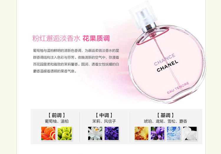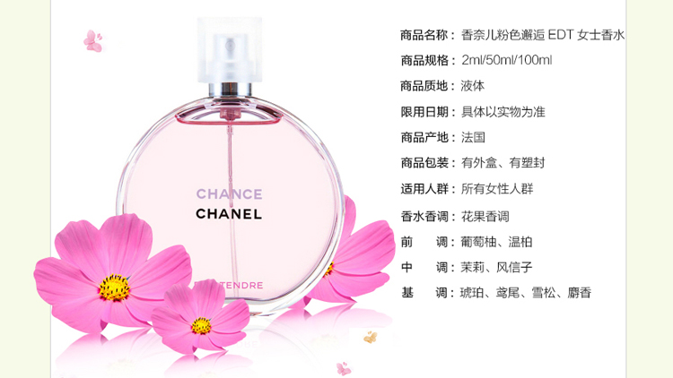 法国chanel香奈儿粉色机遇邂逅柔情女士清新持久淡香水50/100ml