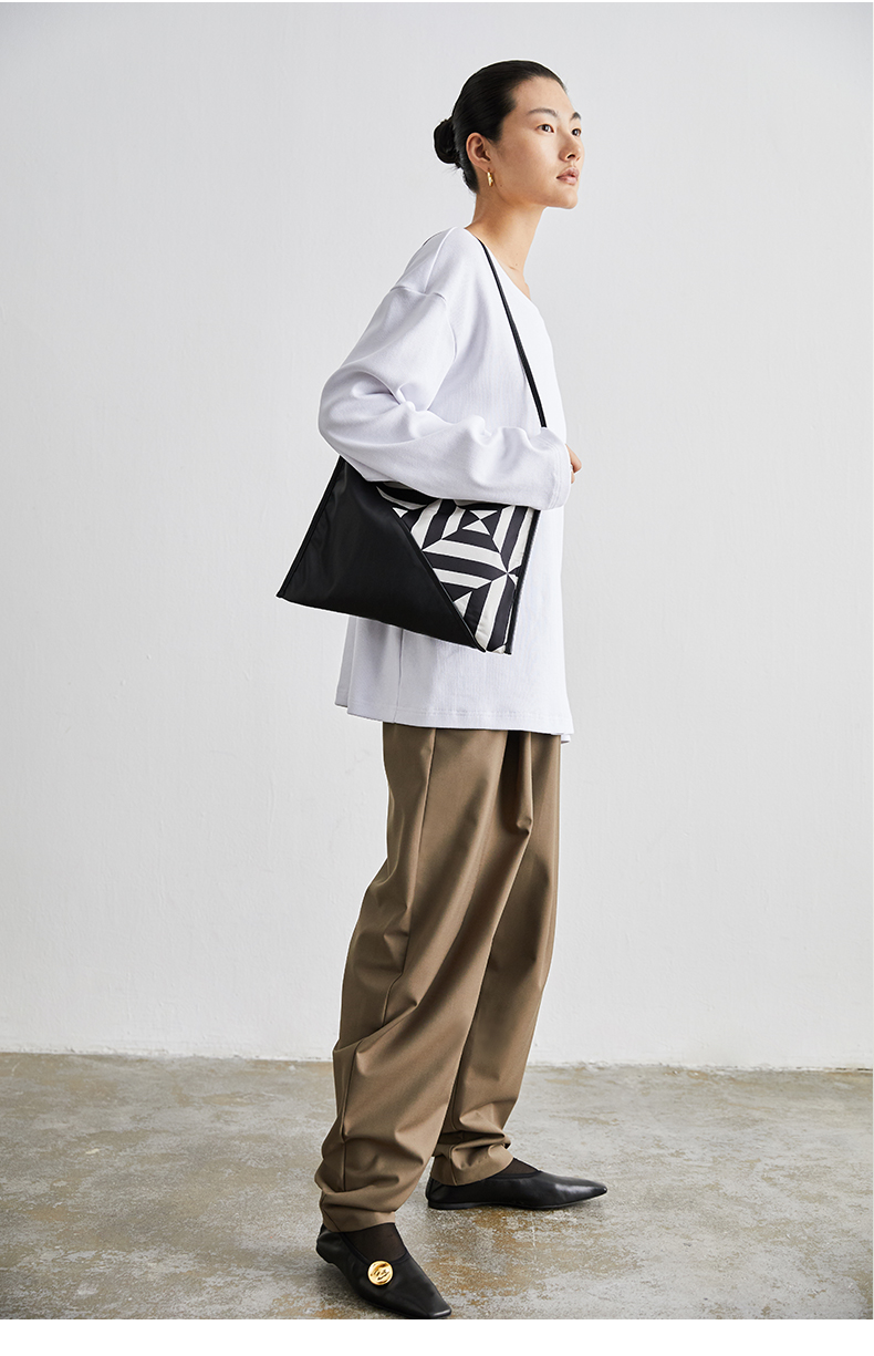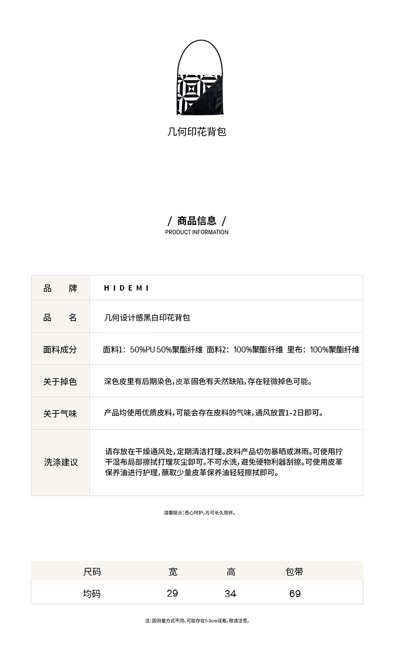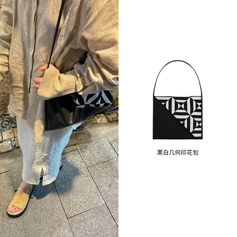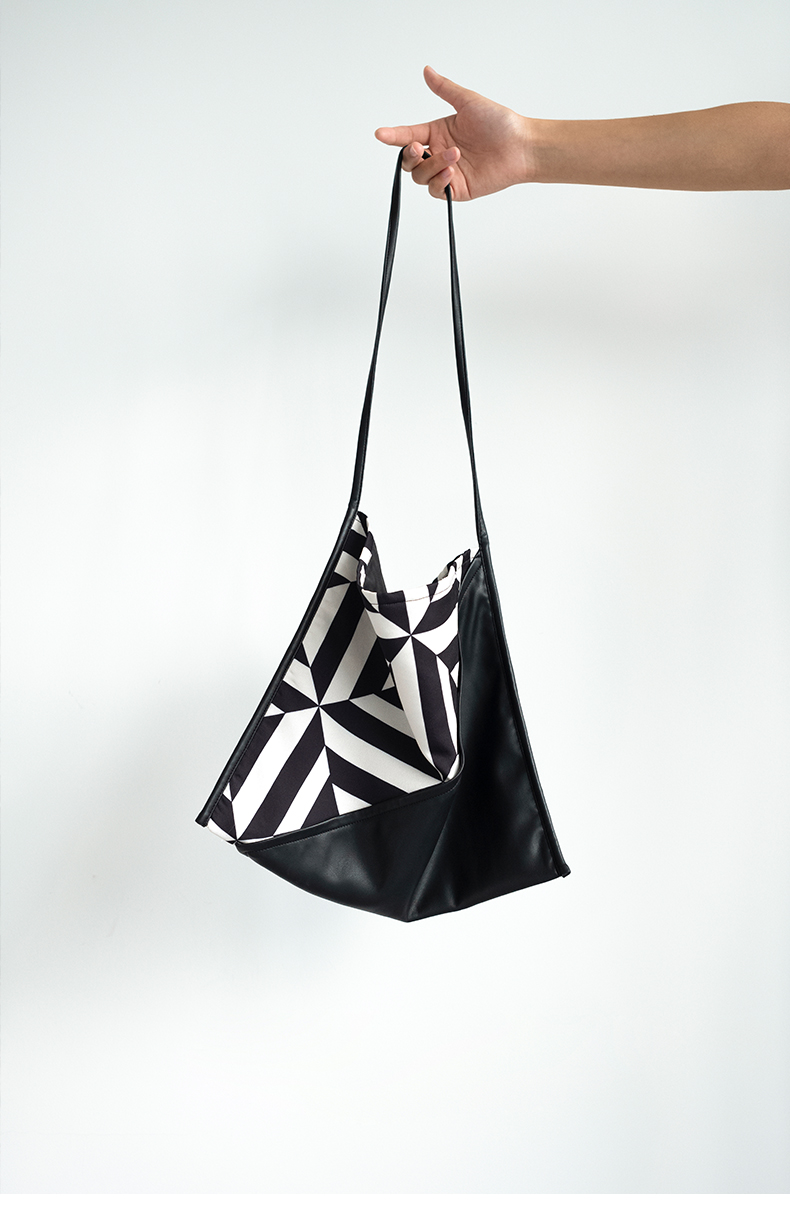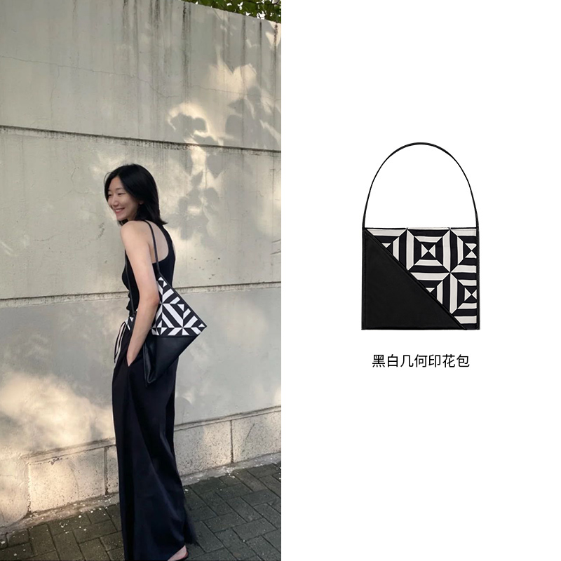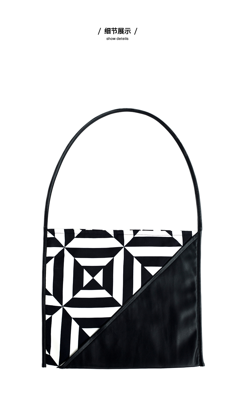 HIDEMI几何设计感黑白印花背包