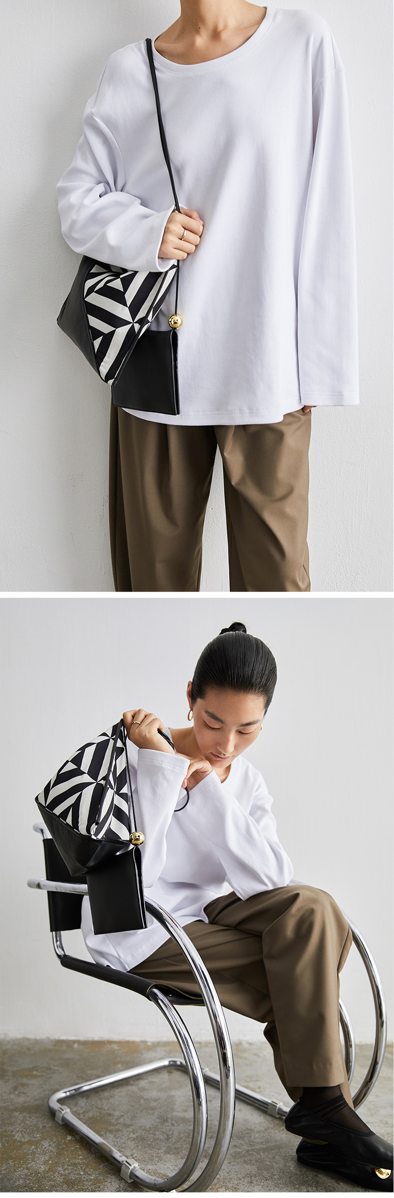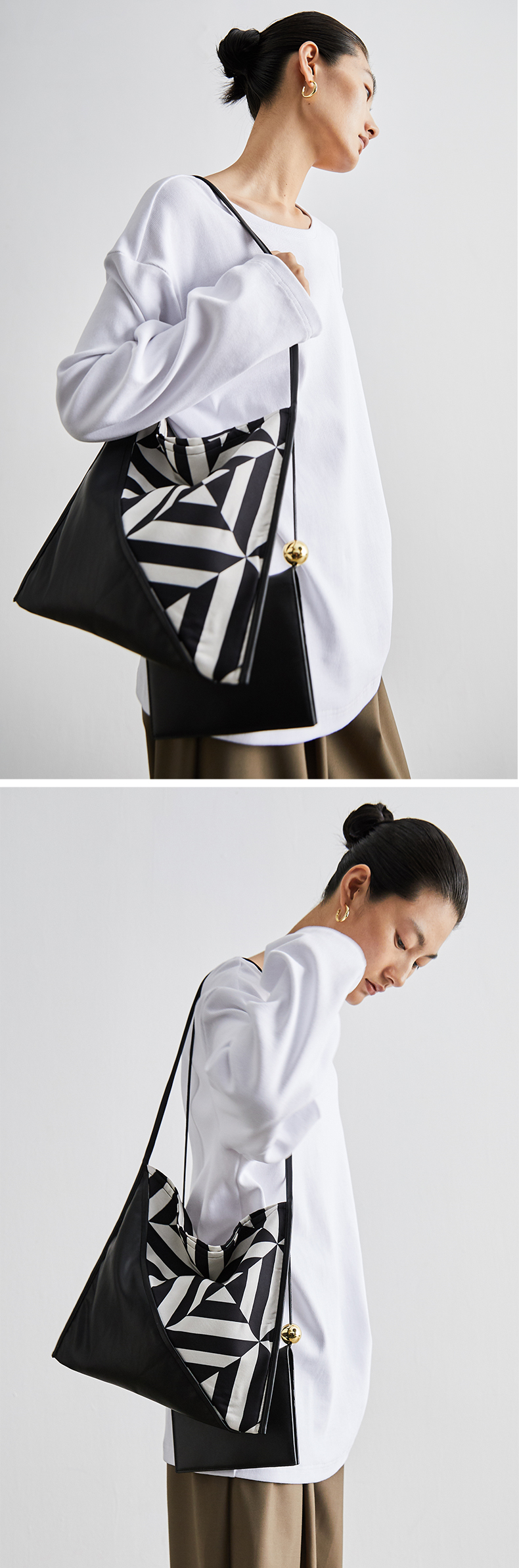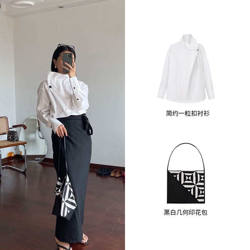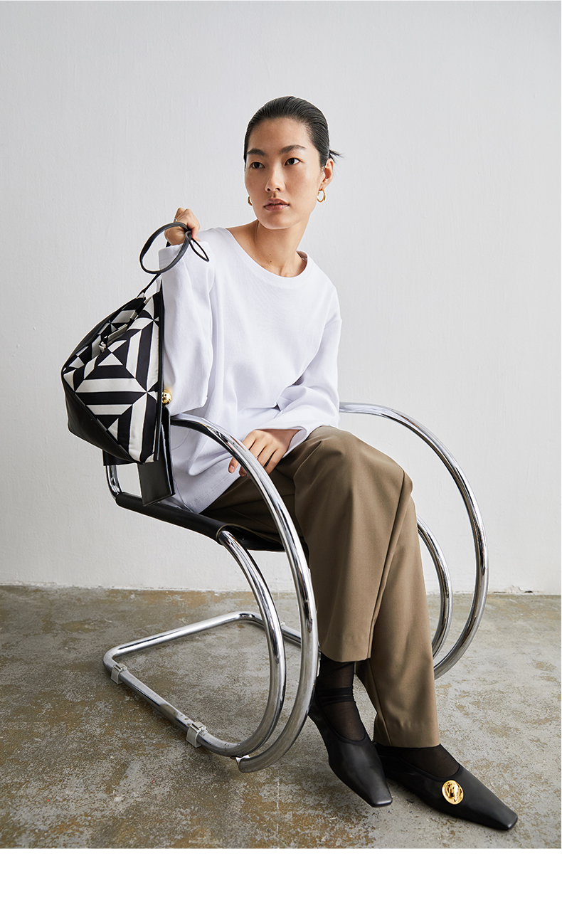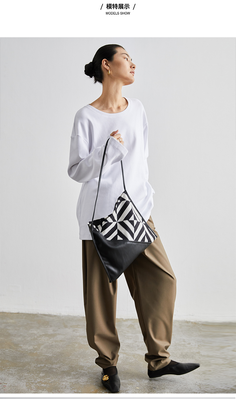 HIDEMI几何设计感黑白印花背包
