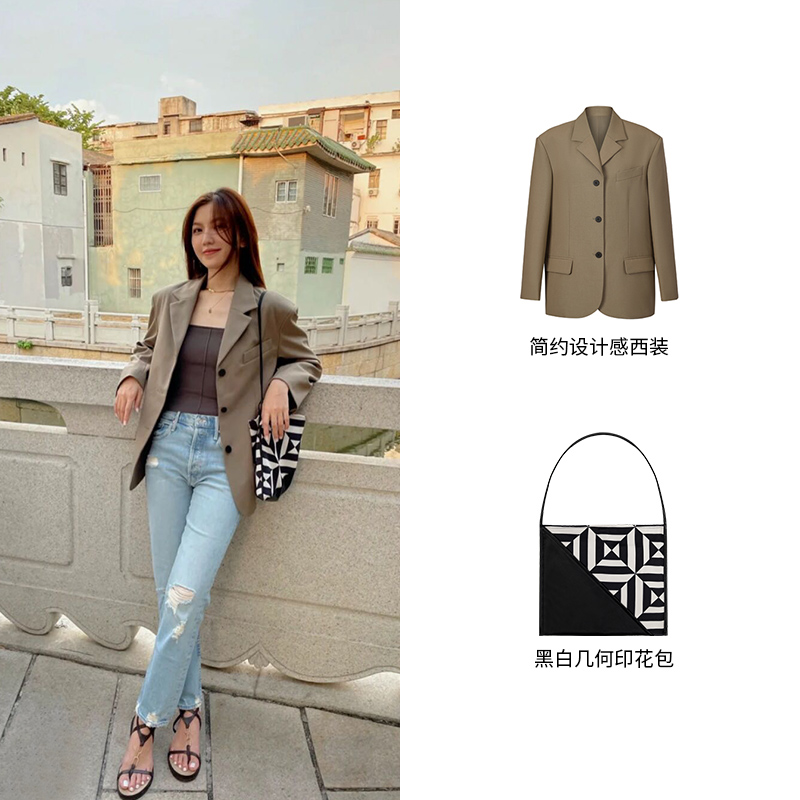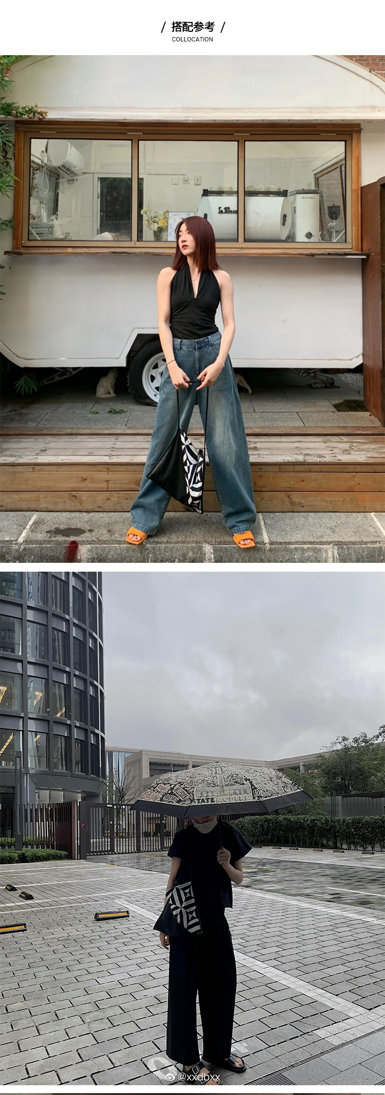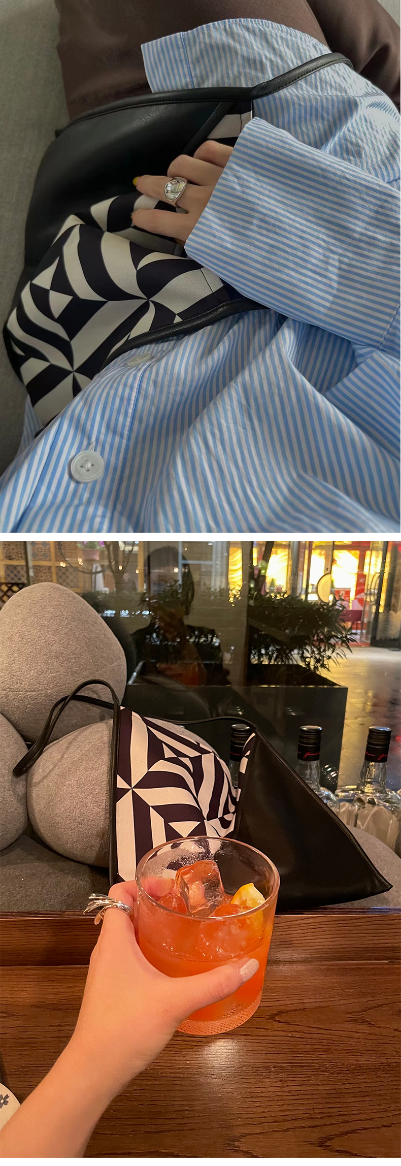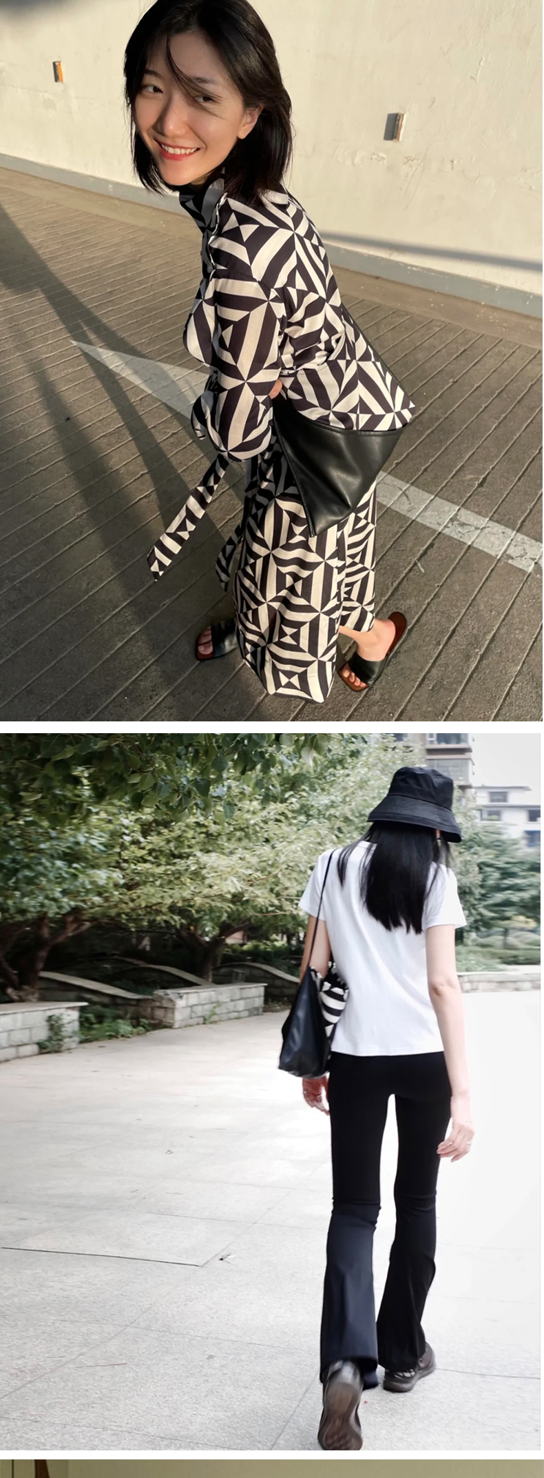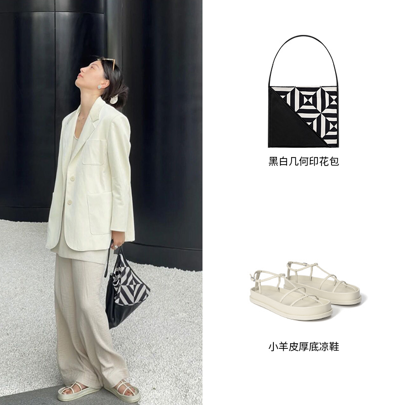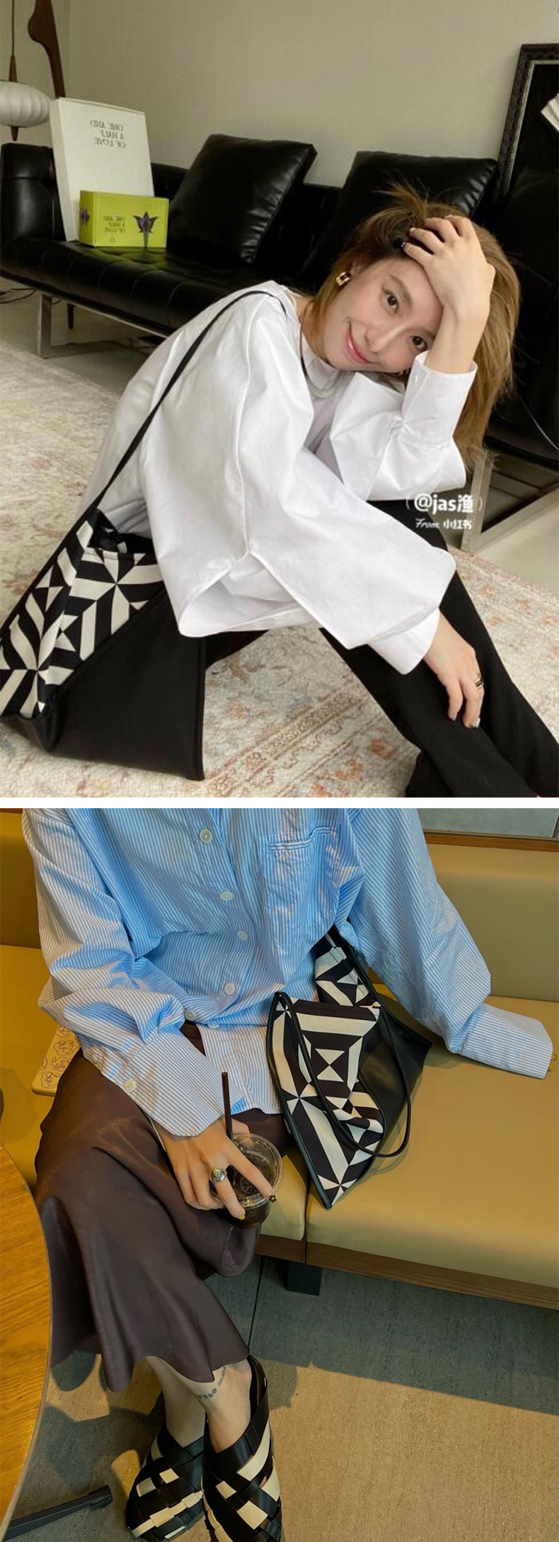 HIDEMI几何设计感黑白印花背包