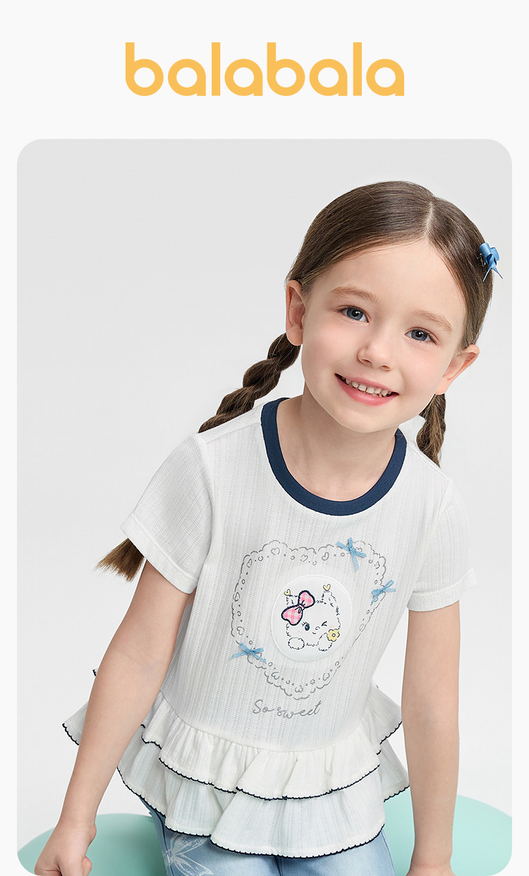 【balaOne】巴拉巴拉童装儿童短袖t恤2026新夏装女童甜美时尚上衣
