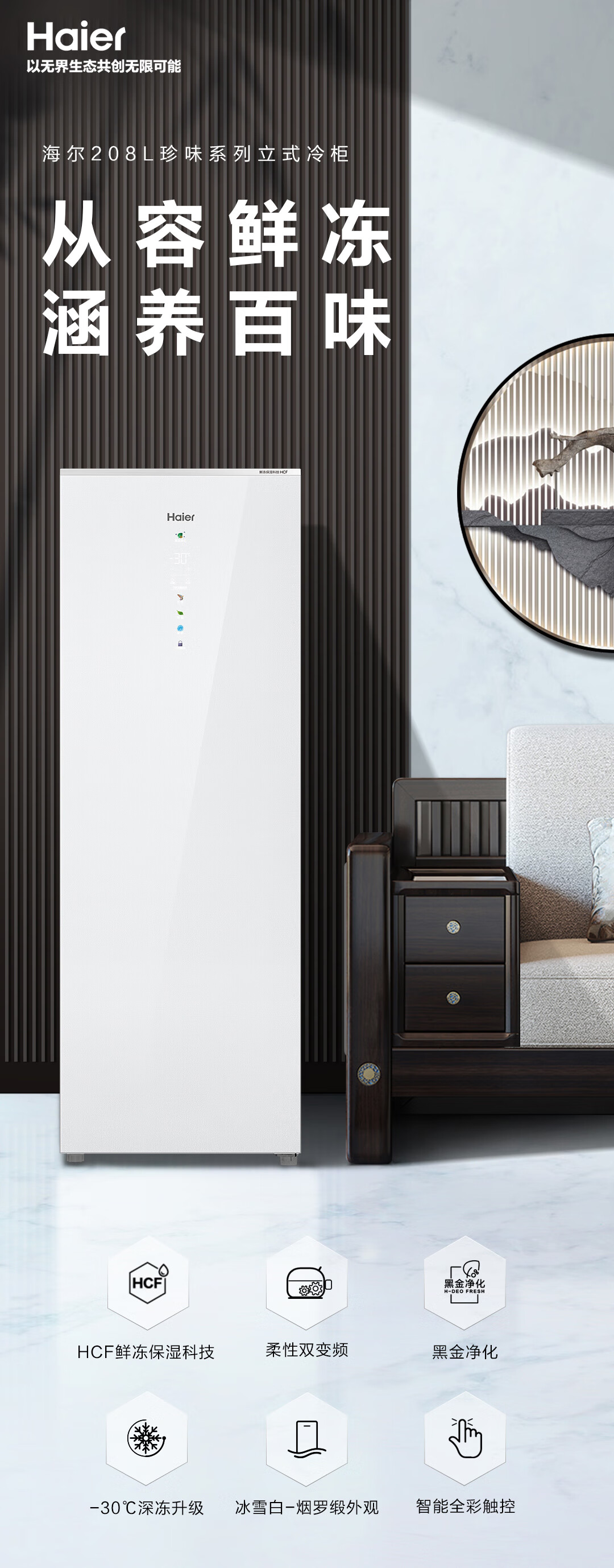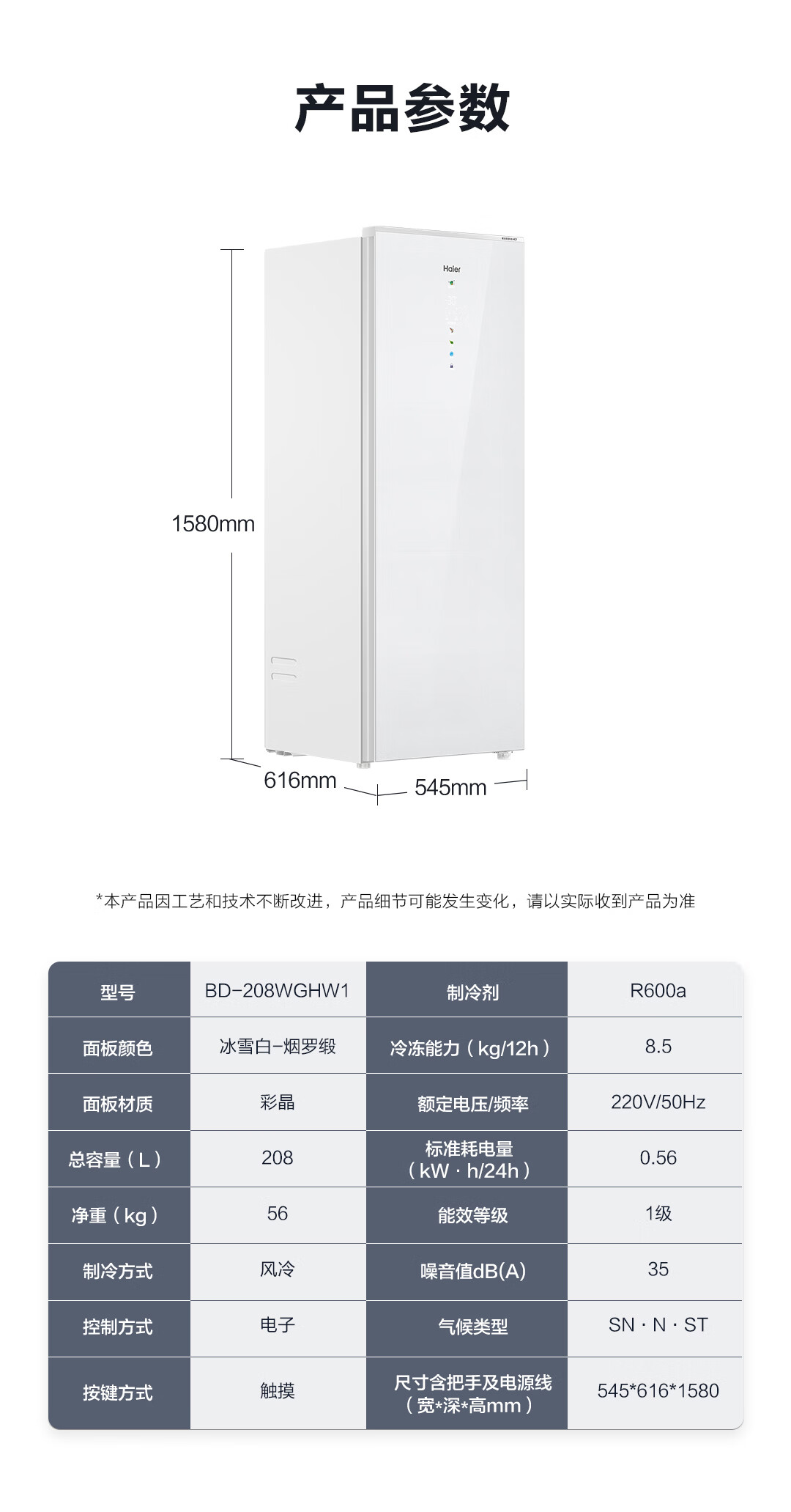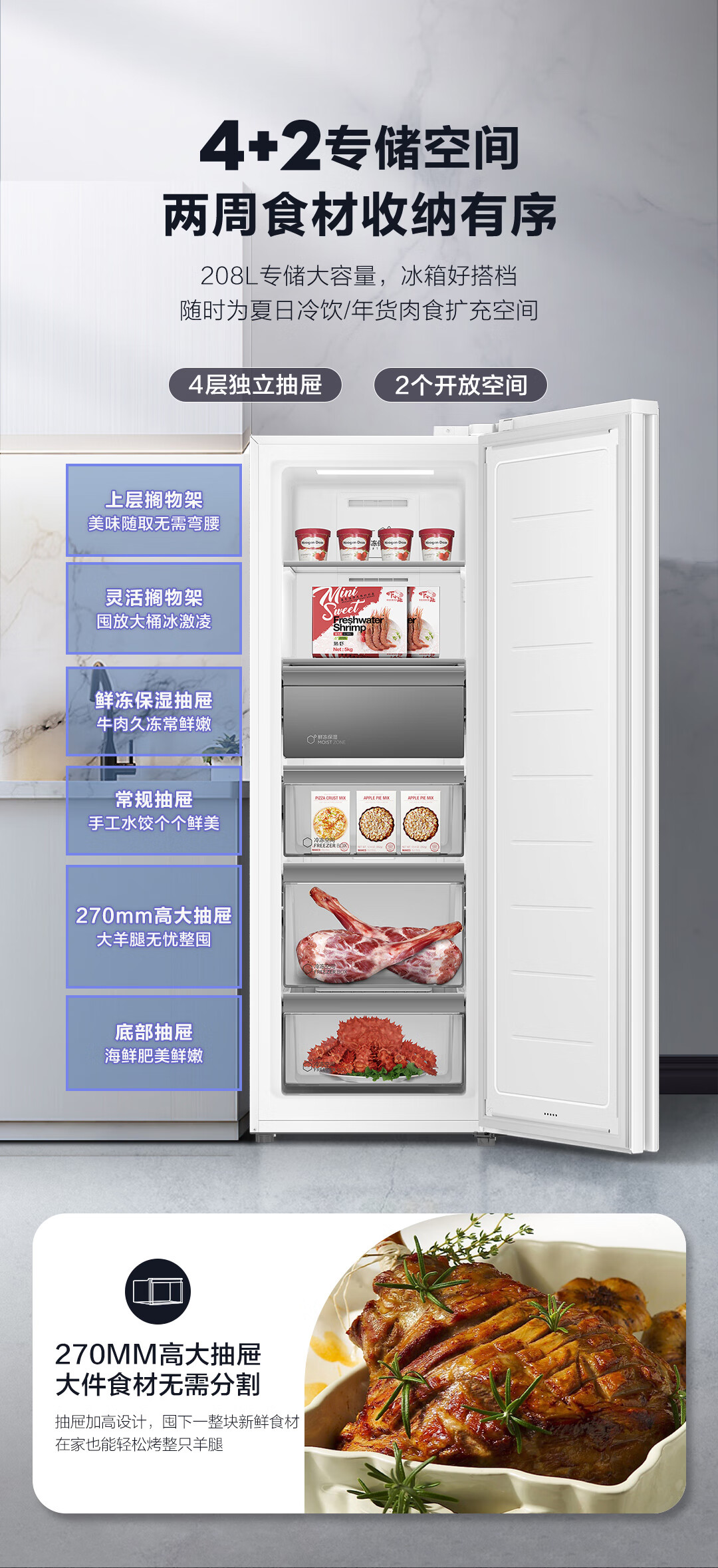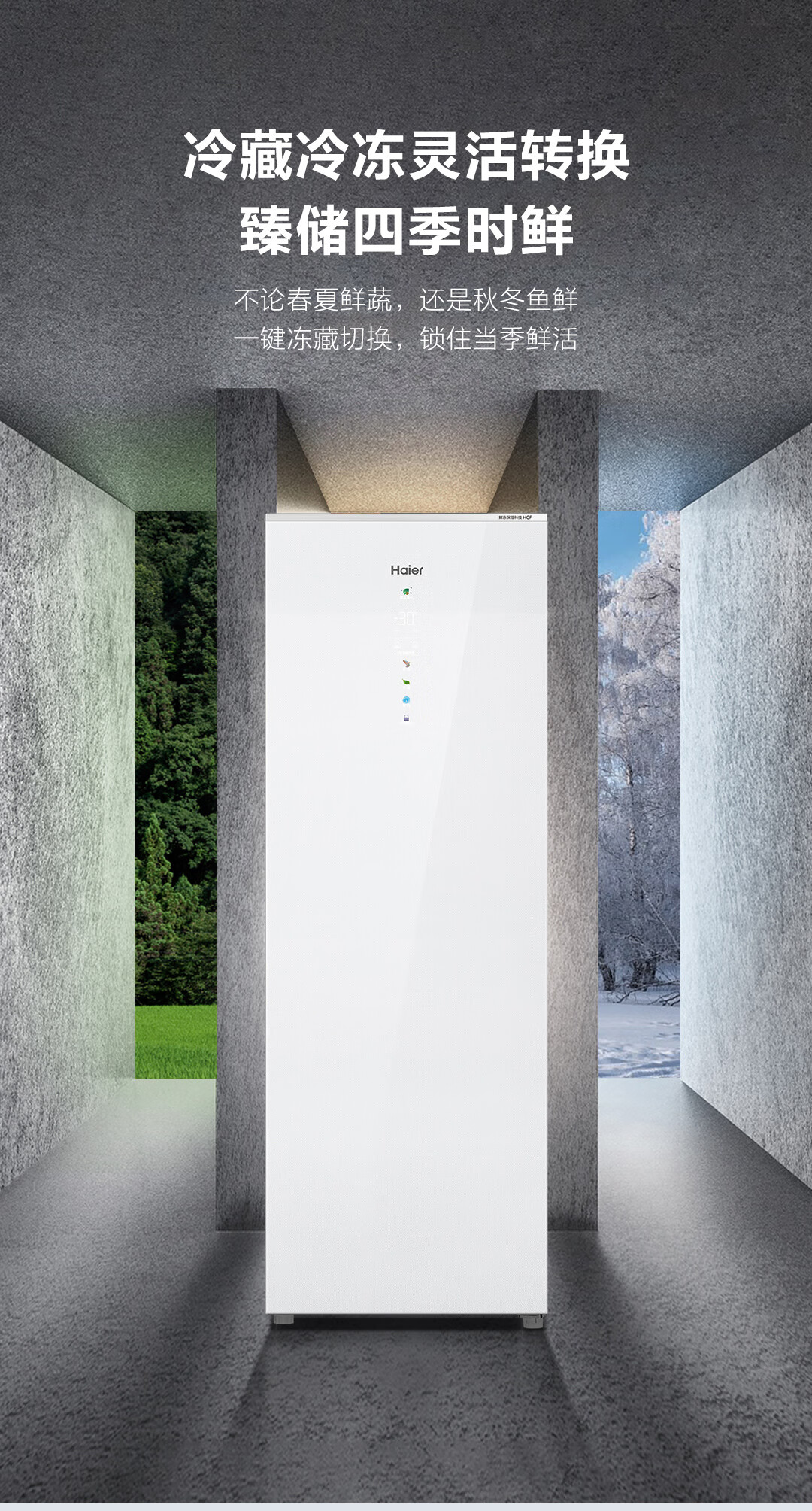 海尔(Haier)208升一级能效风冷家用立式冰柜 冷藏冷冻柜抽屉式冷柜小冰柜家用小冰箱BD-208WGHW1