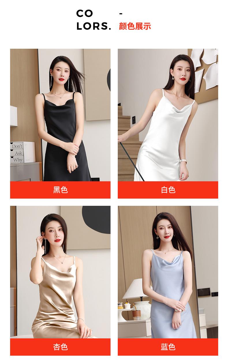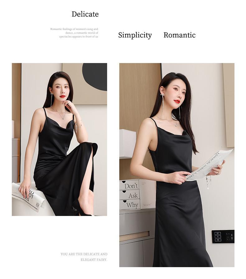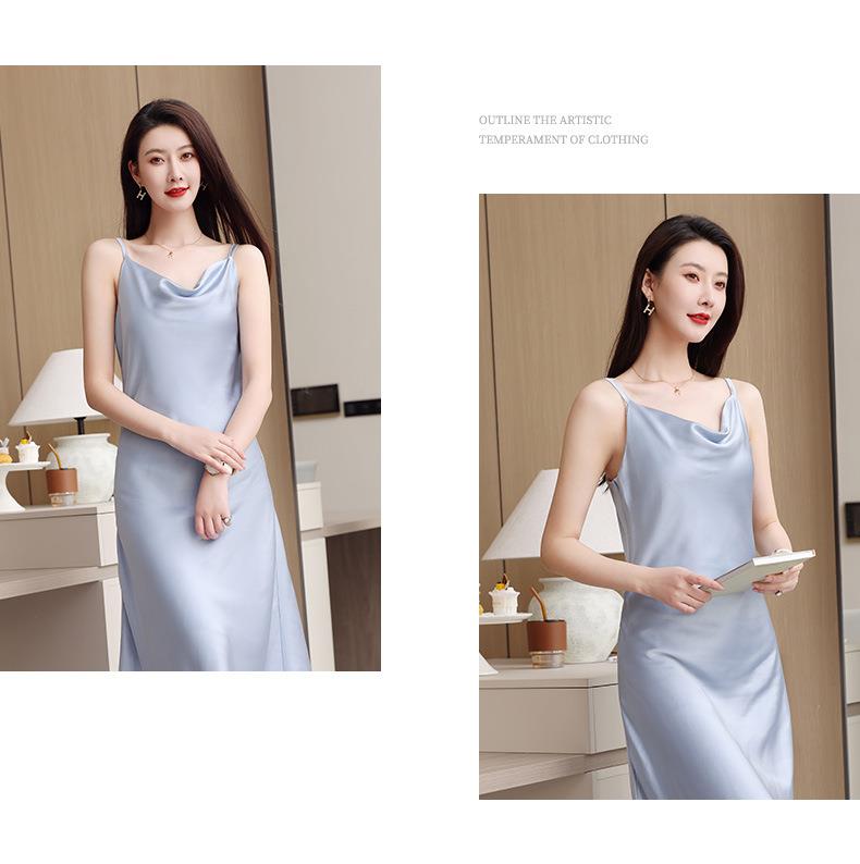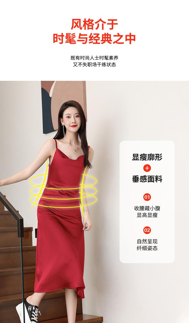 娜璐多 法式设计感简约裙子2023娜璐多新款防醋酸缎面中长款吊带连衣裙女