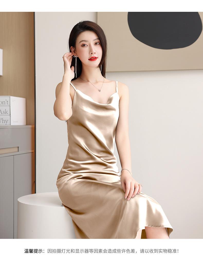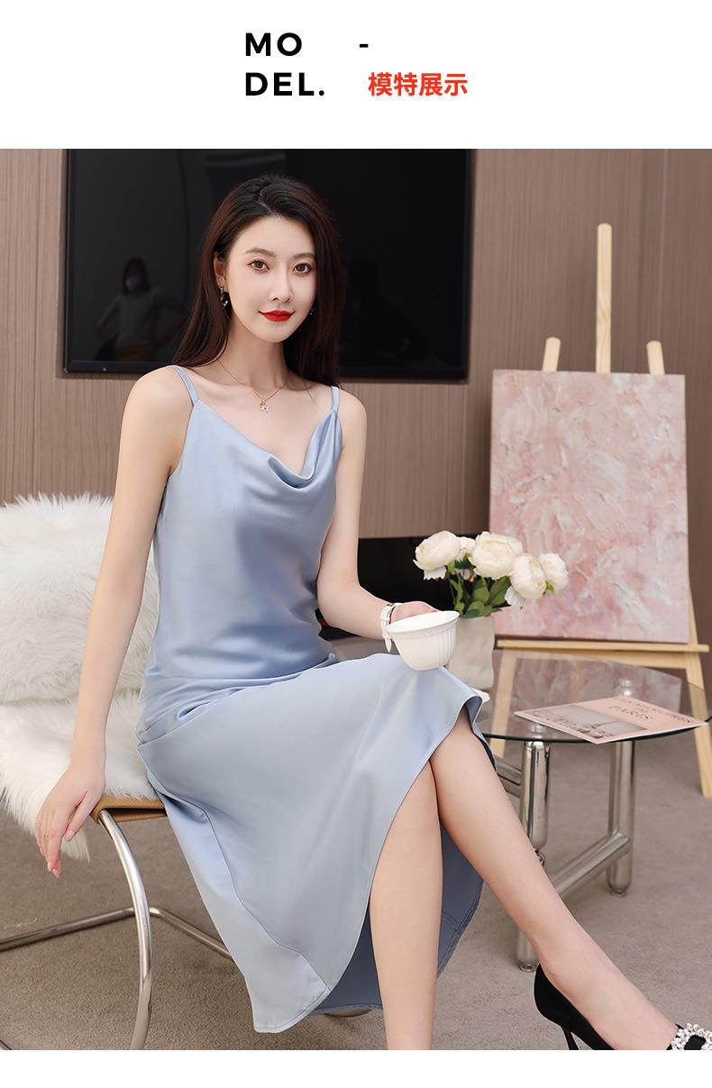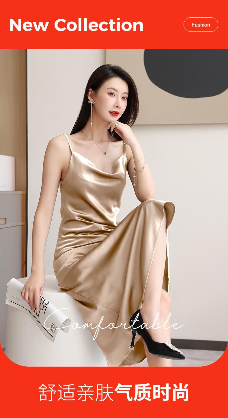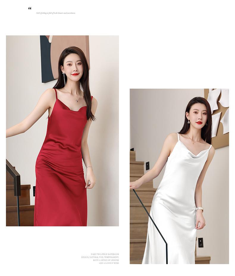娜璐多 法式设计感简约裙子2023娜璐多新款防醋酸缎面中长款吊带连衣裙女