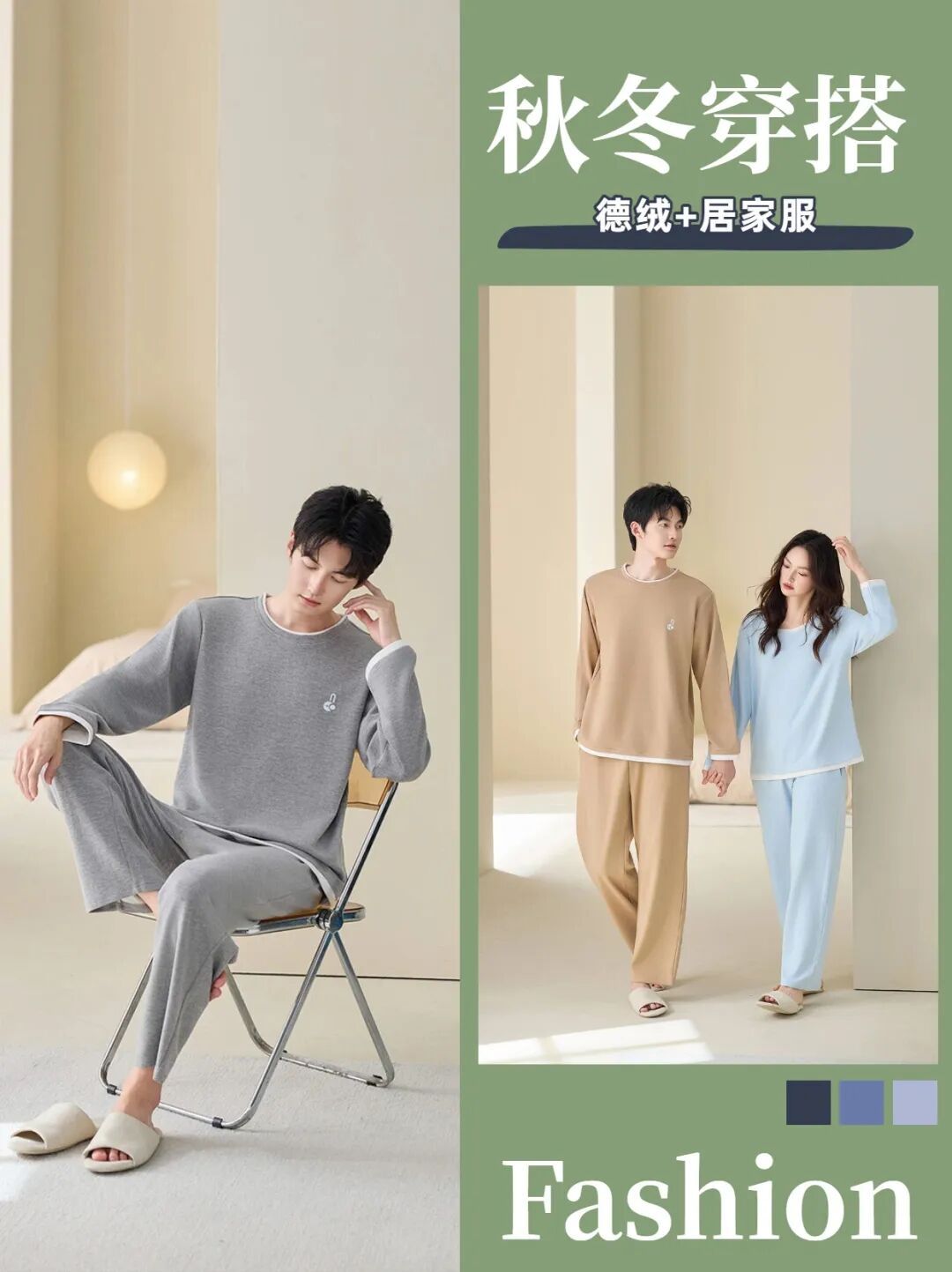 MUMIANER牧棉儿-加厚德绒羊毛蚕丝情侣家居服套装