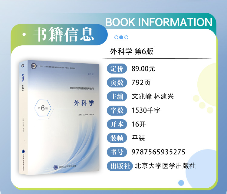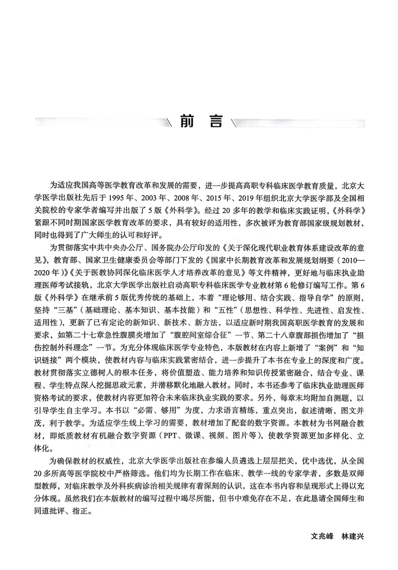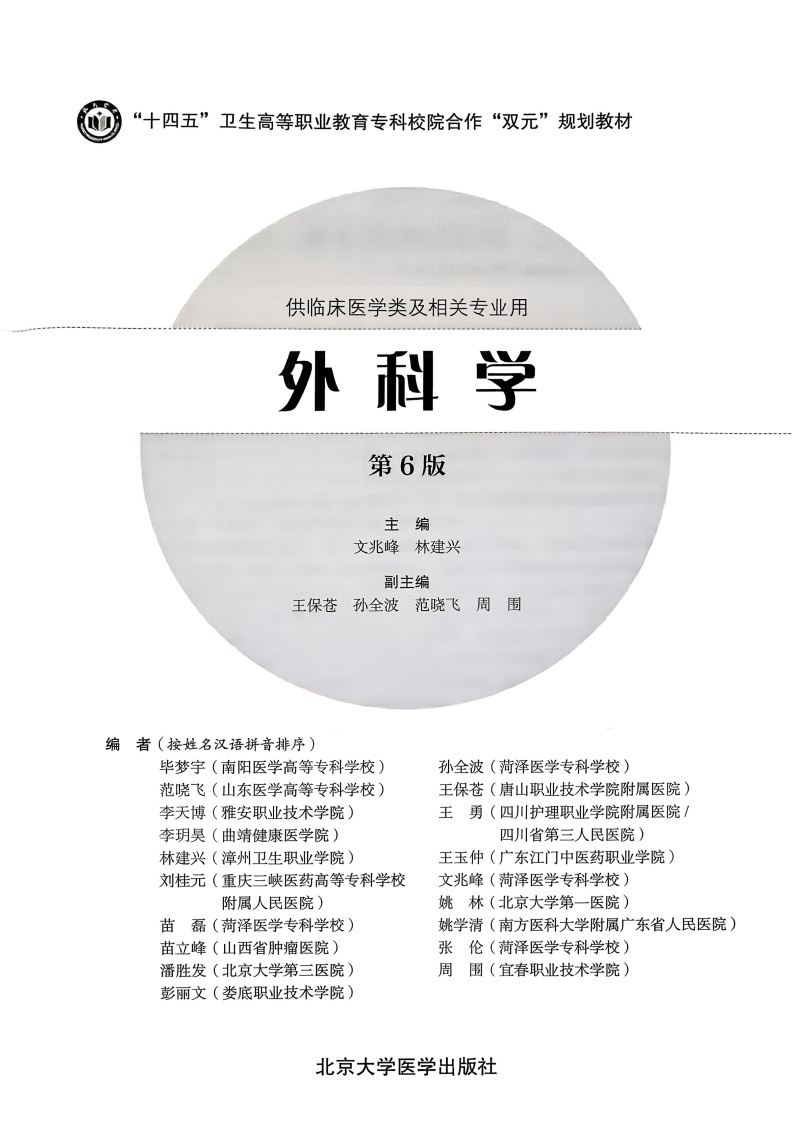 外科学 第6六版 十四五卫生高等职业教育专科校院合作“双元”规划教材 文兆峰 林建兴 供临床医学类及相关专业用北京大学医学出版社