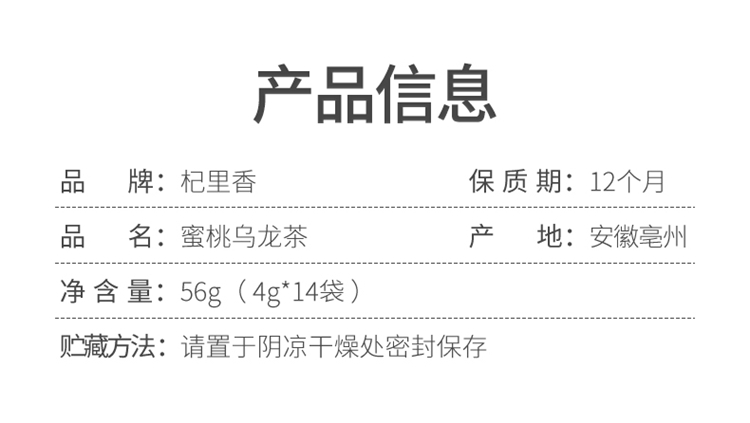 【杞里香】蜜桃乌龙茶56g(4g*14袋)(包邮直发)