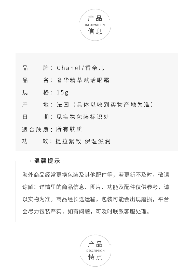 CHANEL香奈儿奢华精萃赋活眼霜 重焕双眸紧致眼周 15g【CDF】